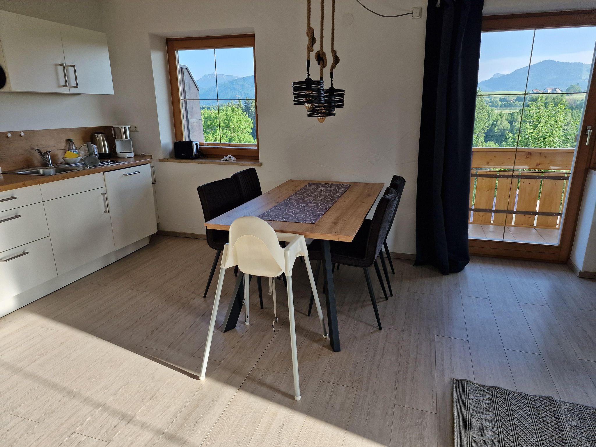 Vom Balkon aus genießen Sie den herrlichen Blick auf die Allgäuer Voralpenlandschaft – und dies von früh bis spät - Natur pur.