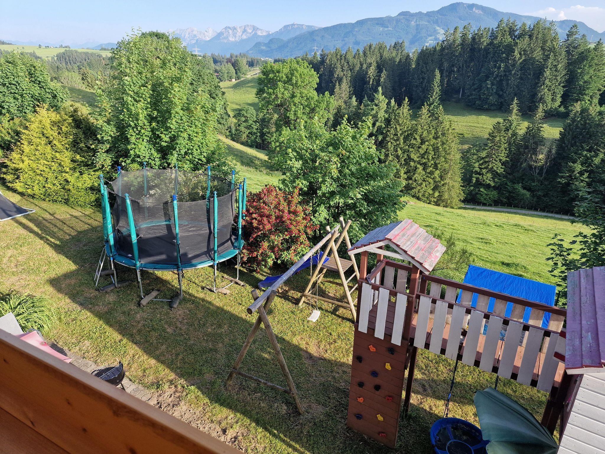Für die Kinder gibt es natürlich mehrere Spielmöglichkeiten wie Sandkasten, Schauckel, Spielehaus und Trampolin.