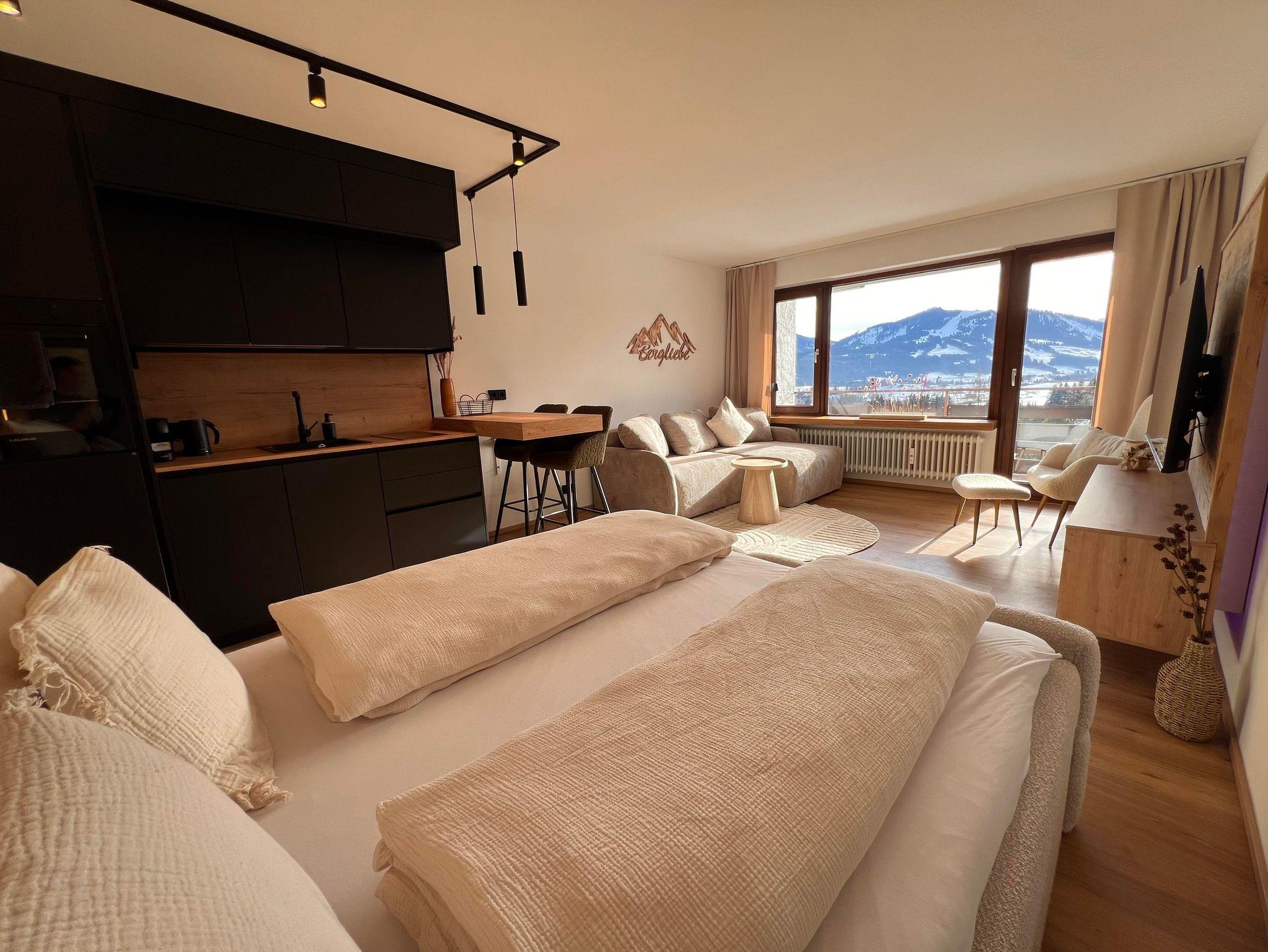 Genießen Sie erholsame Tage in unserer frisch renovierten 1-Zimmer-Ferienwohnung mit traumhaftem Bergpanorama. Eingebettet in die wunderschöne Allgäuer Alpenlandschaft bietet dieses gemütliche 35qm Apartment den perfekten Rückzugsort für Paare, Alleinreisende oder kleine Familien, die Ruhe, Komfort und Natur lieben.