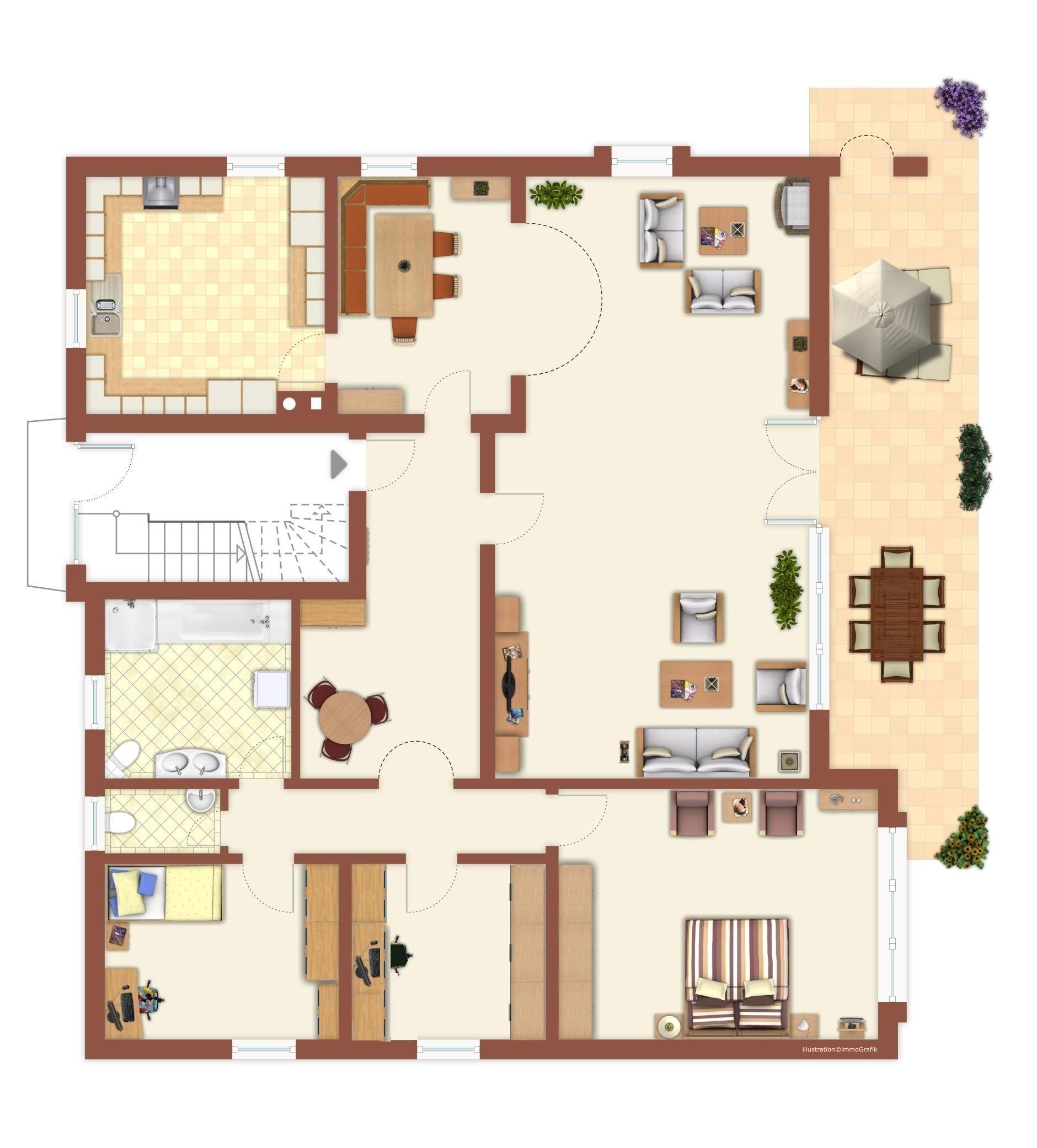 Die 4-Zimmer Ferienwohnung mit ca. 160 m² ist ausgestattet (Deko auf den Bildern ist abweichend):