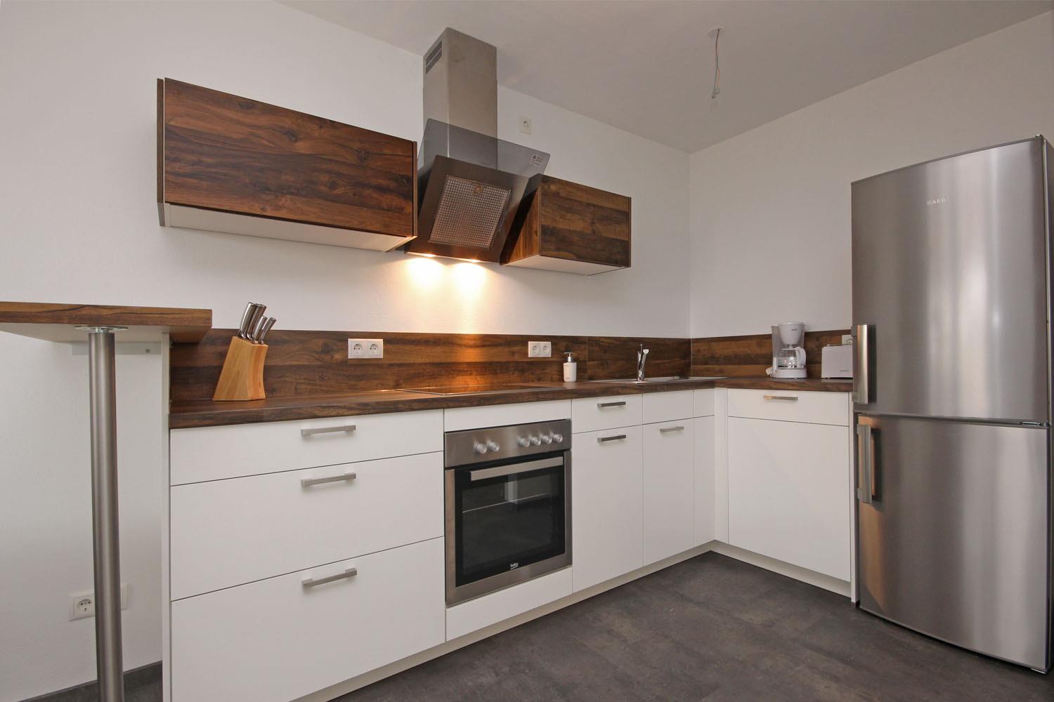 Einbauküche mit Spülmaschine, Backofen, Kühl- u. Gefrierschrank, Kaffeemaschine (Filter), Toaster, Wasserkocher uvm...