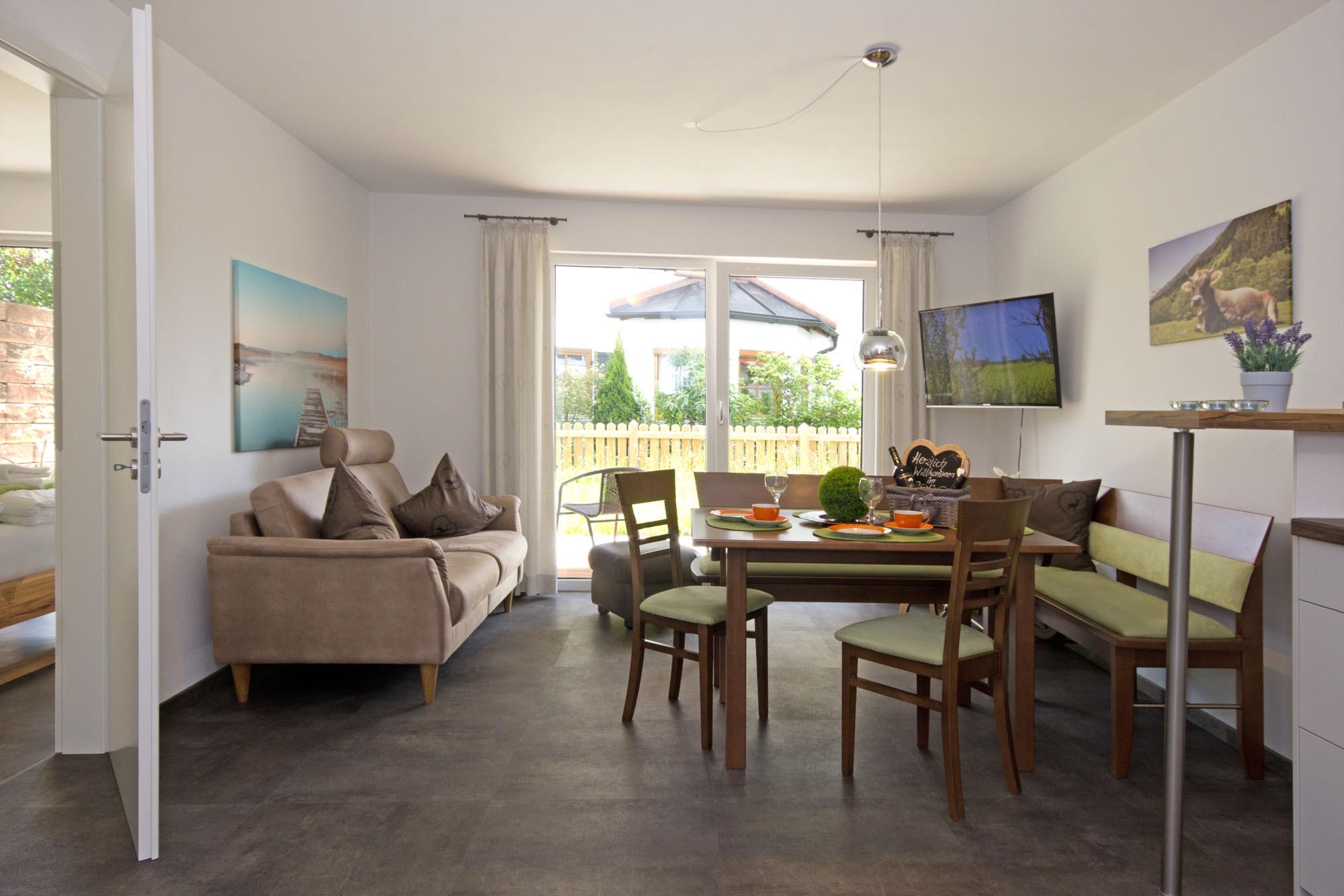 Ihr 2-Zimmer [nbsp]Kuschel - Wohnung im EG für 2 Personen im Landhausstil - auf 900 m über dem Meer, mit Terrasse und einem schönen Grün vor der Türe. Die komfortable Ferienwohnung bietet alles, was Ihren Urlaub erholsam und erlebnisreich machen kann. Moderne Ausstattung (Neubau mit 50 qm). Überdachte Terrasse. Sicherer Ski-Keller. Abschließbare Fahrrad-Garage [&] Ihr kostenloser Tief-Garagen-Platz (mit Personen-Aufzug - wenn Sie wollen). Nur 5 - 10 Gehminuten zur nächsten Einkaufsmöglichkeit, zum Bahnhof, dem Ortszentrum und doch mitten im Leben.