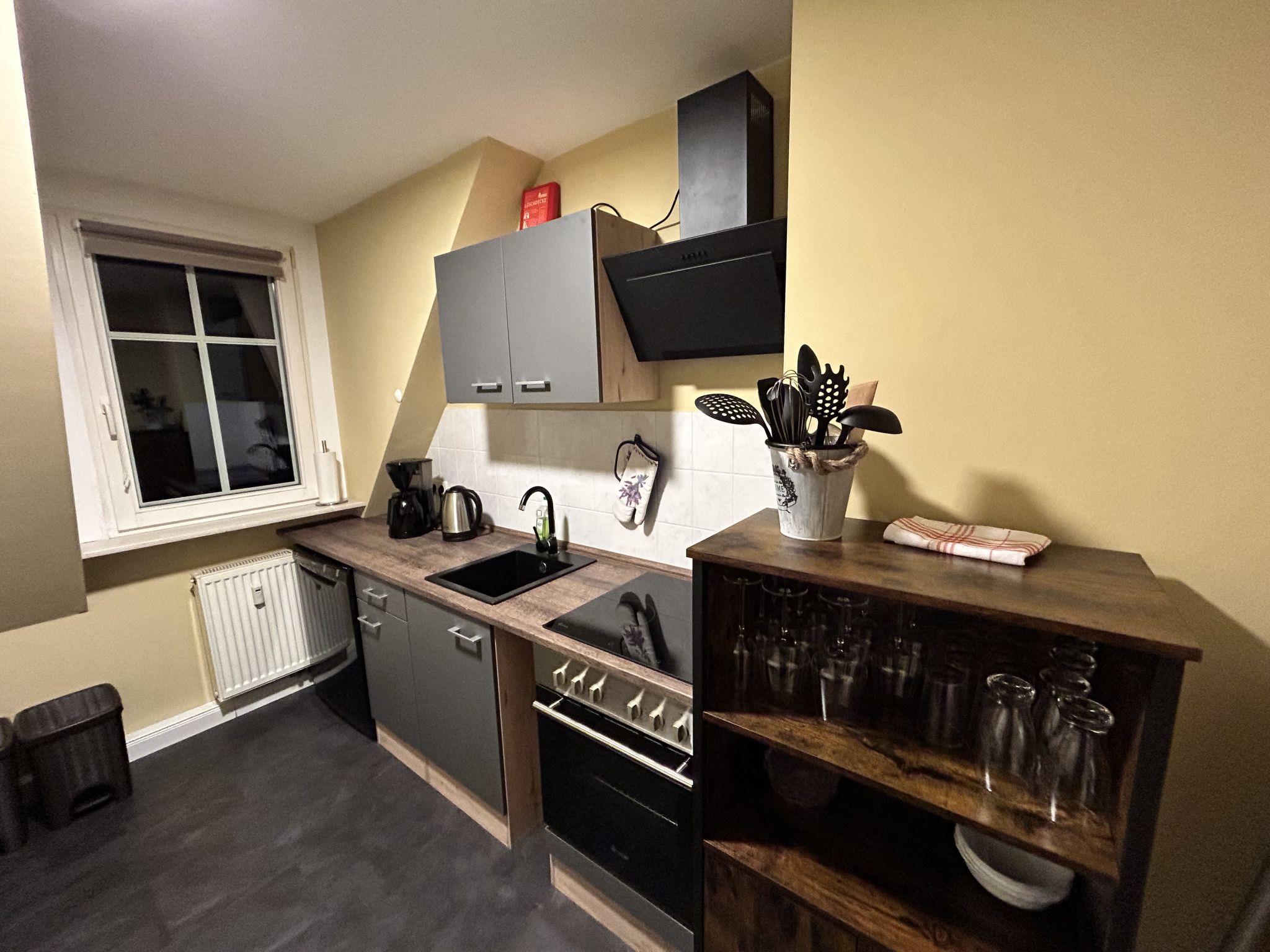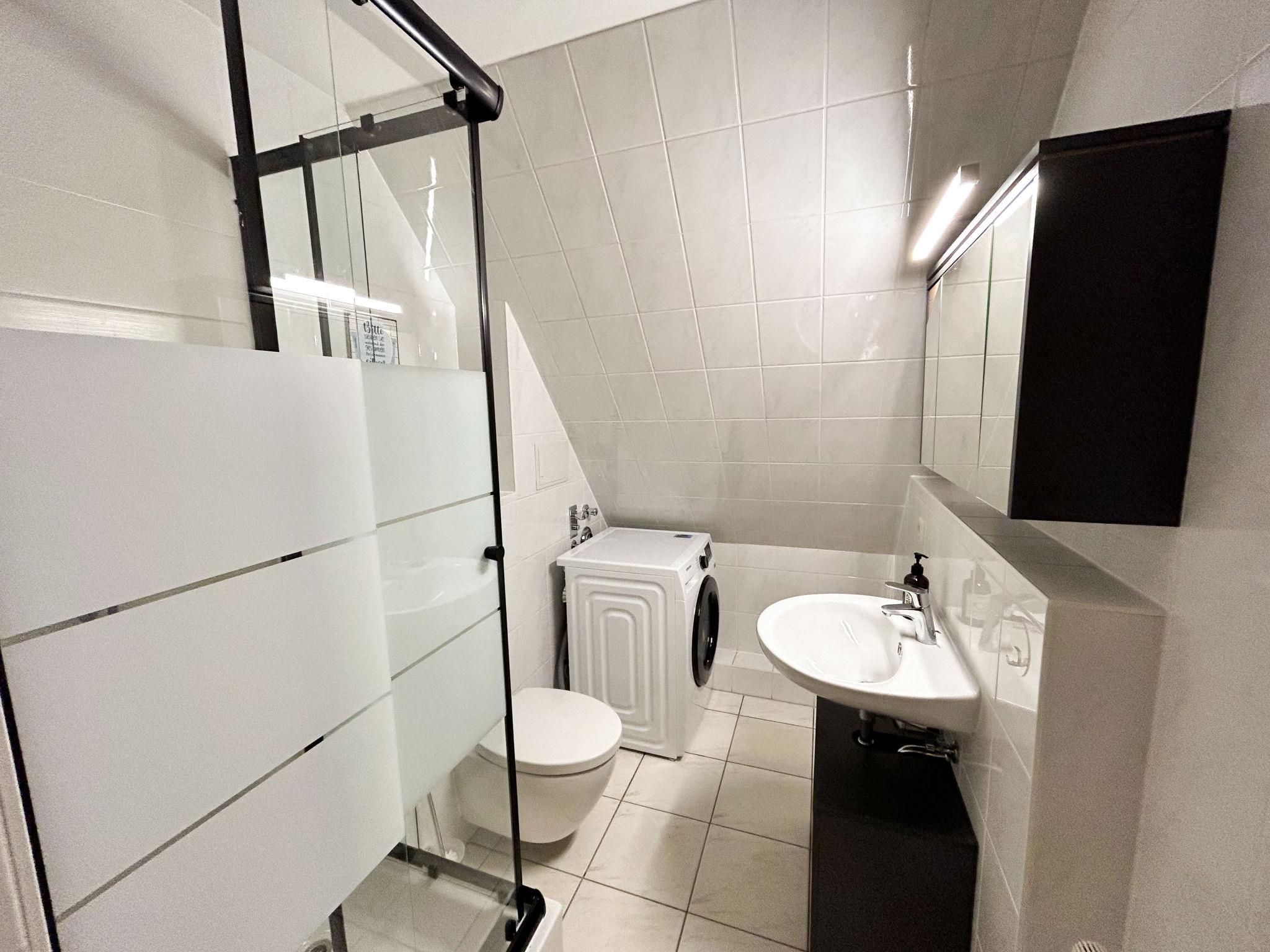 2-room apartment 41 m2 on 2nd floor. With sloping ceilings, renovated in 2022, modern furnishings: living/sleeping room with 1 double sofabed, dining table and satellite TV (flat screen), DVD. 1 room with 1 double bed (180 cm, length 200 cm). Kitchen (oven, dishwasher, 4 ceramic glass hob hotplates, kettle, microwave, electric coffee machine) with small dining table. Shower/WC. Heating. Beautiful view of the mountains. Facilities: washing machine. Internet (WiFi, free). Please note: non-smokers only. Smoke alarm.