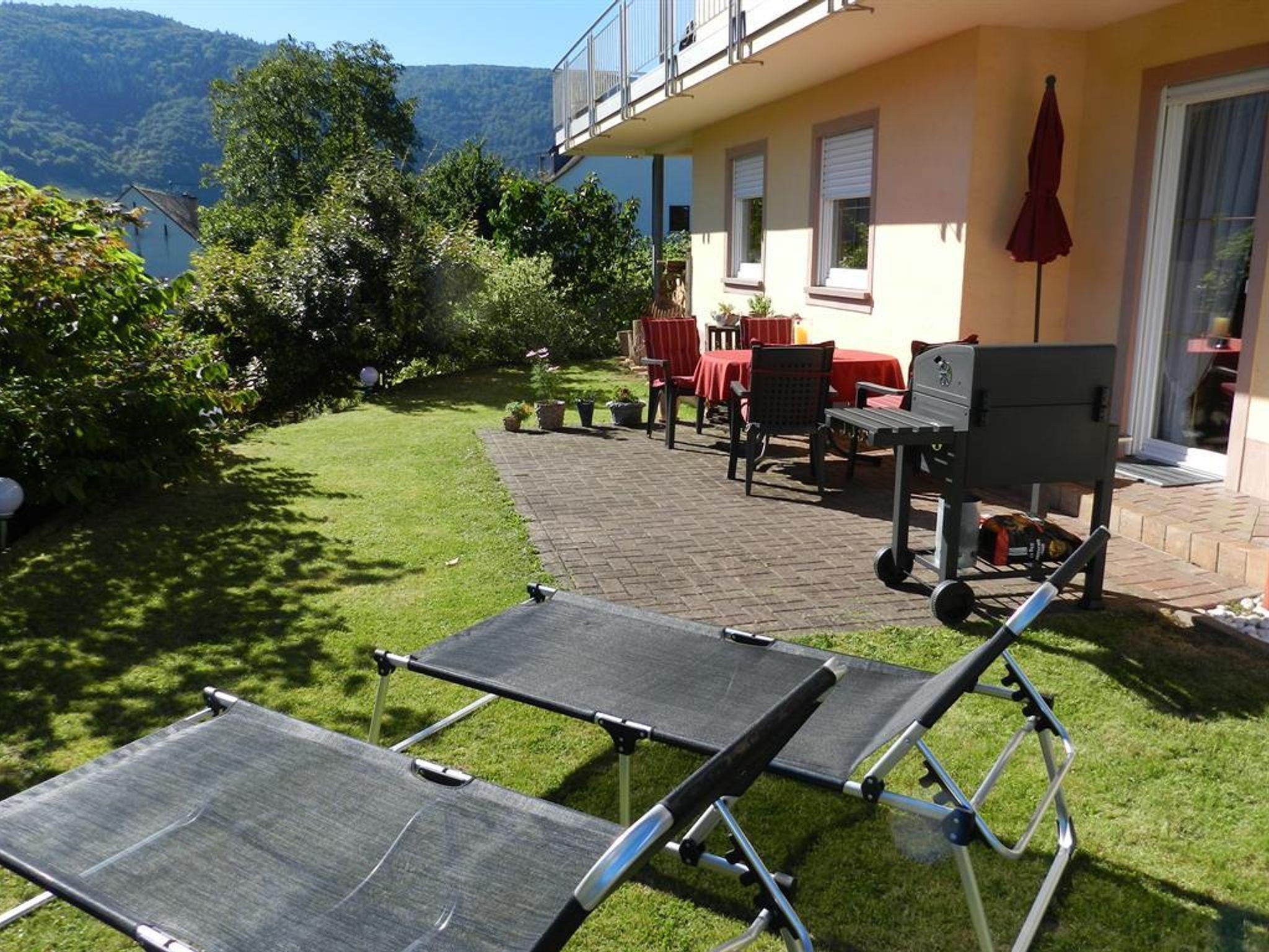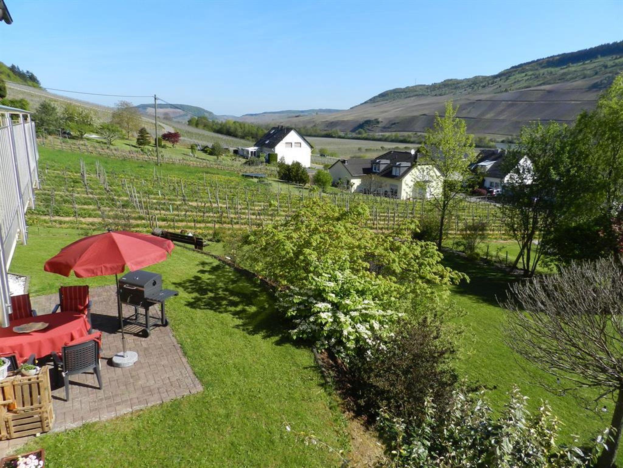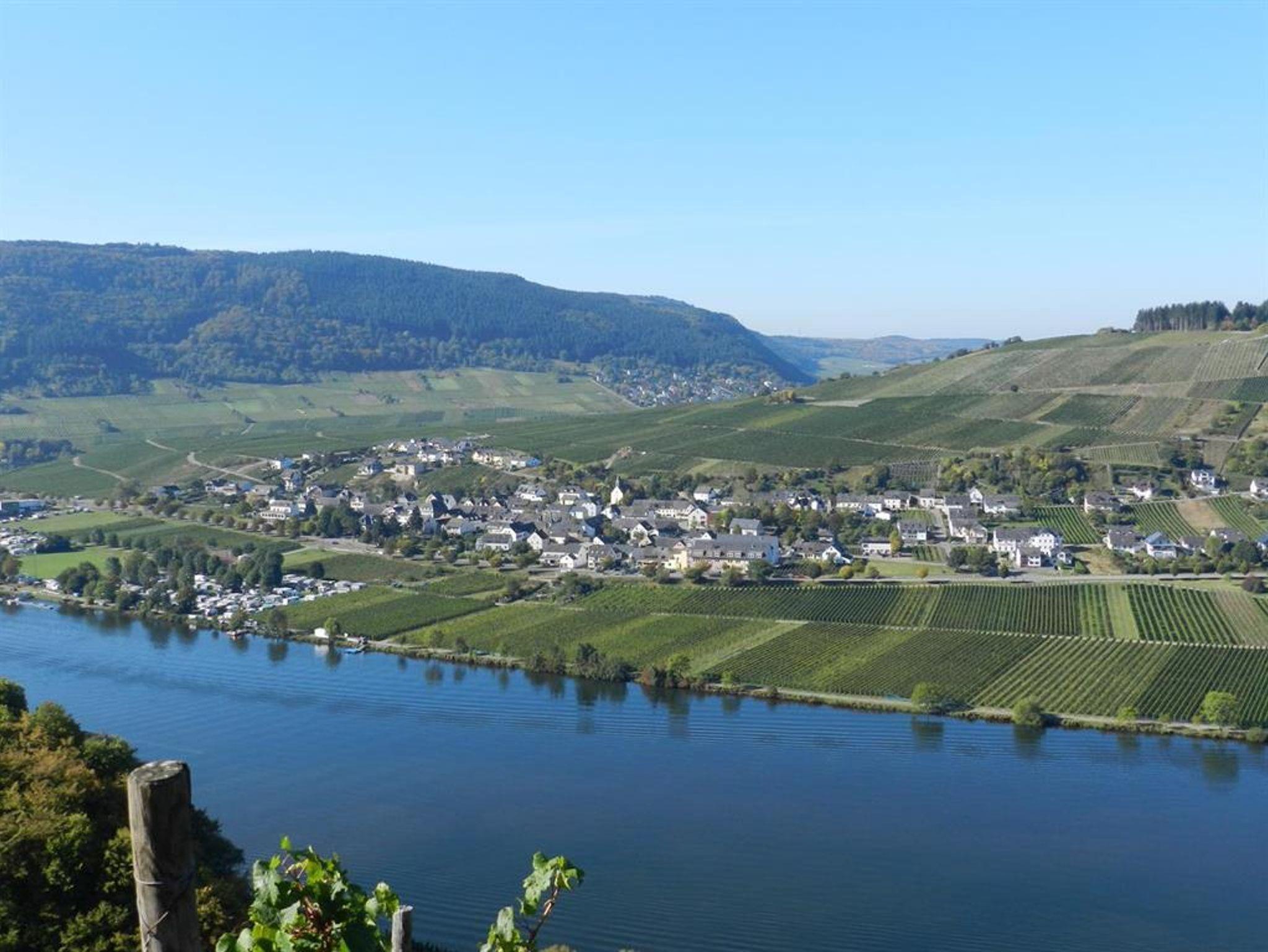 Schöne und modern eingerichte Ferienwohnung mit Terrasse und Moselblick. Unsere Ferienwohnung ist ruhig, am Ortsrand vom Moselweinort Pölich gelegen. Die 80 qm große Ferienwohnung befindet sich im Untergeschoss, als Einliegerwohnung, mit separatem Eingang, in unserem Einfamilienhaus. Die gemütlich eingerichtete Wohnung bietet Platz für 2 Personen, zusätzlich steht ein Kinderbett für Kinder bis zu 3 Jahren im Schlafzimmer. Die komplett eingerichtete Küche ist ausgestattet mit einem Geschirrspüler, Backofen, Mikrowelle sowie diversen anderen Elektrogeräten wie Toaster, Eier- und Wasserkocher, Kaffee- und Brotmaschine. Im separaten Schlafzimmer mit Doppelbett befindet sich ein großer Kleiderschrank mit Spiegelfront. Das großzügig geschnittene Wohn-/ Esszimmer ist ausgestattet mit Flachbildschirm, Stereoanlage und einem Schlafsofa (1,40 m x 1,90 m) für 1-2 Kinder. Im geräumigen Badezimmer befindet sich eine Badewanne mit Duschmöglichkeit und WC. Über die Küche gelangt man auf die Terrasse, die mit Gartenmöbeln, Sonnenliegen und einem Grill ausgestattet ist. Die Wohnung verfügt auch über einen kleinen Abstellraum. Pölich liegt umgeben von Weinbergen im schönen Moseltal. Die Umgebung zeichnet sich aus durch viele Wander- und Fahrradwege. Die meisten davon sind bequem in ein paar Minuten zu erreichen. Das mittelalterliche Bernkastel-Kues ist in ca. 30 km Entfernung entlang der Mosel und die älteste Stadt Deutschlands Trier, in ca. 20 Minuten zu erreichen. In kürzester Entfernung besteht die Möglichkeit zum Reiten und Golfspielen, ein Badesee mit Minigolf und Sommerrodelbahn ist auch über den angrenzenden Fahrradweg zu erreichen. An der Mosel wird gerne gefeiert. Pölich feiert in jedem Jahr am 1. Juli Wochende sein Weinfest. Ansonsten kann man vom Frühjahr bis in den Herbst, in den angrenzenden Orten schöne gemütliche Weinfeste besuchen.