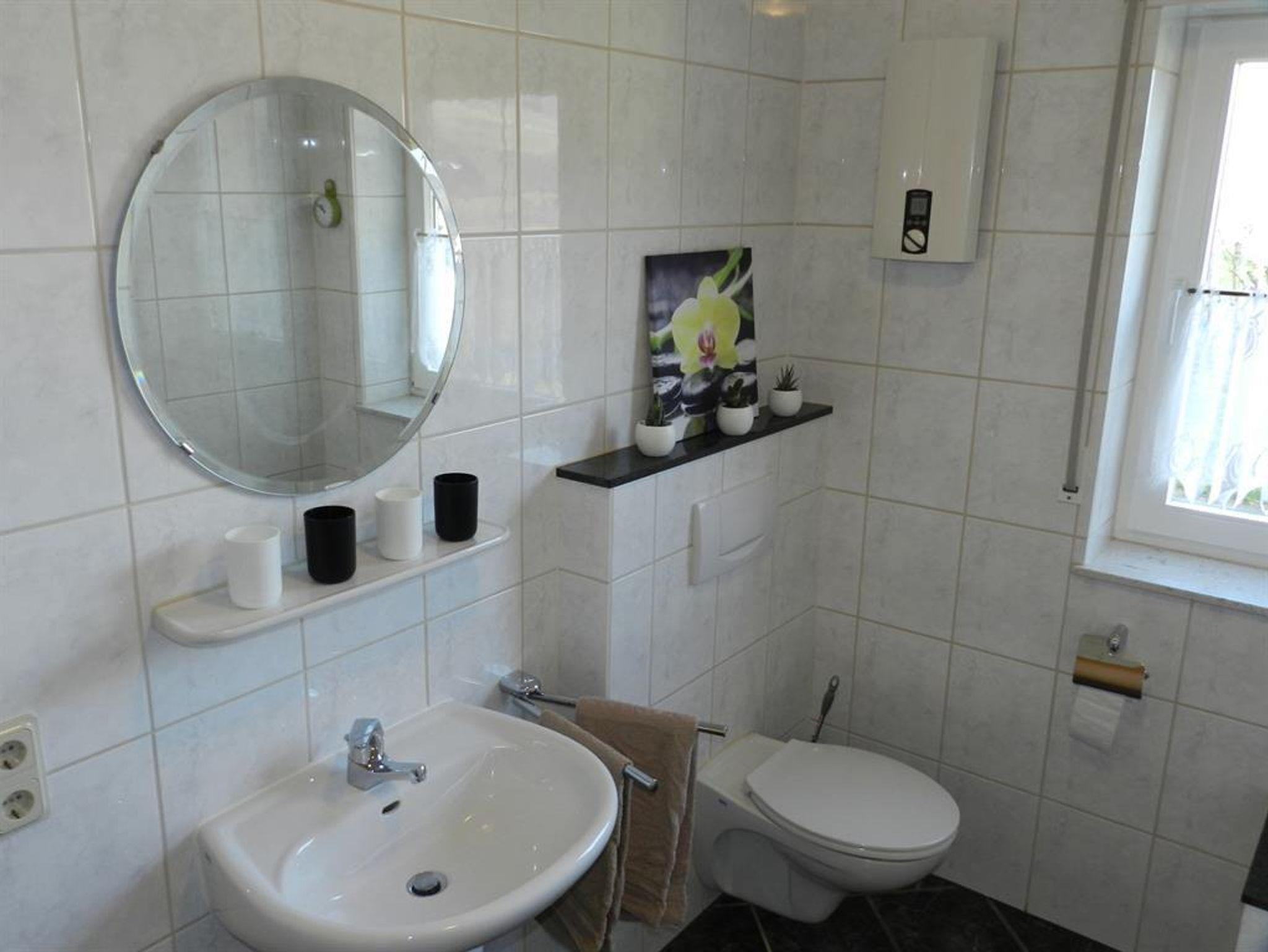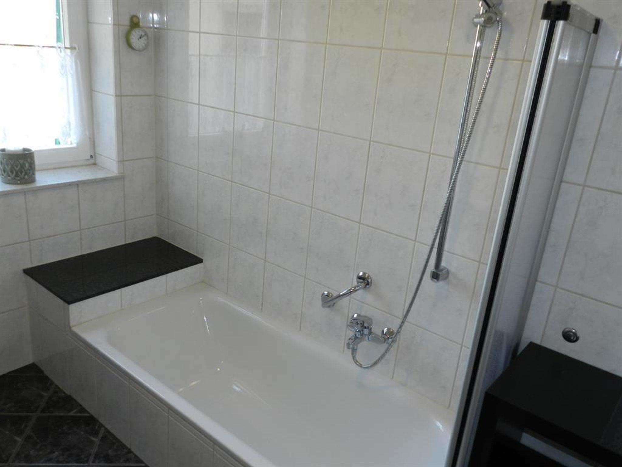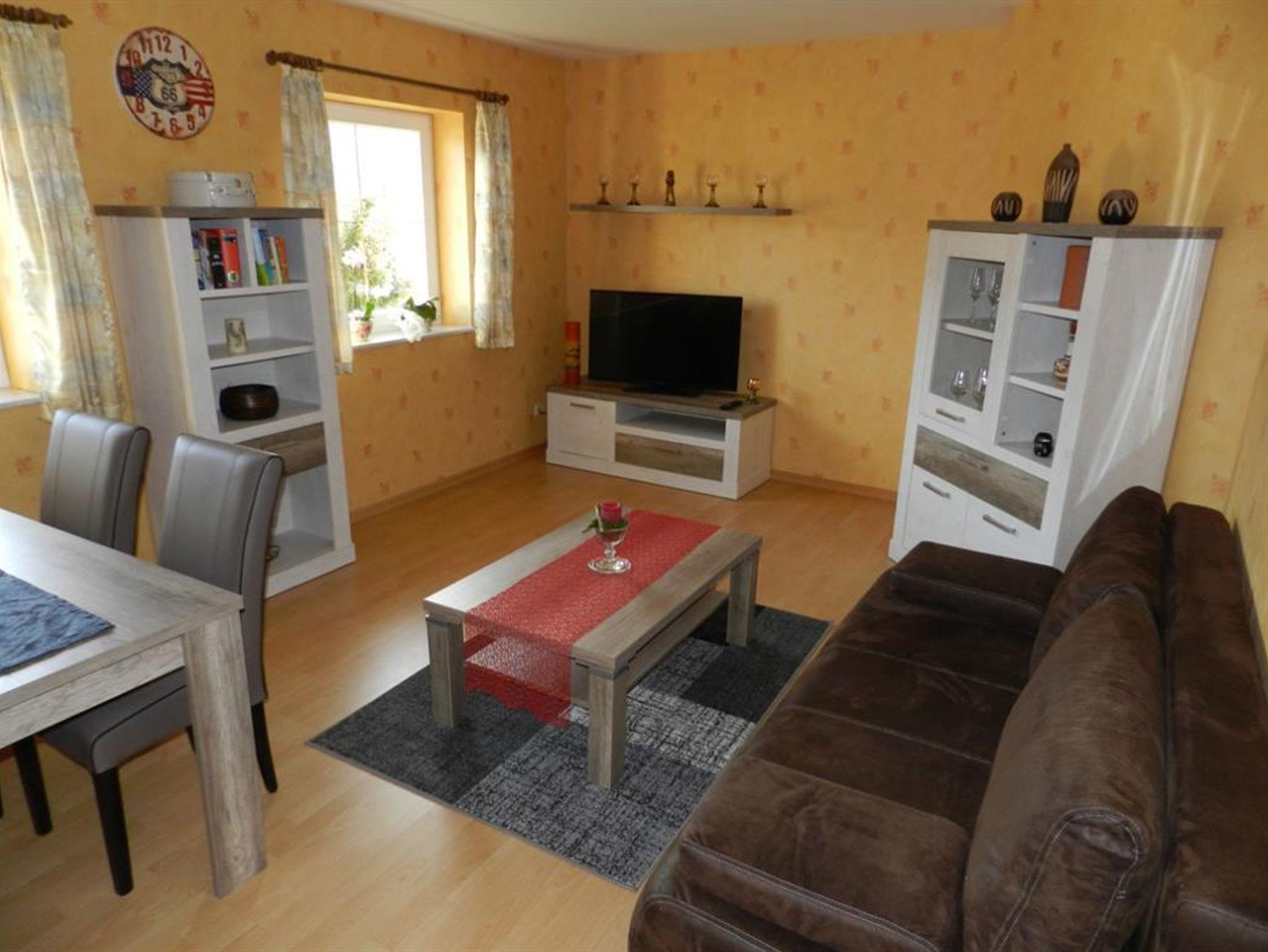 Unsere neue, modern eingerichtete Ferienwohnung ist ca. 80 m² groß. Sie bietet Platz für bis zu 4 Personen und zusätzlich steht ein Kinderbett für Kinder bis zu 3 Jahren im Schlafzimmer bereit. Die komplett eingerichtete Küche ist ausgestattet mit einem Geschirrspüler, Backofen und diversen Elektrogeräten wie Toaster, Eierkocher, Kaffee- und Brotmaschine, Wasserkocher, Kühlschrank mit Gefrierfach und einer Mikrowelle. Im separates Schlafzimmer steht ein großer Kleiderschrank mit Spiegelfront. Das großzügig geschnittene Wohn-/ Esszimmer ist ausgestattet mit Flachbildschirm, Stereoanlage und Schlafsofa für 2 Personen. Im geräumigen Badezimmer befindet sich eine Badewanne mit Duschmöglichkeit und WC. Der separate Eingang zur Wohnung befindet sich auf der rechten Hausseite. Über die Küche gelangt man auf die Terrasse, die mit Gartenmöbeln und einem Grill ausgestattet ist. Die Wohnung verfügt auch über einen kleinen Abstellraum.