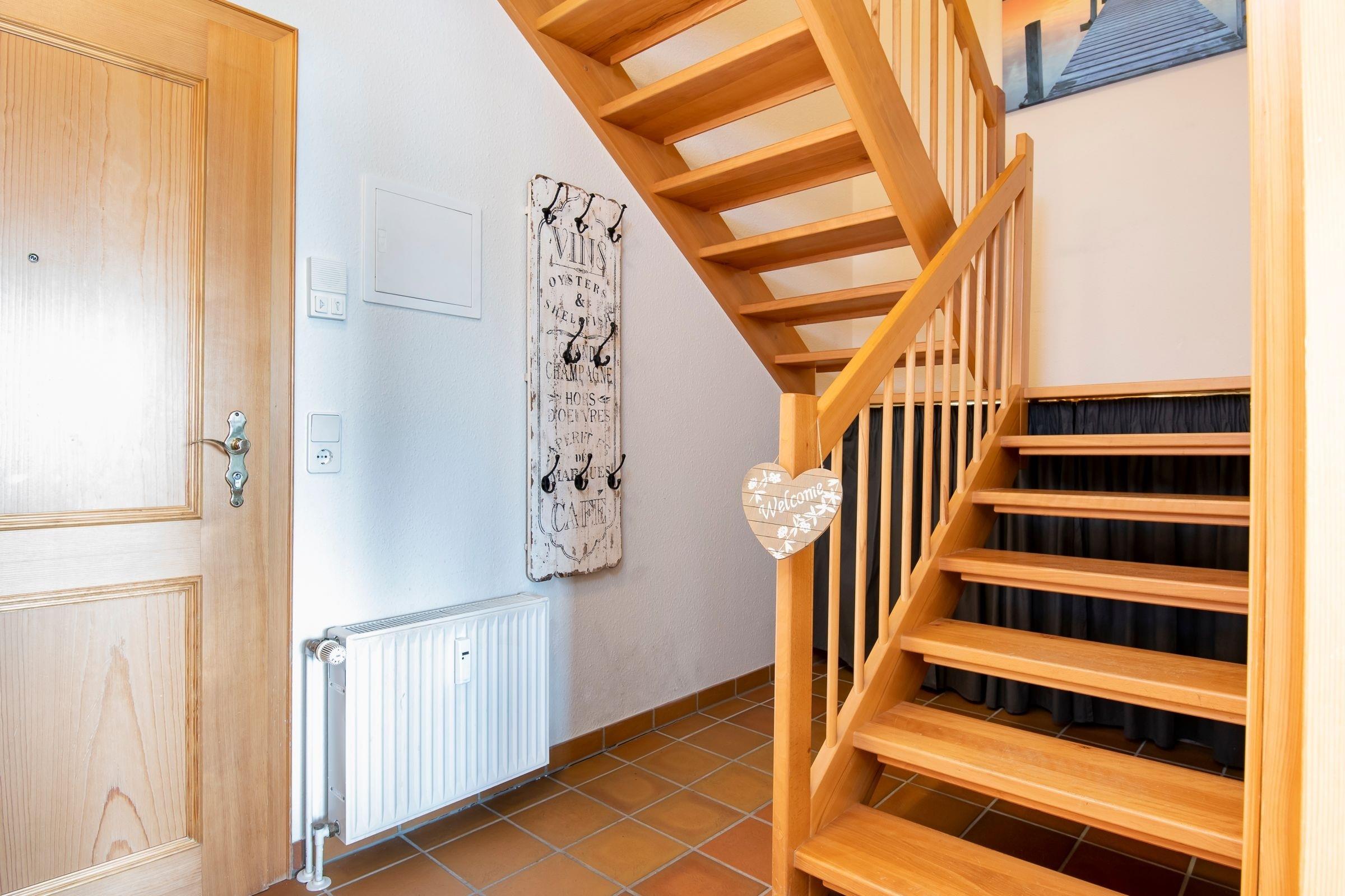 Diese charmante Ferienwohnung im zeitlos-modernen Landhausstil befindet sich im 1. und 2. OG des idyllisch gelegenen Landhauses. Die Wohnfläche des Feriendomizils umfasst ca. 105 m², erstreckt sich über 2 Ebenen und offeriert 3 Zimmer, davon ein helles, offenes Wohnzimmer und 2 separate Schlafzimmer.