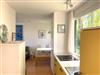 Das Haus hat einen Wohnbereich mit Essecke. Der Schlafraum ist ausgestattet mit einem franz. Bett (1,6m x 2m). Es gibt eine kleine Küchenzeile und ein Duschbad.