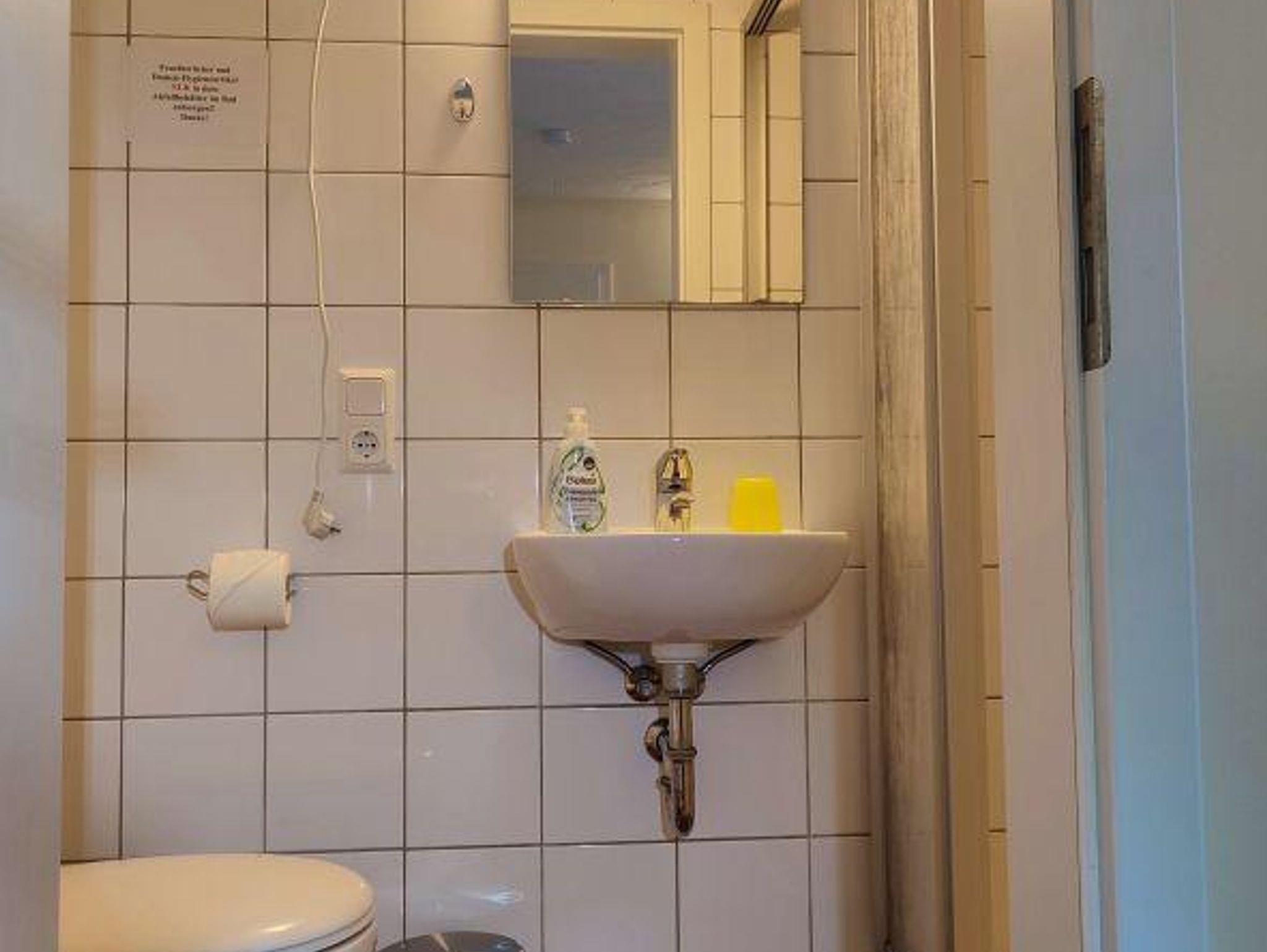 Das Einzelzimmer mit Du/WC, TV und WLAN (Dachschräge möglich) ist mit Kühlschrank, Wasserkocher und Tischset ausgestattet. Gegen Entgelt kann der Kühlschrank mit Getränken und Diverses bestückt werden.