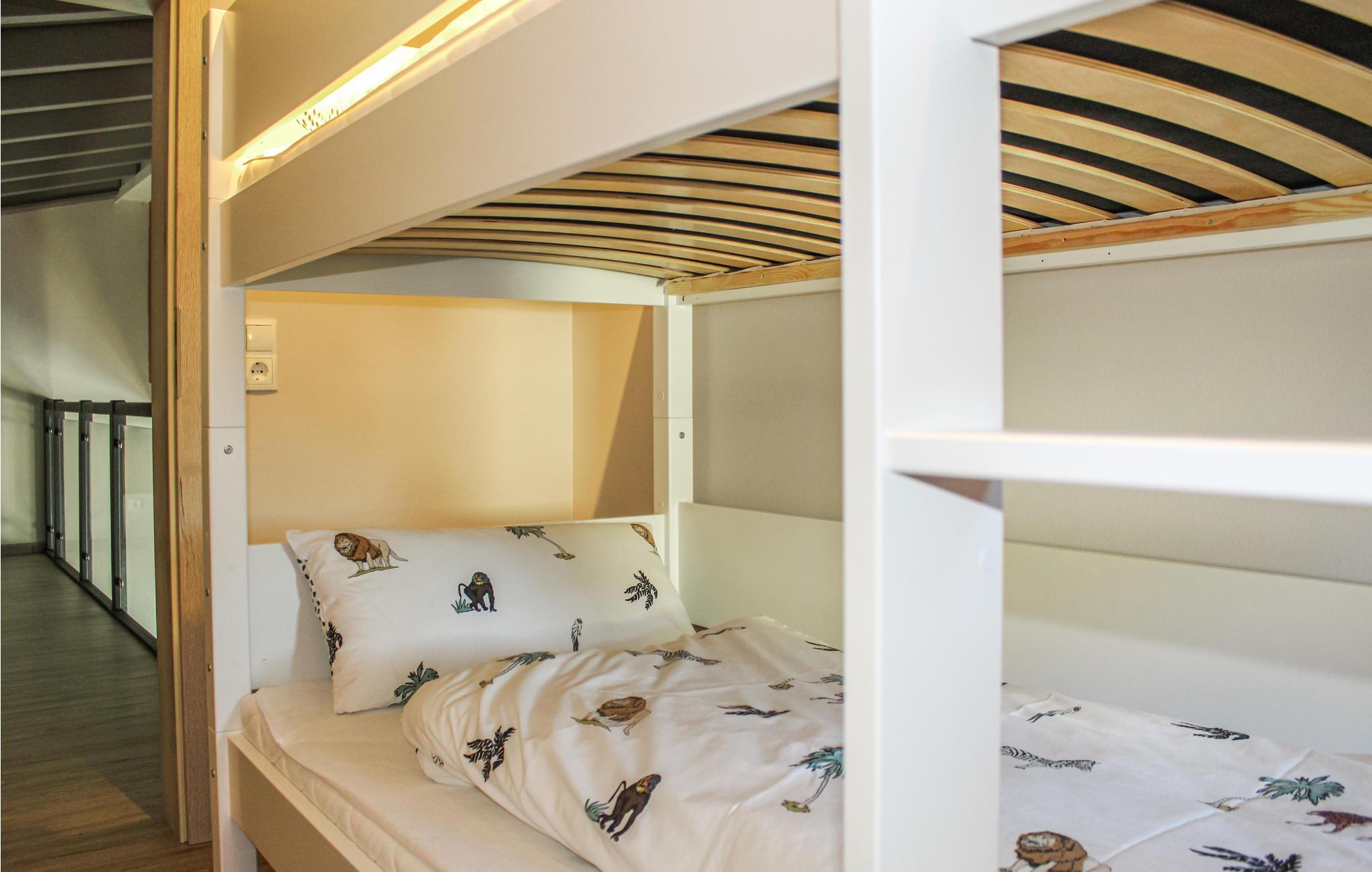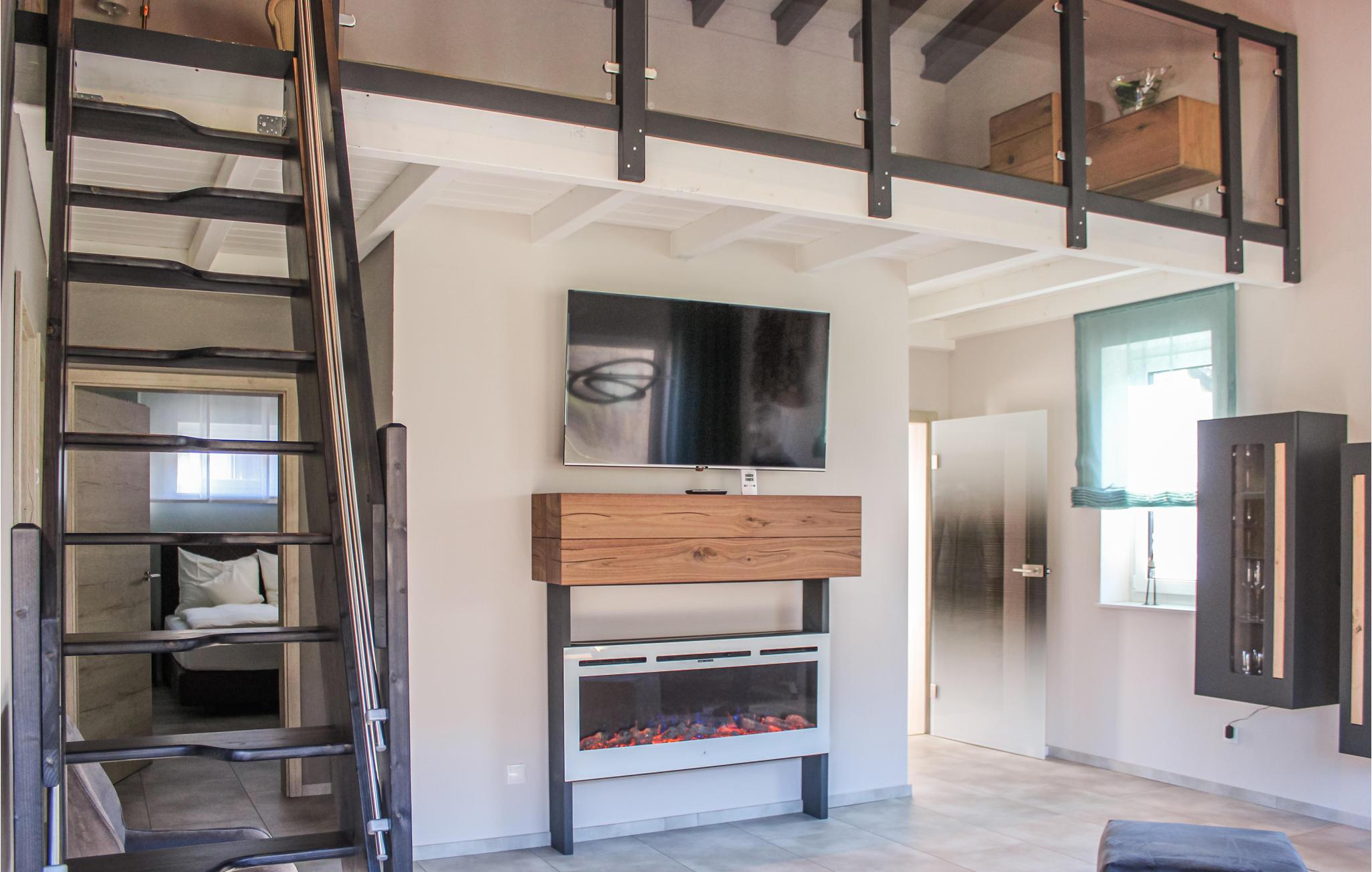 Ferielejligheden med hems tilgås i stueplan (huset Casa Lion er bygget på en bjergskråning) og er derfor barrierefrit. I kommer ind i lejligheden via en lille entre og træder dernæst ind i den lyse stue/alrummet. Jeres blik vil sikkert blive tiltrukket af de store panoramavinduer i stue/spisestuen, som byder på en fantastisk udsigt til Mosel. Køkkenet er smagfuldt indrettet med alle hårde hvidevarer, og den indbyggede spiseplads foran er ikke kun velegnet til måltider, men giver også plads til spil eller arbejde. Ved siden af ??køkkenet går den lille trappe op til galleriet, hvor der er soveværelse til børn op til 12 år samt plads til at lege eller tage et hvil.