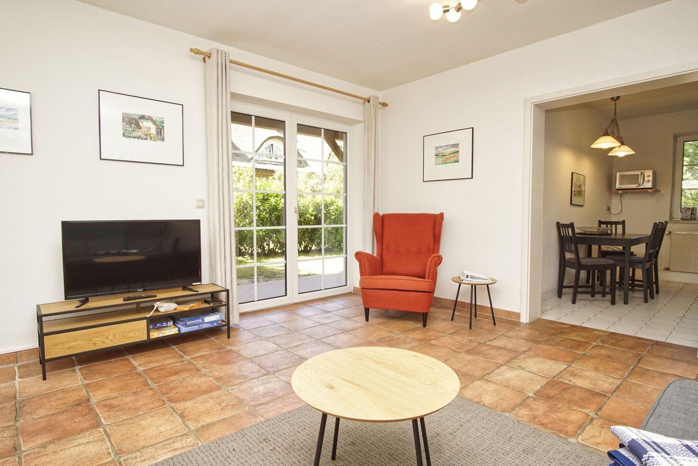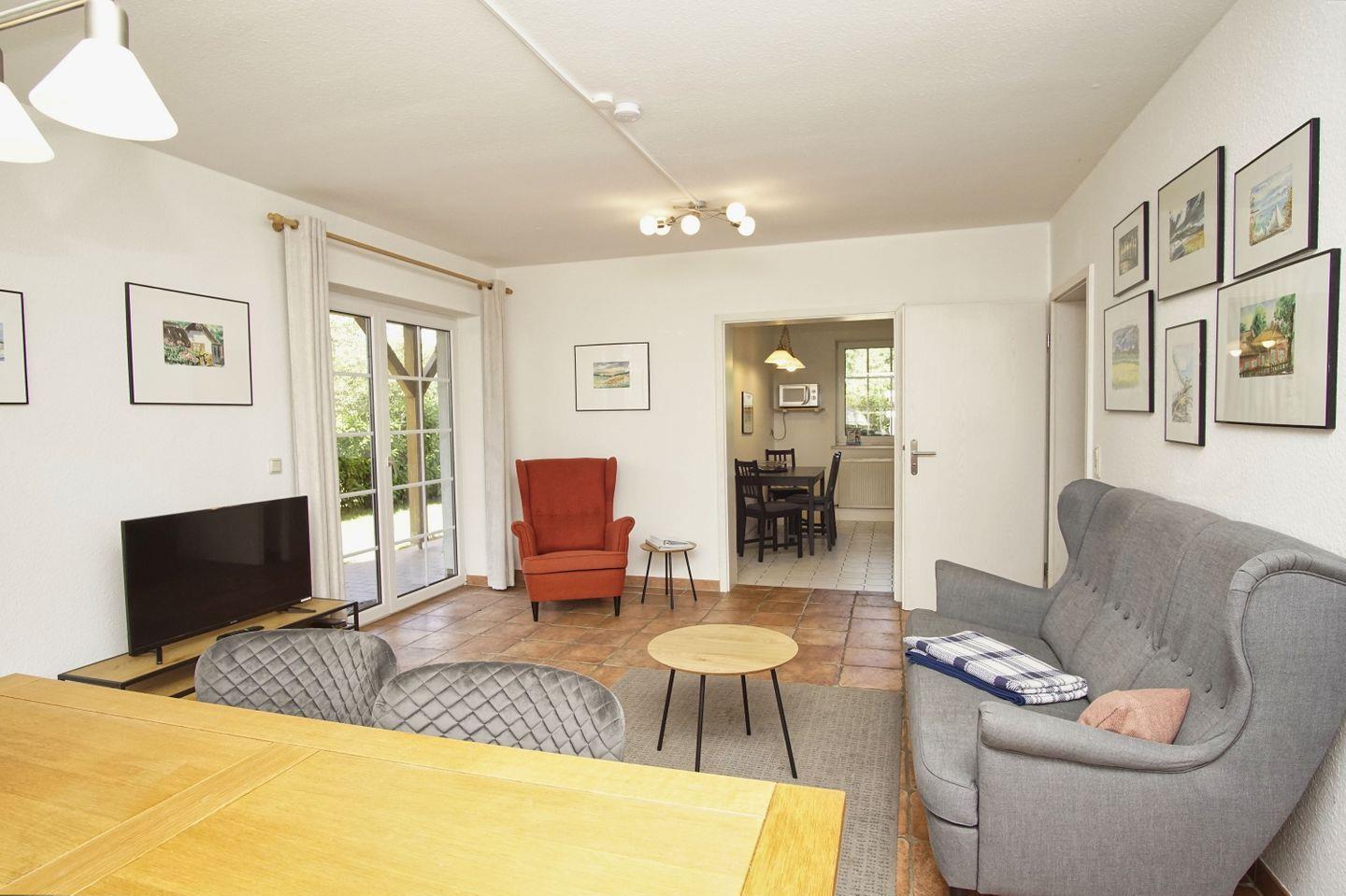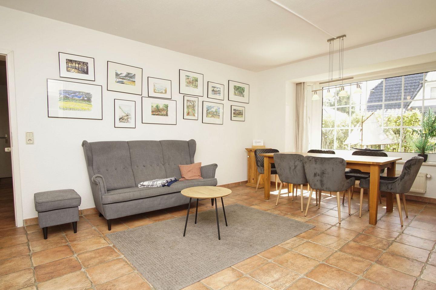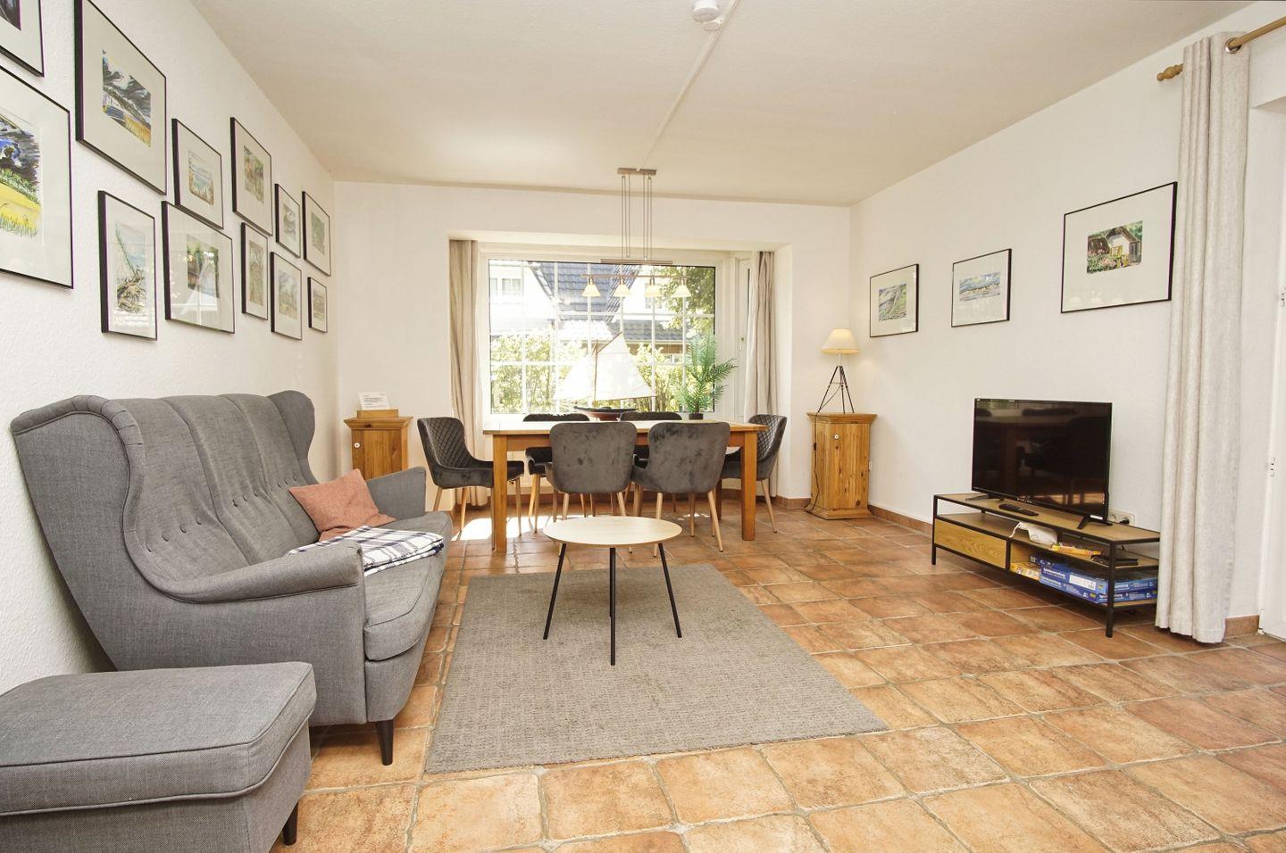 WOHNEN // Wohnraum mit Essbereich, Sitzgarnitur mit bequemer Couch, Sessel, Flachbild-TV, Internet (W-LAN) ++