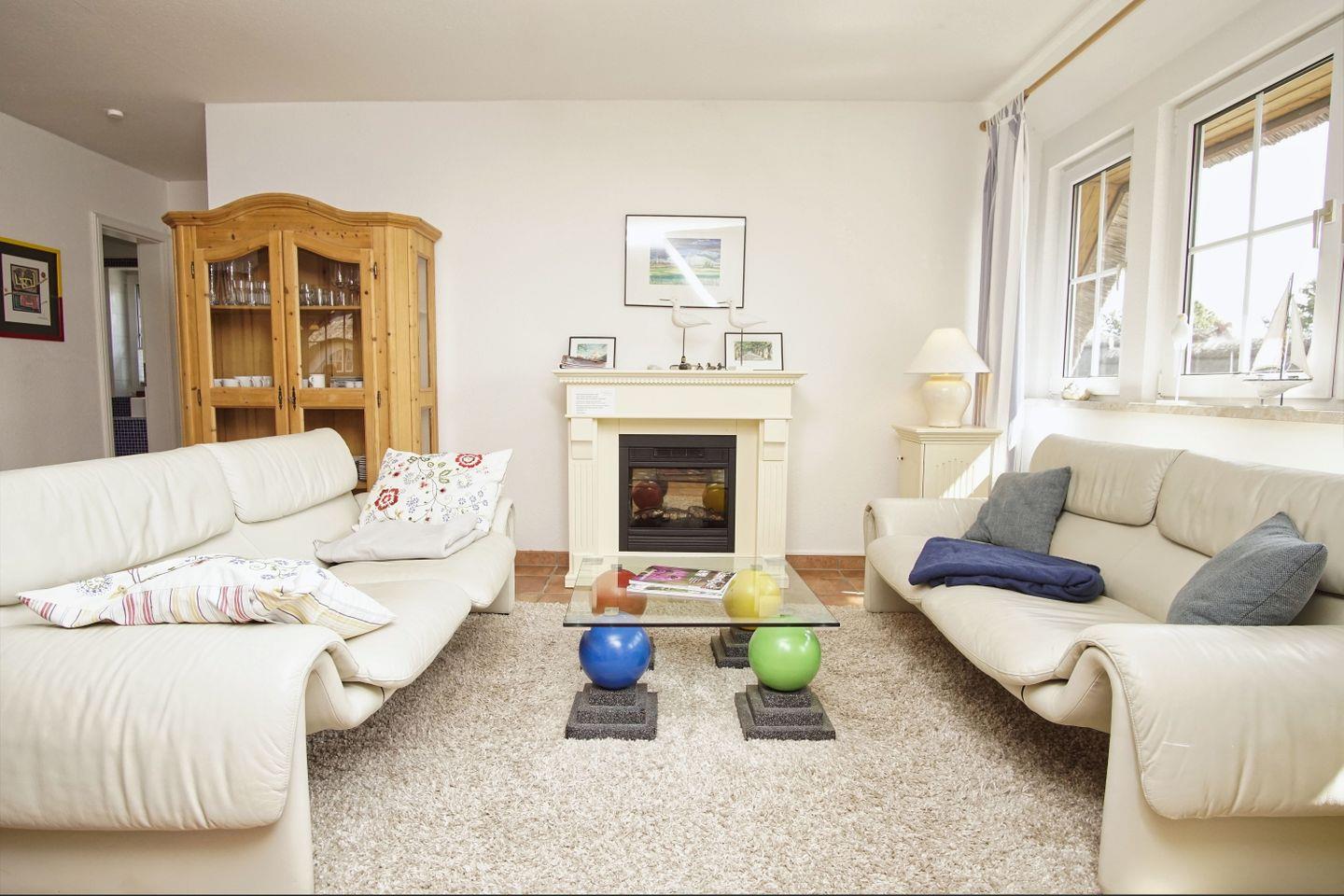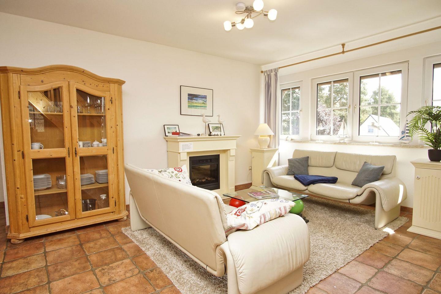 WOHNEN // Wohnraum mit Essbereich, Sitzgarnitur mit bequemer Couch, Sessel, Flachbild-TV, Internet (W-LAN), Elektrokamin, Zugang zum Balkon ++