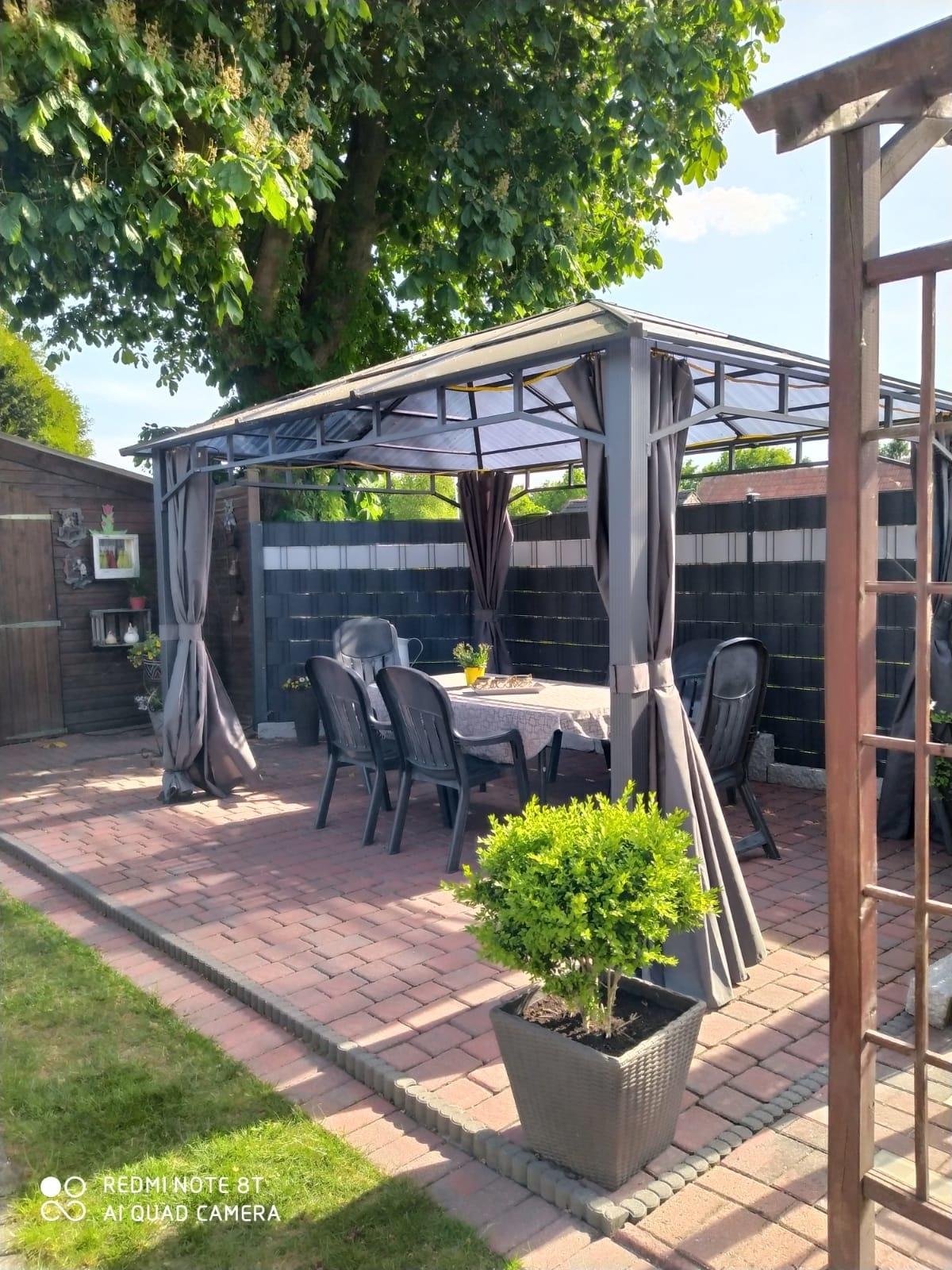 Zur Ferienwohnung gehört ein Pavillon für gemütliche Stunden mit Grillmöglichkeiten.