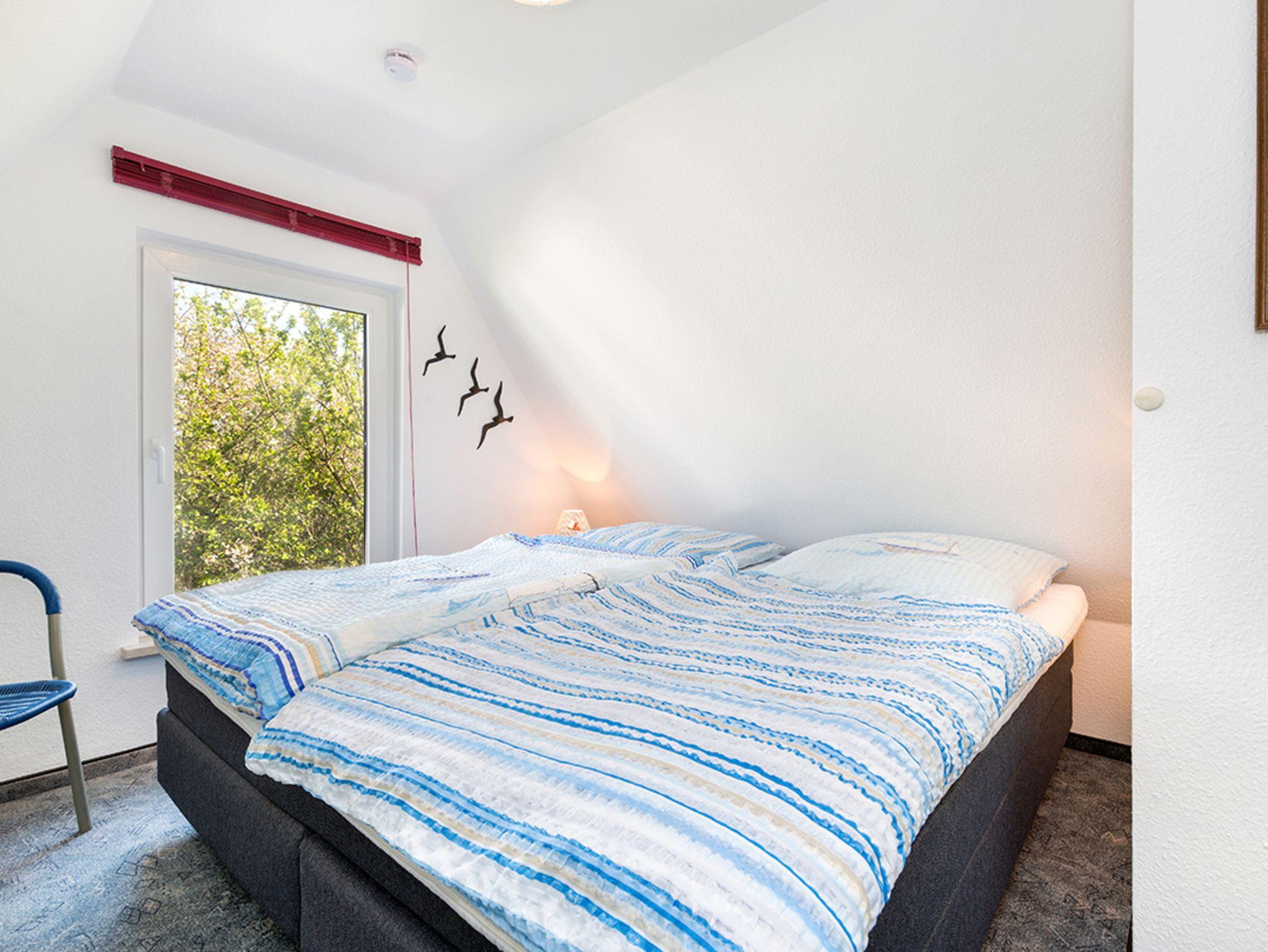 Obergeschoss: großes Schlafzimmer (offener Wendeltreppenzugang) mit zusammenschiebbaren Einzelliegen 0,80 x 2,00 m (Boxspringqualität), Schrank, Durchgang ins kleine Schlafzimmer -