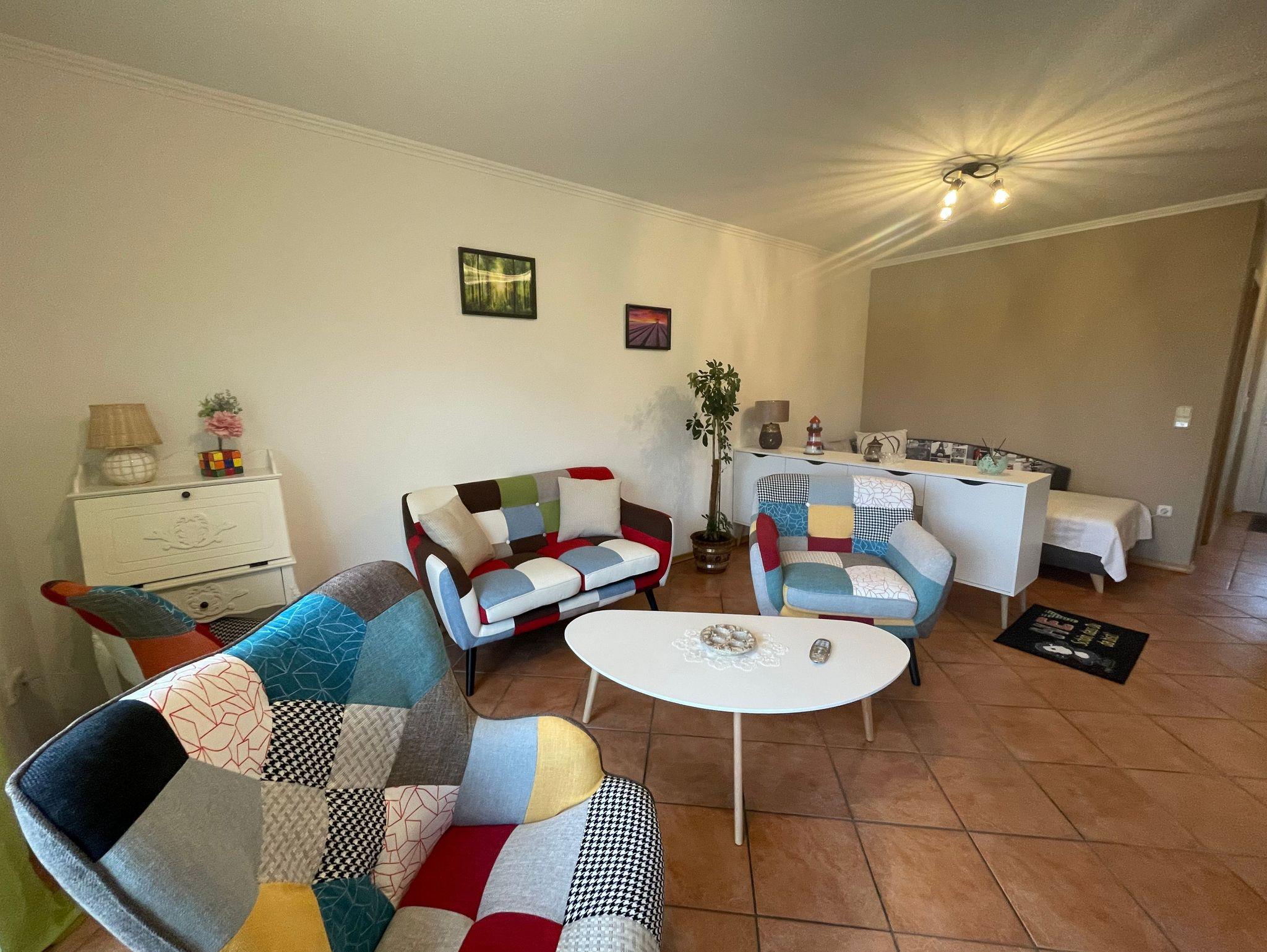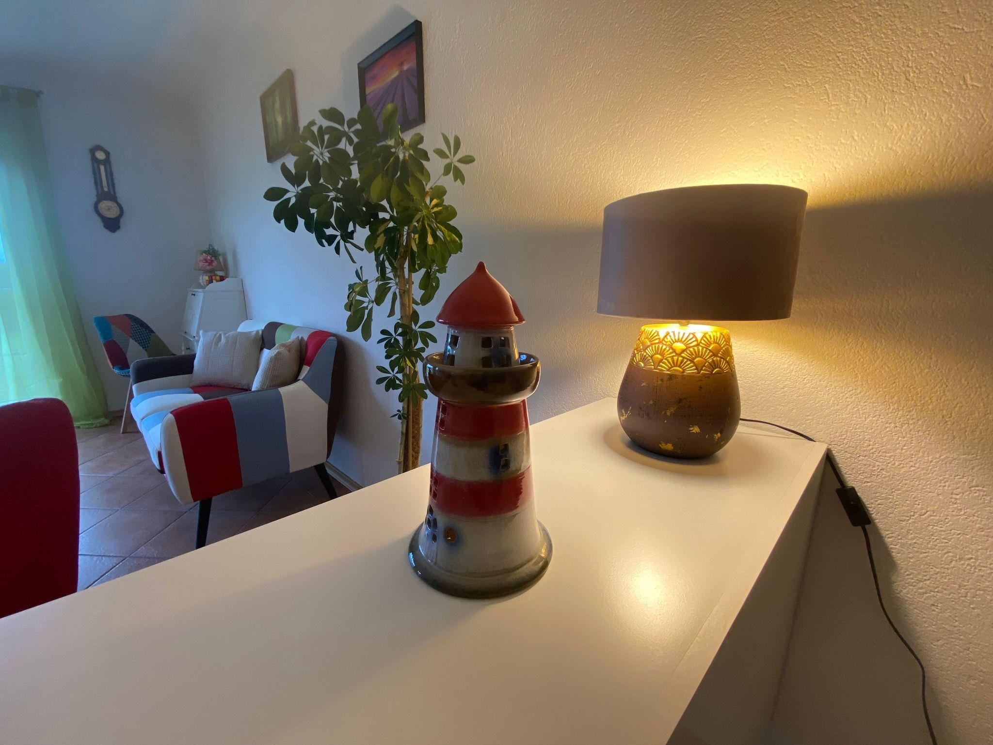 Die Wohnung ist geschmackvoll und modern eingerichtet, dabei aber auch gemütlich und funktional, um eine entspannte Atmosphäre zu schaffen. Große Fenster lassen viel Tageslicht hinein und bieten einen Blick auf die umliegende Natur, sodass man bereits beim Frühstück das Gefühl hat, mitten im Grünen zu sein. Der offene Wohnbereich ist hell und einladend, mit einem komfortablen Sofa, einem Flachbild-TV und ausgestatteten Küche, die zu gemeinsamen Kochabenden einlädt.