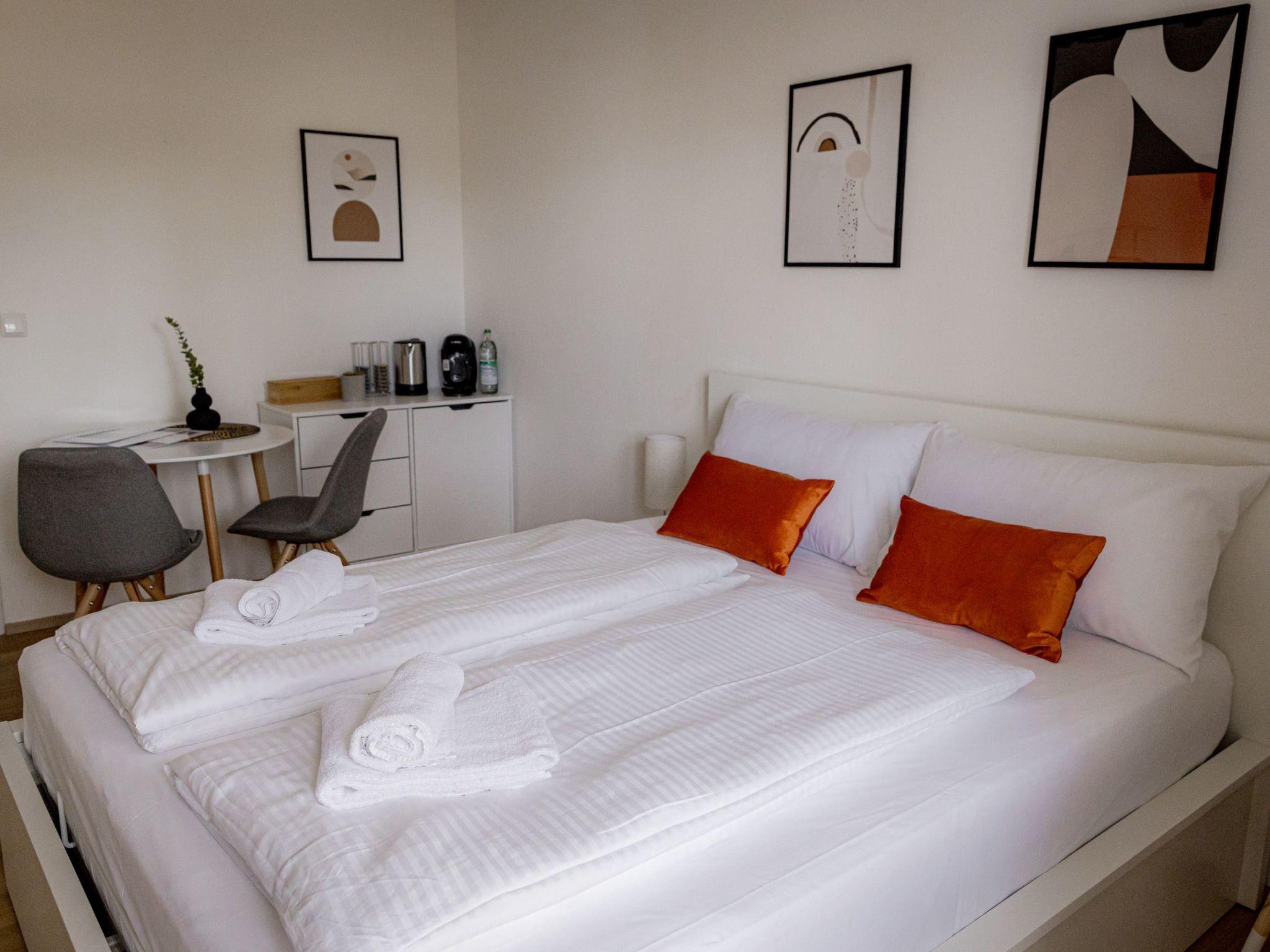Welcome to your short-term home from COME4STAY. Your apartment is centrally located in Passau, within walking distance of the city centre and the train station. The numerous charming shops with handmade specialities, branches of popular and exclusive brands, small designer studios and large shopping centres are also in the immediate vicinity. You will be staying in a stylish and modernly furnished 1-room flat with a double bed, private balcony, bathroom with shower/WC, free WiFi, flat-screen Smart TV with NETFLIX and fully equipped kitchen including washing machine, fridge and dining table with chairs. The ideal flat for a private or business stay in Passau. The bright flat is only 1.6 km from the centre on foot with parking directly in front of the building. Fresh towels and bed linen, as well as shampoo and shower gel are provided. The modern kitchen is equipped with a coffee machine, kettle, microwave and toaster.