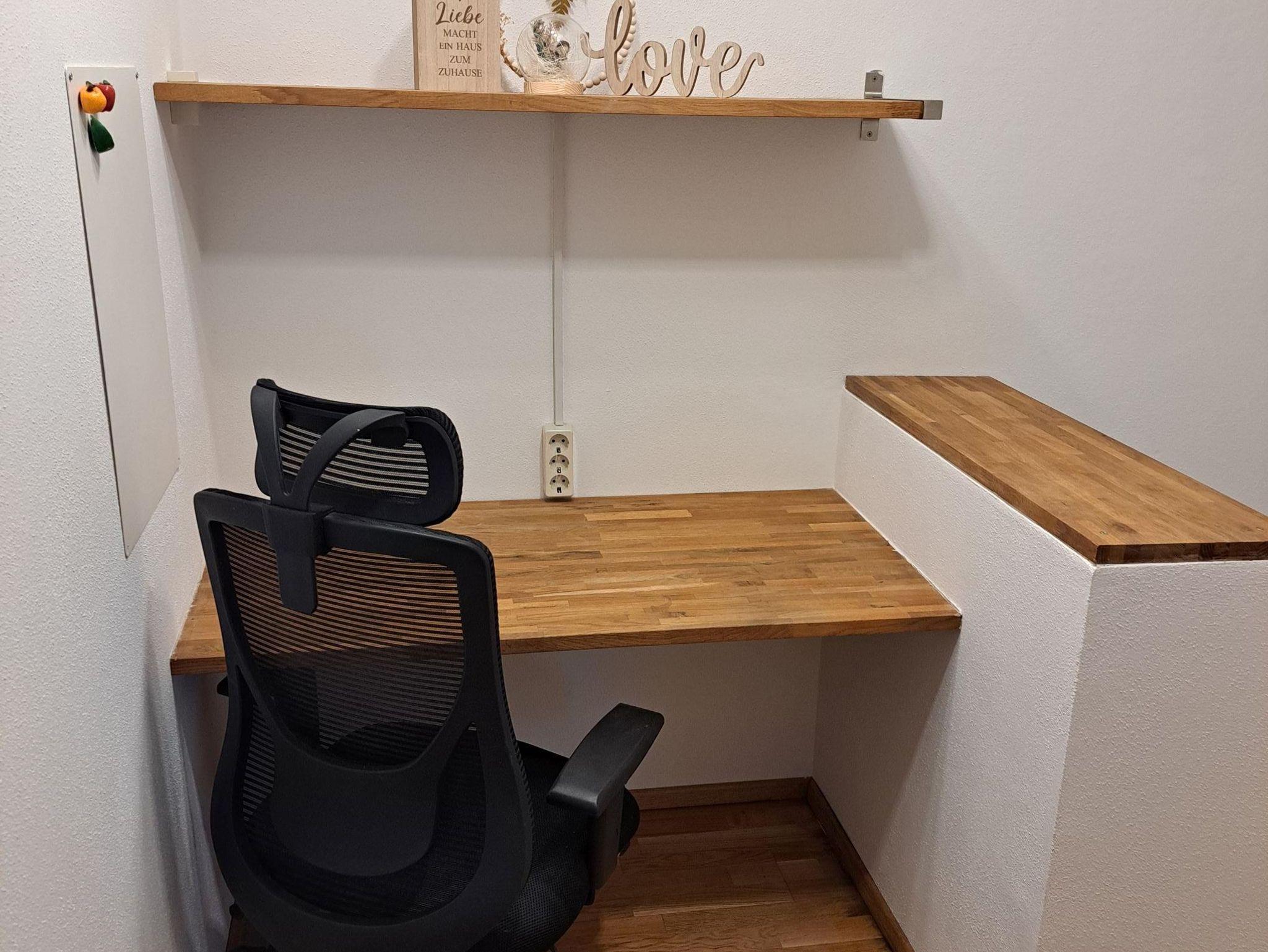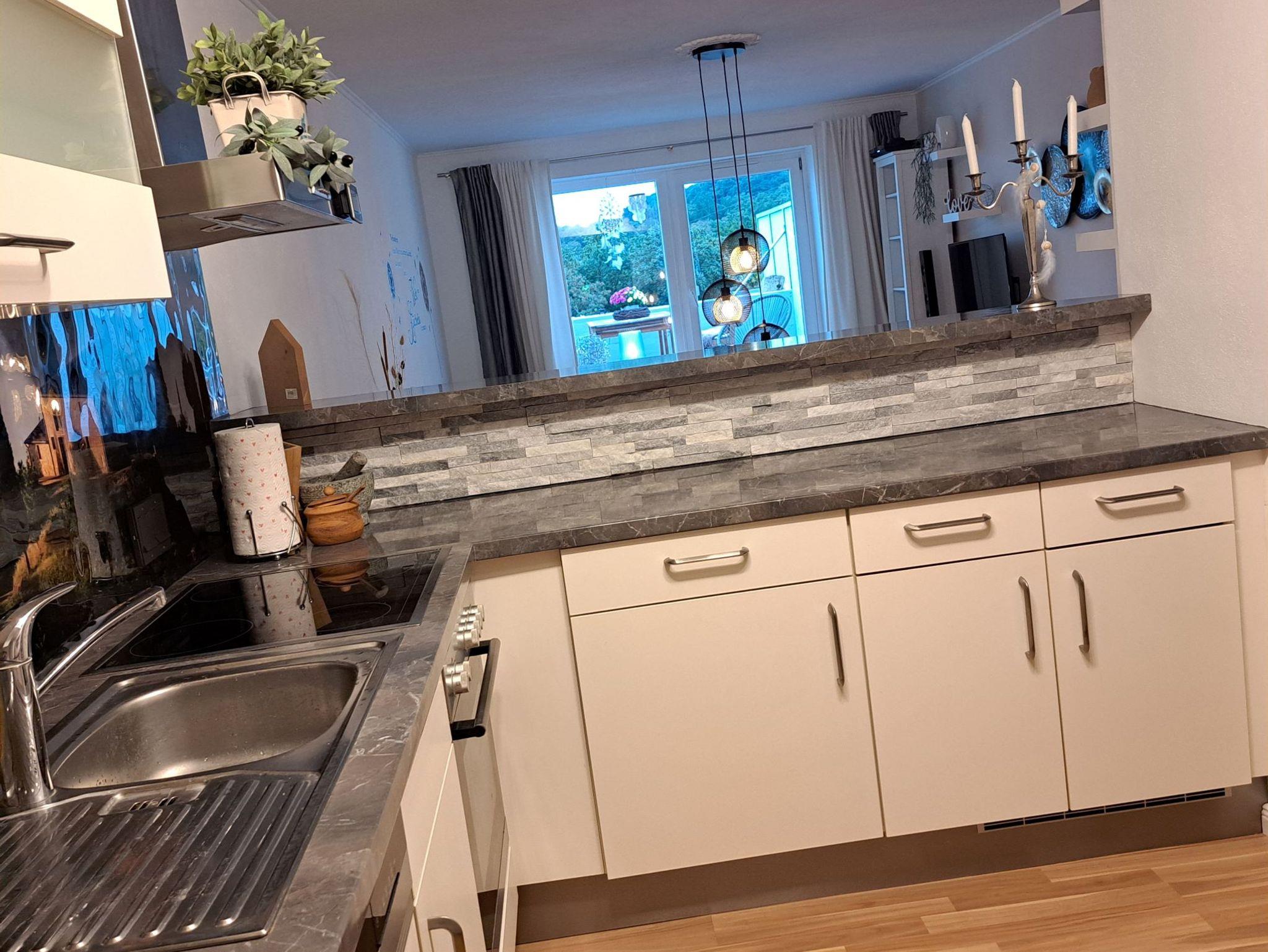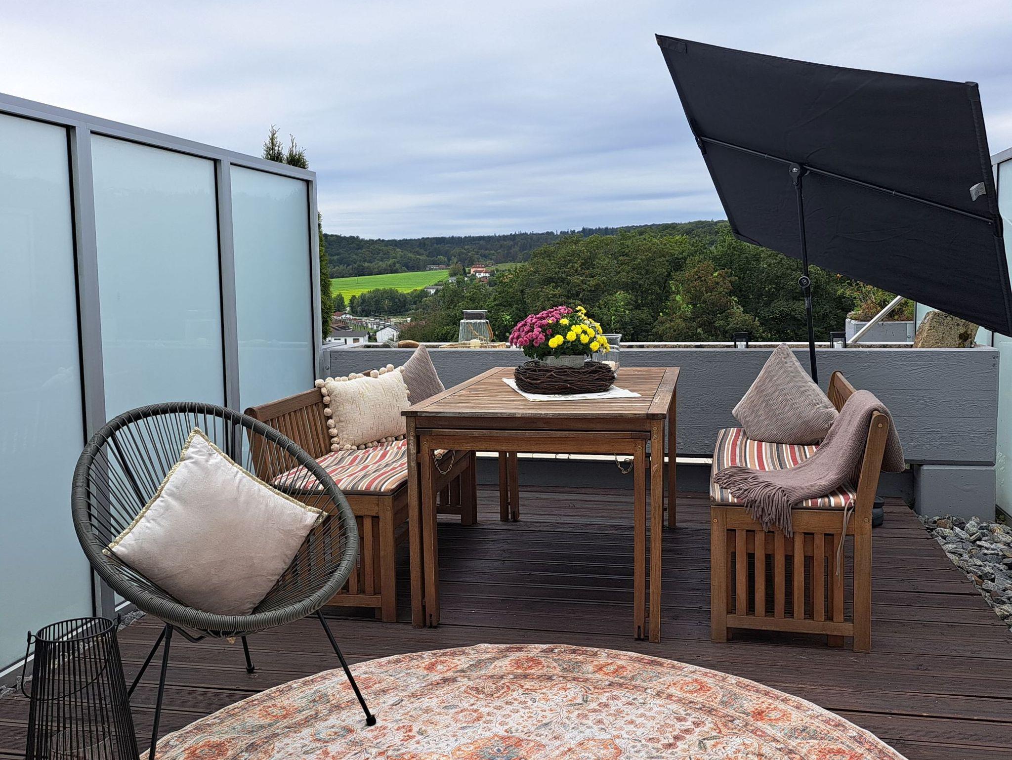 Die Wohnung ist bequem vom Hauseingang mit dem Aufzug oder einer Treppe erreichbar. Im ersten Stock der Maisonette Wohnung befindet sich die geräumige Küche mit Spülmaschine, Kühlschrank und E-Herd, sowie das Wohnzimmer mit großem Ecksofa und Fernseher sowie einer Musikanlage (ALEXA). Ein Esstisch für 4 Personen ergänzt den offen gestalteten Wohnraum. Die großzügige Terrasse, mit einem herrlichen Blick, über den Inn ist über eine Balkontüre bequem erreichbar. Auf Terrasse befindet sich ein großer Esstisch, sowie zusätzliche Stühle. Über eine Treppe in Innenbereich gelangt man in den oberen Stock der Maisonette Wohnung. Im oberen Stock befindet sich eine kleine Arbeitsecke mit Schreibtisch und Bürostuhl sowie das Bad mit Toilette, Waschbecken, Badewanne/Dusche und Waschmaschine. Das Schlafzimmer ist über eine separate Tür erreichbar. Im Schlafzimmer befindet sich das Doppelbett (180cm x200cm) und ein großer Wandschrank. Eine weitere kleine Terrasse lädt zum Verweilen ein. Zur Wohnung gehört ein PKW-Stellplatz der ca. 200m vom Wohnungseingang entfernt liegt. Der Weg vom PKW-Stellplatz zum Hauseingang ist durch eine Treppe und teilweise durch einen Aufzug möglich.