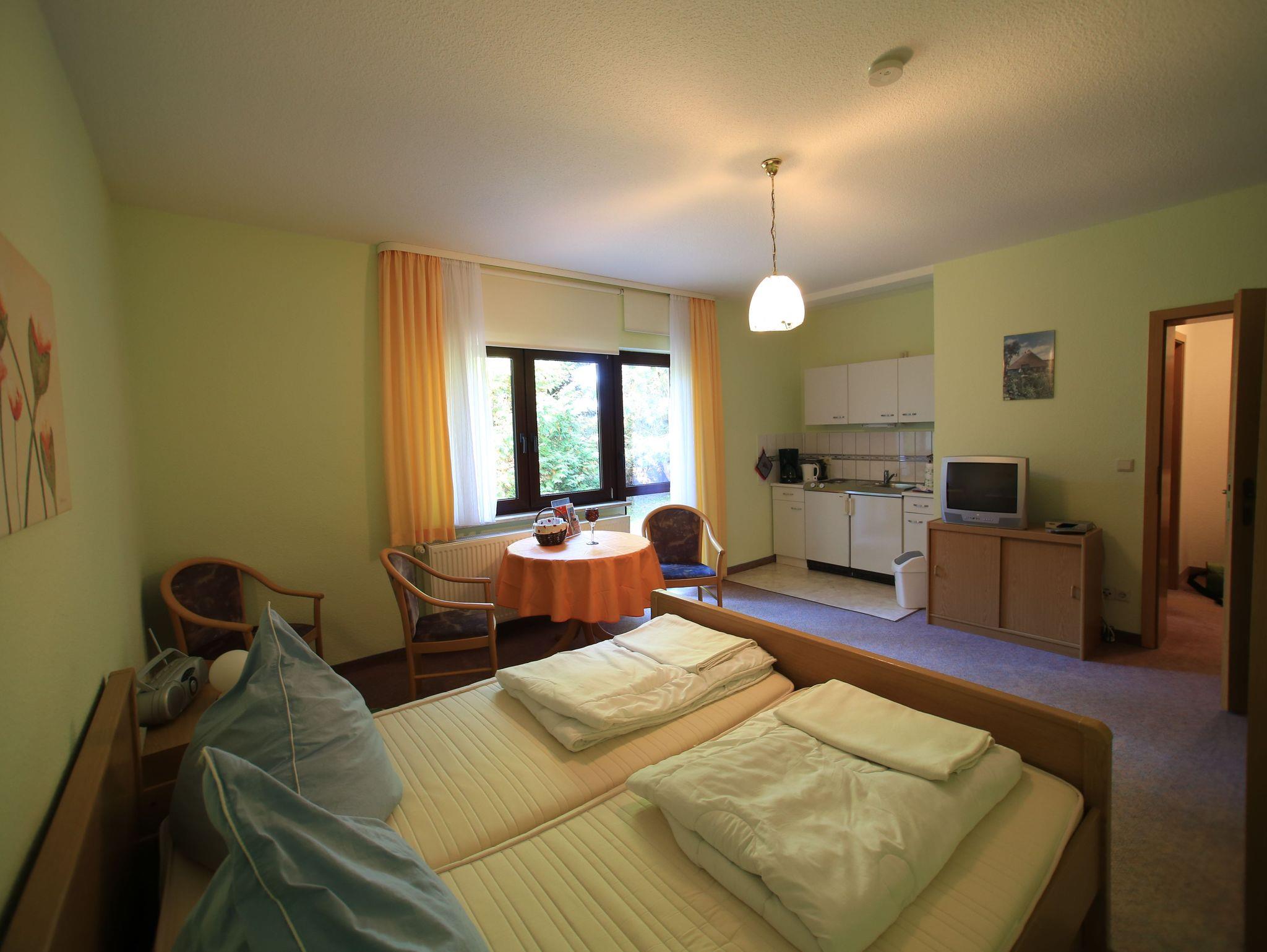 Die Appartements bestehen aus einem Wohn-/Schlafraum mit Doppelbett, einer Kochnische und einem Duschbad. Zu jedem Appartement gehört eine Terrasse. Auf dem großen Grundstück haben Sie Gelegenheit sich aktiv zu erhohlen.