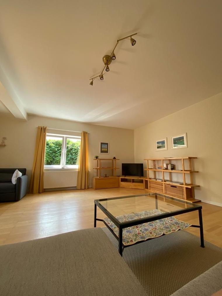 Großzügige Ferienwohnung mit eigenem Zugang, Schlafzimmer, Wohnzimmer, Küche, Bad, Sauna und Flur.