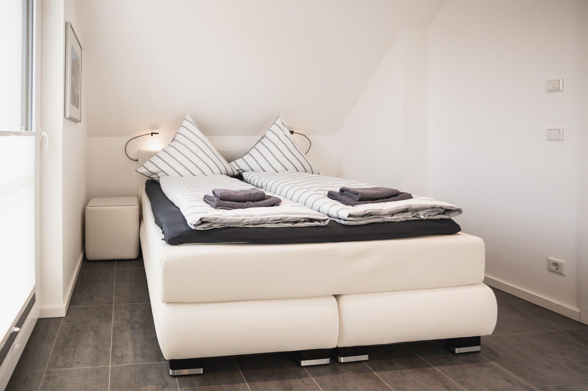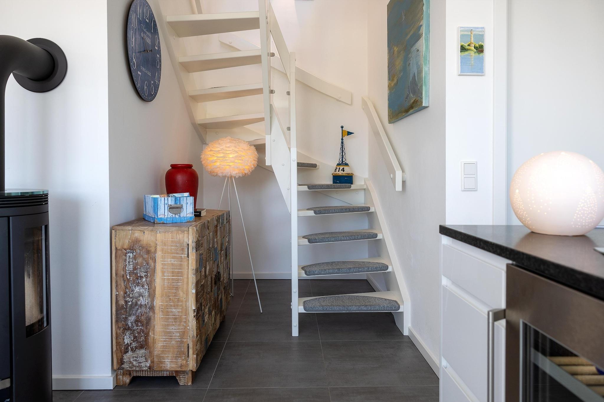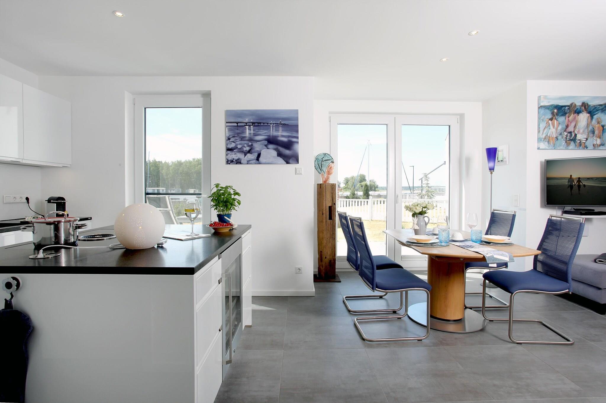 Moderne indrettet feriehus med åben pejs i den nordvestlige del af den solrige ø Usedom, med en førsteklasses beliggenhed direkte ved vandet. Havet og en lille havn ligger lige uden for døren. Dit feriehus har delvis havudsigt over Peene eller lystbådehavnen. Boksmadrasser og højkvalitets køkkenmaskiner samt galleri med loungemøbler og udsigt over havnen gør ferien perfekt. I feriekomplekset finder du forskellige servicefaciliteter såsom reception, købmandskiosk og brødservice, cykel- og bådudlejning samt shuttleservice til stranden. Derudover tilbydes sejlture og der er selvfølgelig også mulighed for at leje fortøjninger til egen båd. Detaljer: Forbrugsbaserede energiomkostninger, sengelinned, håndklæder, slutrengøring, 1 flaske vand og 1 Nespresso-kapsel pr. Aktiviteter i nærheden: Cykelture langs kysten eller udflugter med Apollo-passagerselskabet bringer dig tættere på Usedoms naturlige skønheder. For dem, der er interesseret i teknologi og historie, anbefaler vi et besøg på ubåden U-461 fra den tidligere baltiske flåde. Du kan også besøge Historisk-Teknisk Museum, som ligger i bygningerne i det tidligere militære forskningsanlæg og er kendt for sin missilkonstruktion. Derudover finder mange kunstneriske udstillinger sted på museets område Ikke egnet til personer med nedsat mobilitet