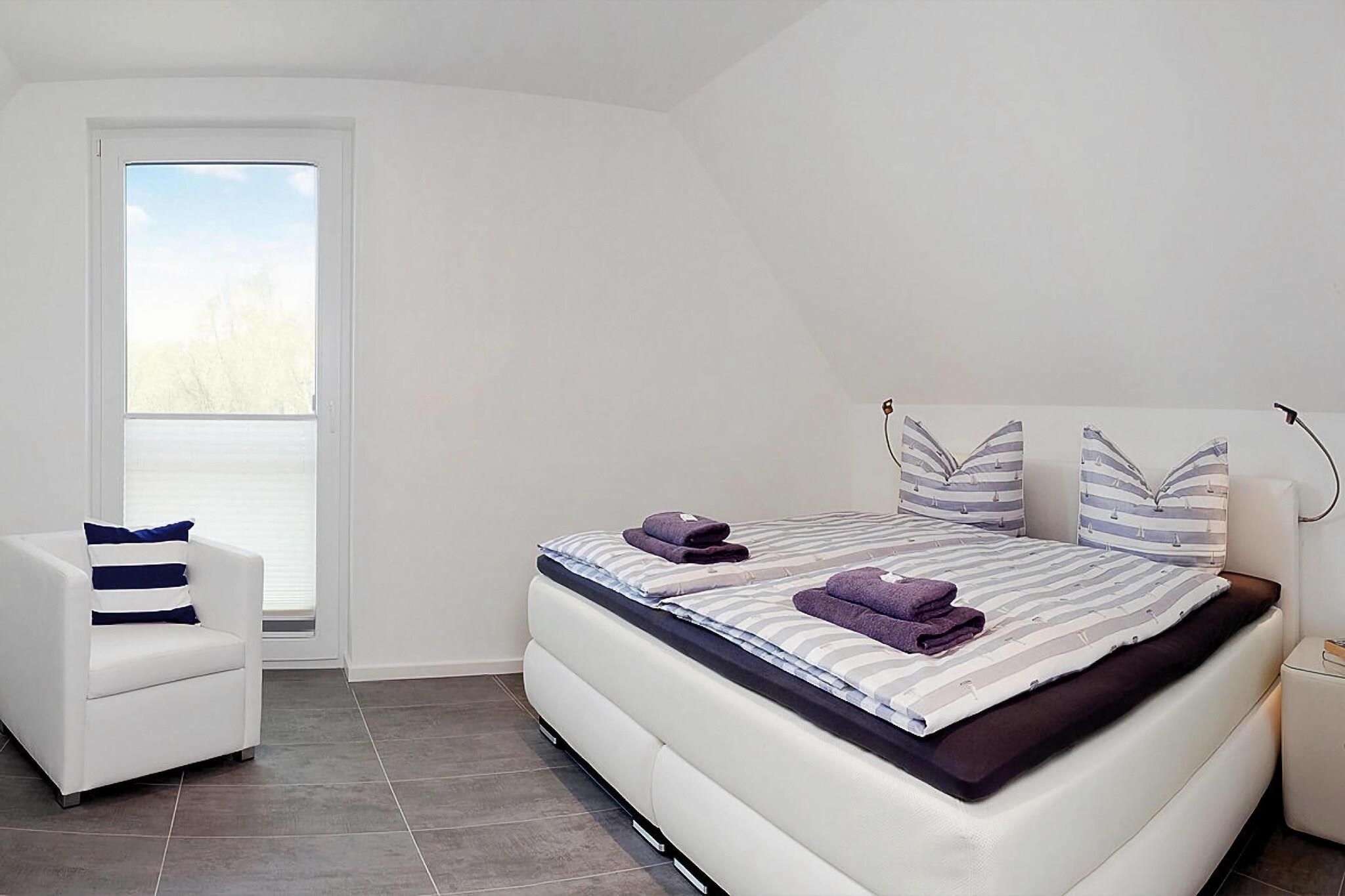Moderne indrettet feriehus med åben pejs i den nordvestlige del af den solrige ø Usedom, med en førsteklasses beliggenhed direkte ved vandet. Havet og en lille havn ligger lige uden for døren. Dit feriehus har delvis havudsigt over Peene eller lystbådehavnen. Boksmadrasser og højkvalitets køkkenmaskiner samt galleri med loungemøbler og udsigt over havnen gør ferien perfekt. I feriekomplekset finder du forskellige servicefaciliteter såsom reception, købmandskiosk og brødservice, cykel- og bådudlejning samt shuttleservice til stranden. Derudover tilbydes sejlture og der er selvfølgelig også mulighed for at leje fortøjninger til egen båd. Detaljer: Forbrugsbaserede energiomkostninger, sengelinned, håndklæder, slutrengøring, 1 flaske vand og 1 Nespresso-kapsel pr. Usedoms skønheder. For dem, der er interesseret i teknologi og historie, anbefaler vi et besøg på ubåden U-461 fra den tidligere baltiske flåde. Du kan også besøge Historisk-Teknisk Museum, som ligger i bygningerne i det tidligere militære forskningsanlæg og er kendt for sin missilkonstruktion. Derudover finder mange kunstneriske udstillinger sted på museets område Ikke egnet til personer med nedsat mobilitet