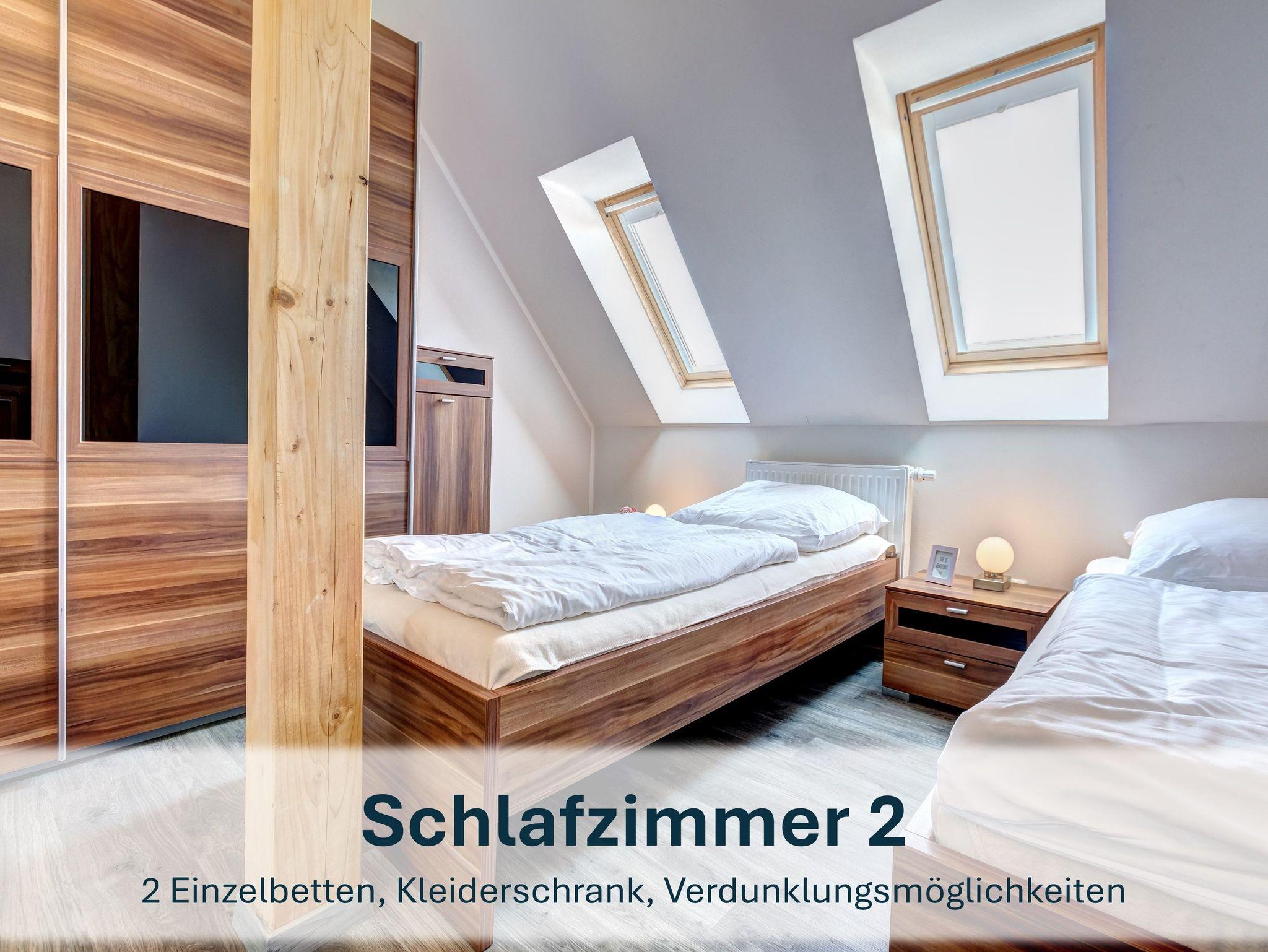 Das Nichtraucherhaus bietet im Dachgeschoss einen hellen Wohnbereich mit gemütlicher Couch, eine offene, gut ausgestattete Küche, zwei Schlafzimmer und ein modernes Badezimmer. Ideal für Paare, Familien oder Freunde, die gemeinsam entspannen möchten.