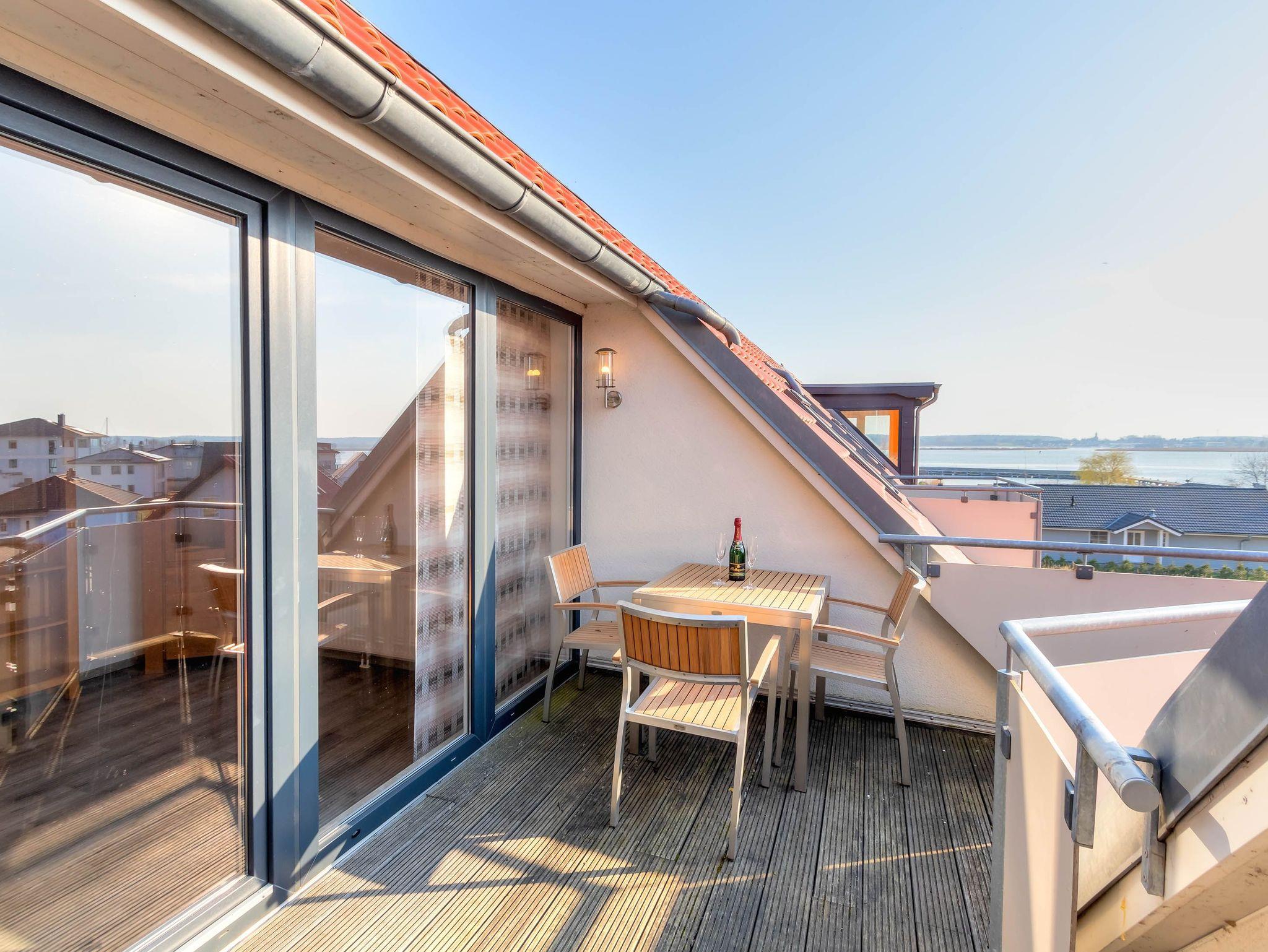 Die stilvolle Maisonettewohnung „Kajak 11“ erstreckt sich über drei Etagen und überzeugt mit durchdachter Raumaufteilung und einem charmanten Turmzimmer. Der großzügige Wohnbereich mit Schlafcouch und Flat-TV lädt zum Verweilen ein, während der möblierte Sonnenbalkon zum Entspannen im Freien einlädt.