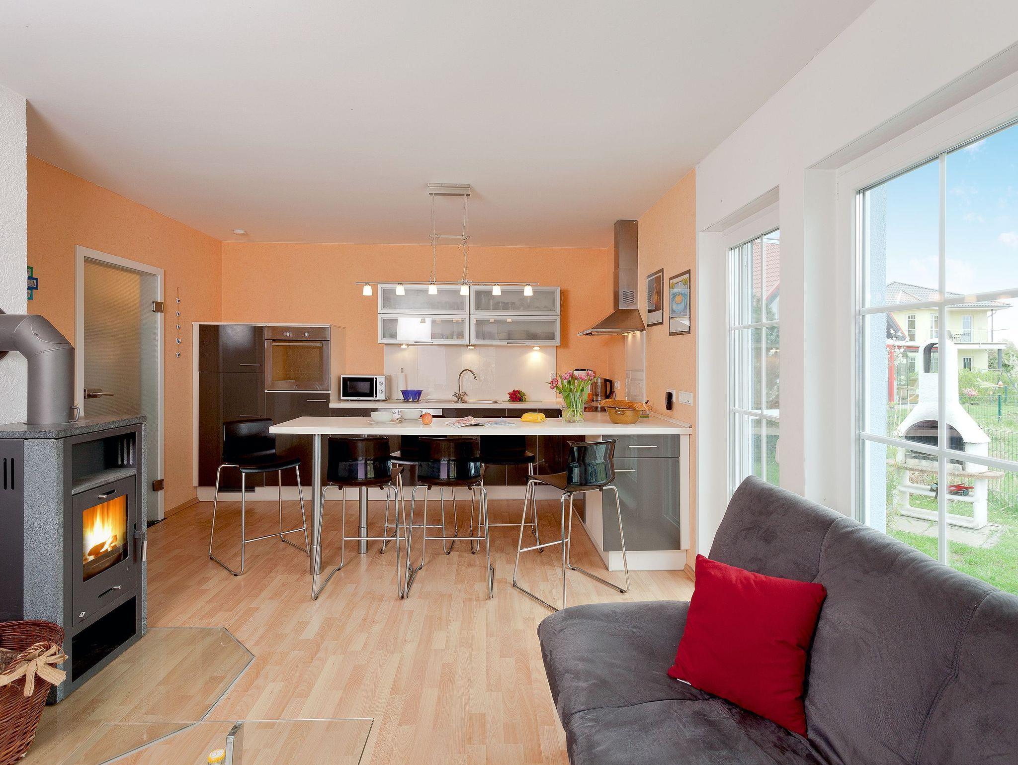 -1 Wohnzimmer mit 2 Schlafcouches 121 x 194 cm und Kaminofen