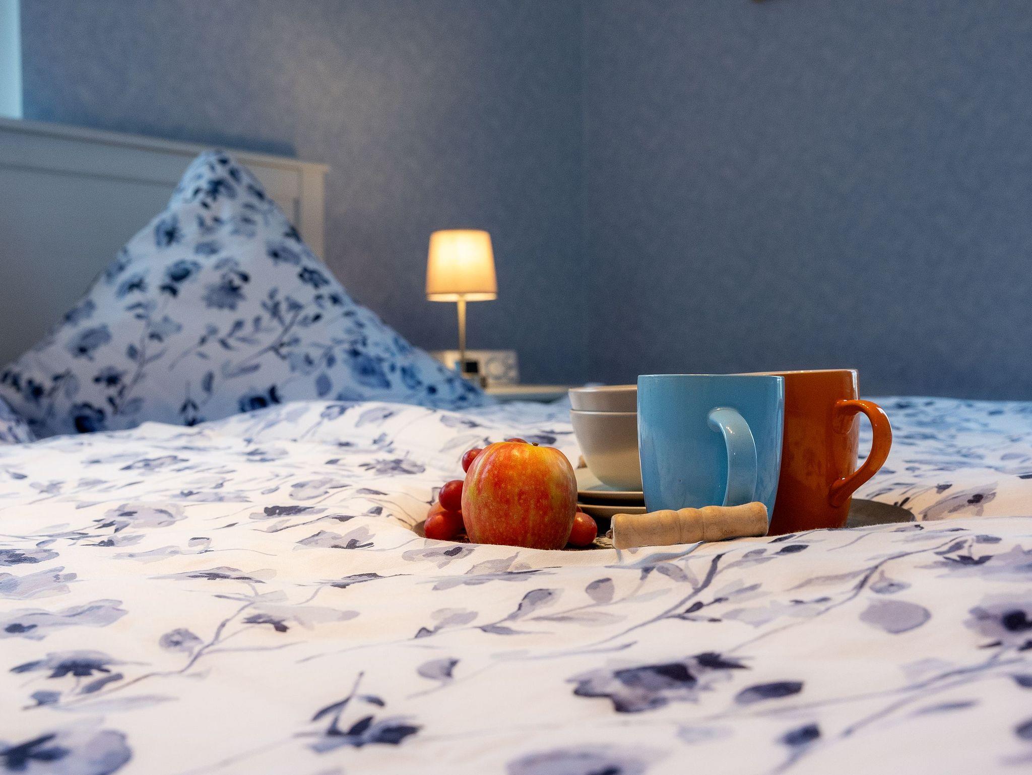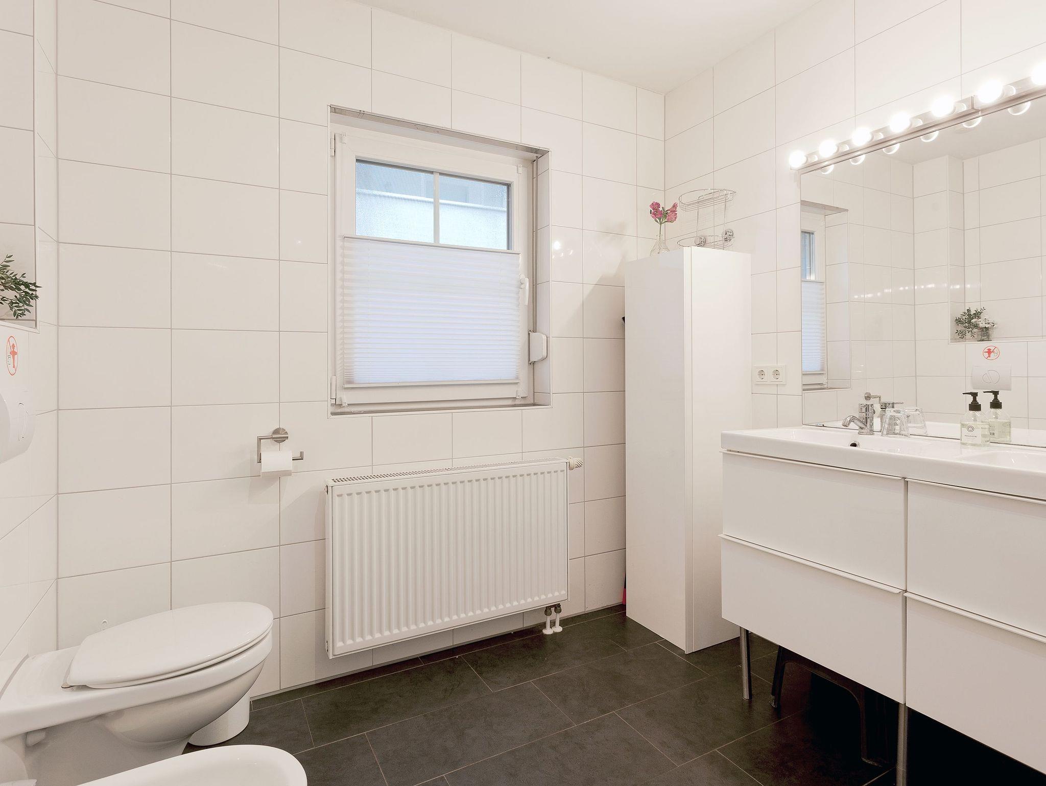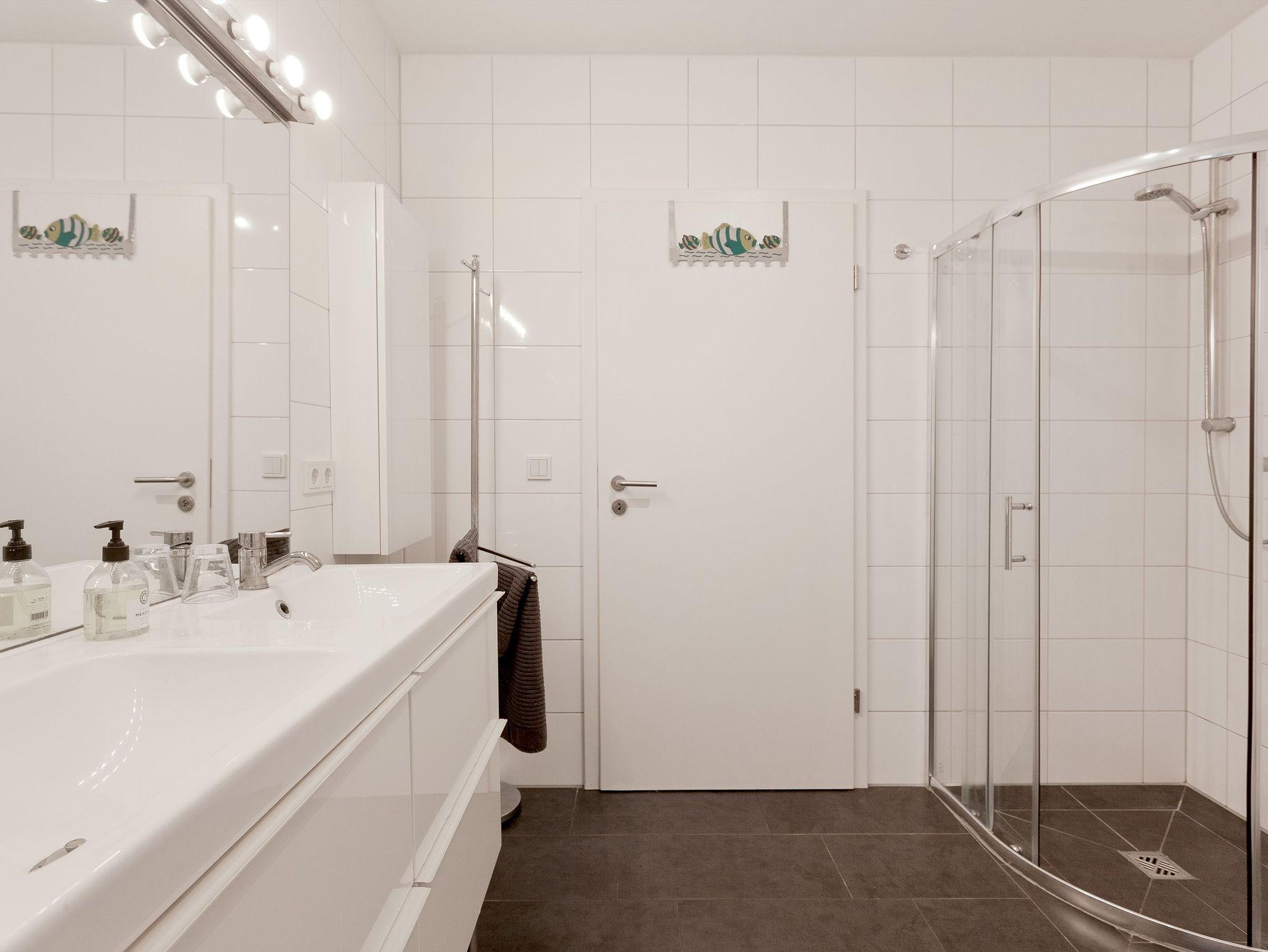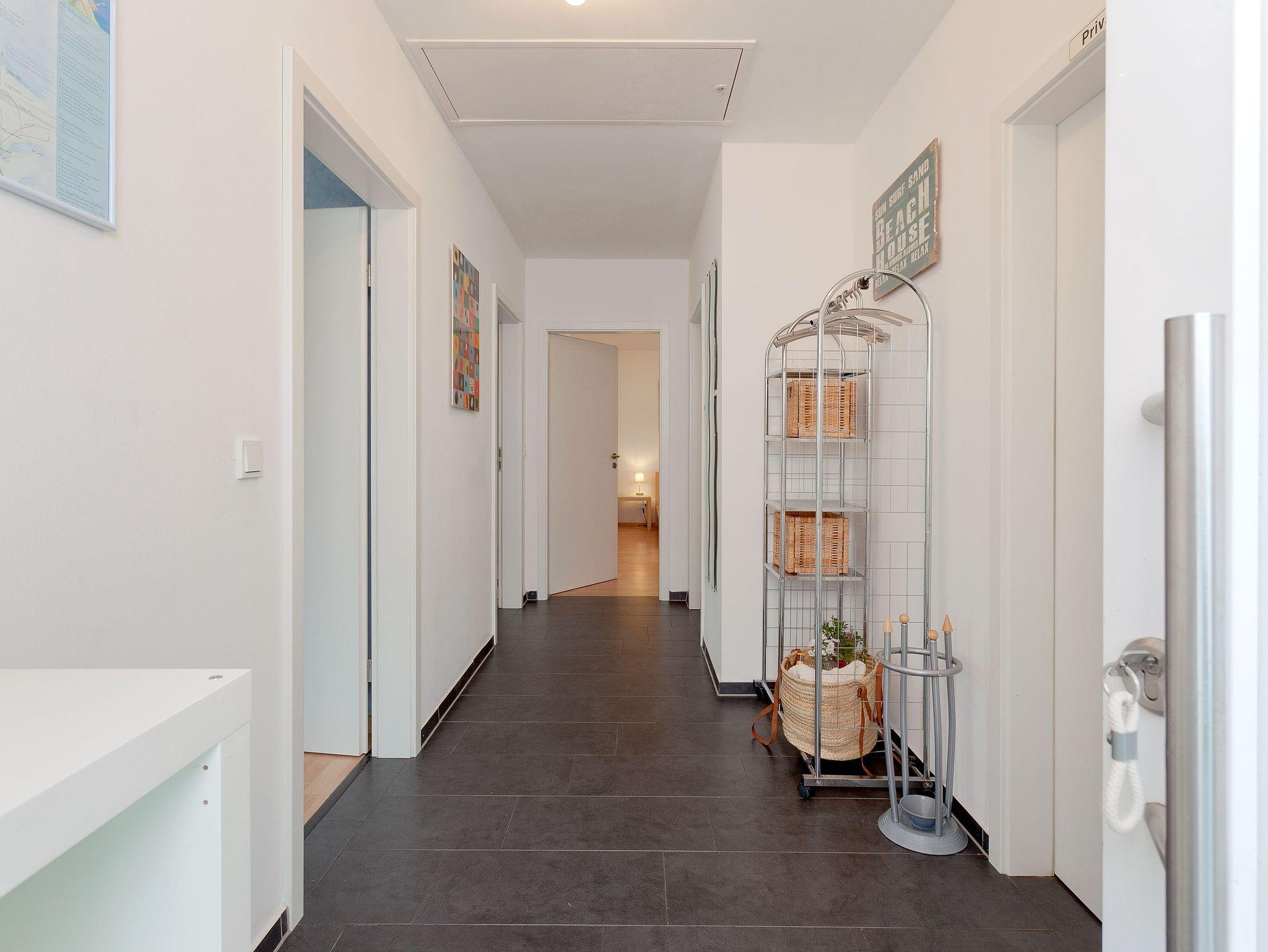 Die Räumlichkeiten sind aufwändig und sehr gemütlich gestaltet. Man gelangt über einen großzügigen Flur in zwei Schlafzimmer mit je einem Doppelbett ( 1 x 1,80 m , 1 x 1,60 m breit), einem Kleiderschrank sowie einem Fernseher. In einem Schlafzimmer befindet sich zudem ein kleiner Arbeitsplatz. Für die kleineren Gäste steht ein Kinderreisebett (ohne Bettzeug) und ein Hochstuhl zur Verfügung. Eine weitere Schlafmöglichkeit befindet sich im Wohnzimmer (zwei Schlafcouches, Liegefläche 121 x 194 cm breit).