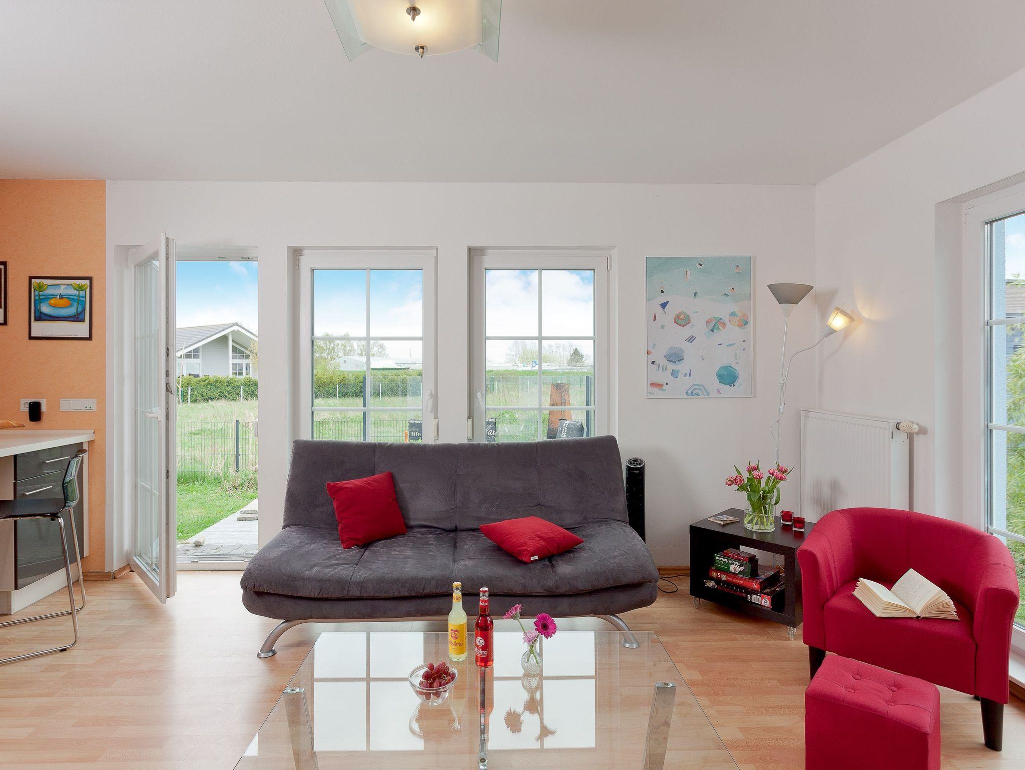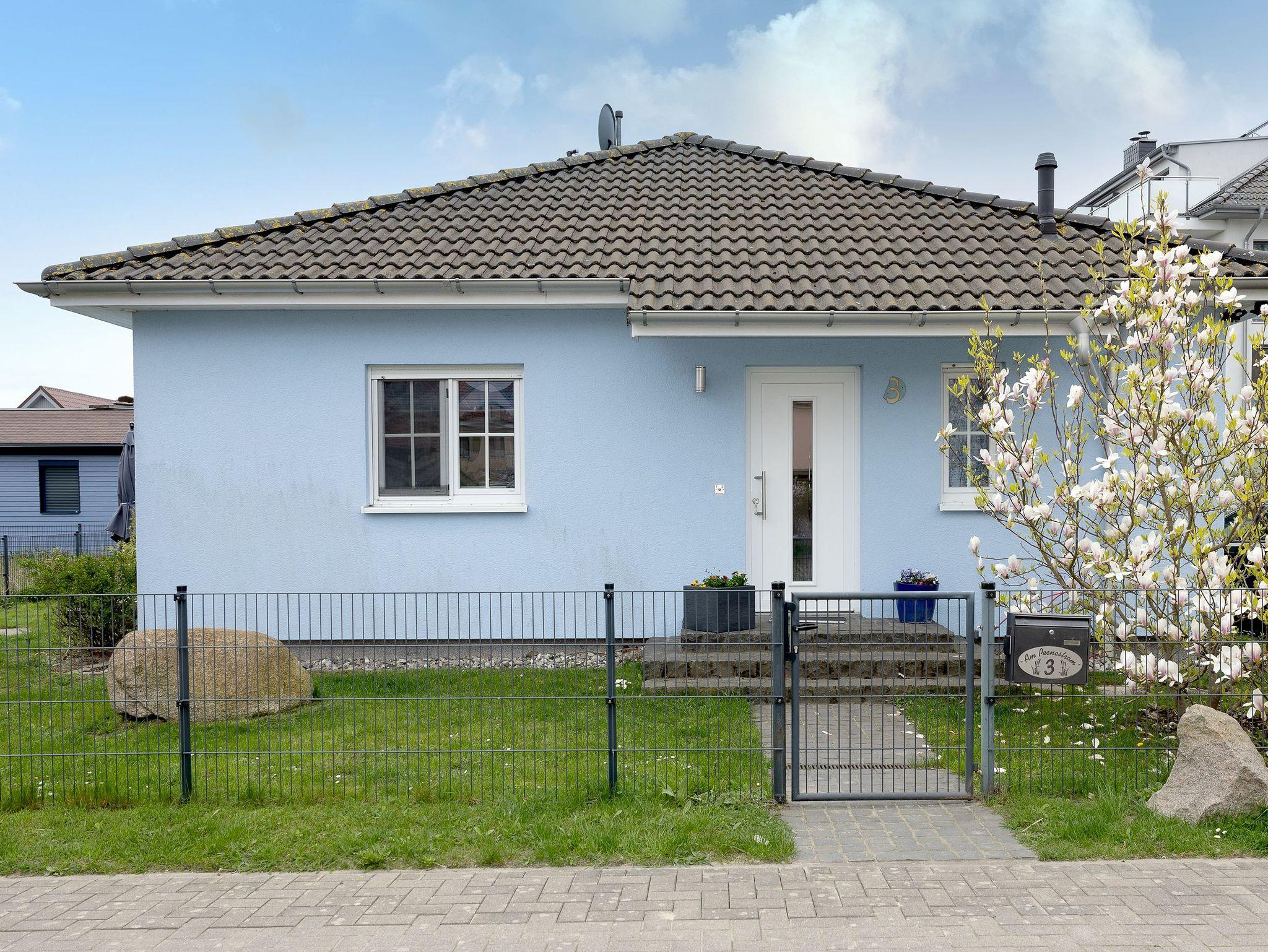 Das Ferienhaus mit nordisch blauer Fassade und 83 qm Wohnfläche ist im Jahr 2012 fertiggestellt . Es liegt in einem neu entstehenden und ständig wachsenden Ferienhausgebiet ca. 300 m vom Haupthafen und dem Seglerhafen entfernt im eingezäunten, eigenen Grundstück mit grosser Terrasse, die mit einem Windschutz umgeben ist und PKW-Stellplatz an einer Spielstraße.