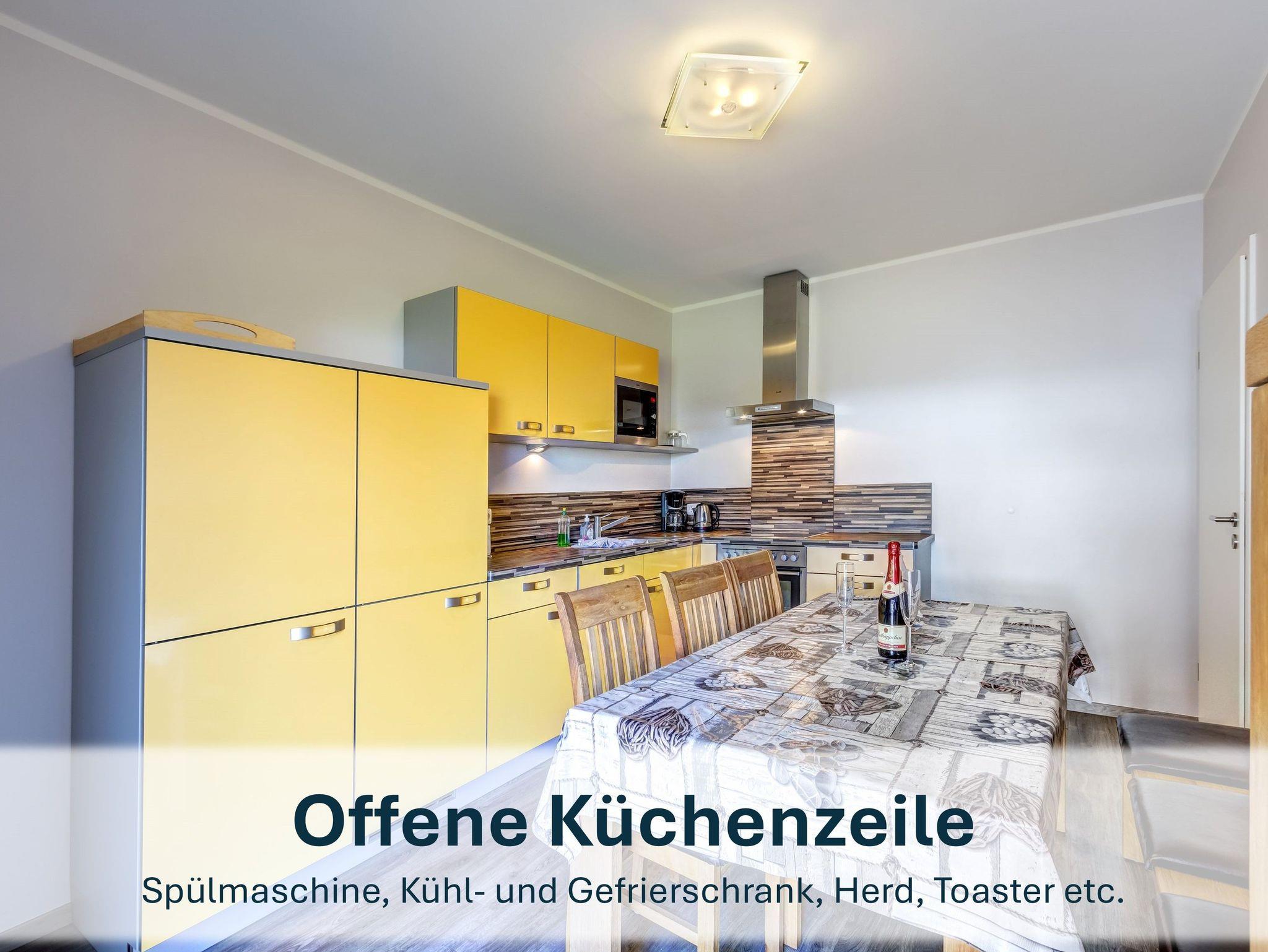 Die beiden separaten Ferienwohnungen bieten zusammen rund 188m² Wohnfläche und sind ideal für einen Urlaub mit bis zu 14 Personen, darunter zwei Kleinkinder bis 3 Jahre. Über je einen ebenerdigen, separaten Zugang gelangen Sie in die großzügig geschnittenen Wohnungen, die jeweils ein gemütliches Wohnzimmer mit Schlafcouch und Flat-TV sowie eine voll ausgestattete Küche mit Spülmaschine, Kühlschrank mit Gefrierfach, Herd, Mikrowelle und weiteren Geräten bieten.