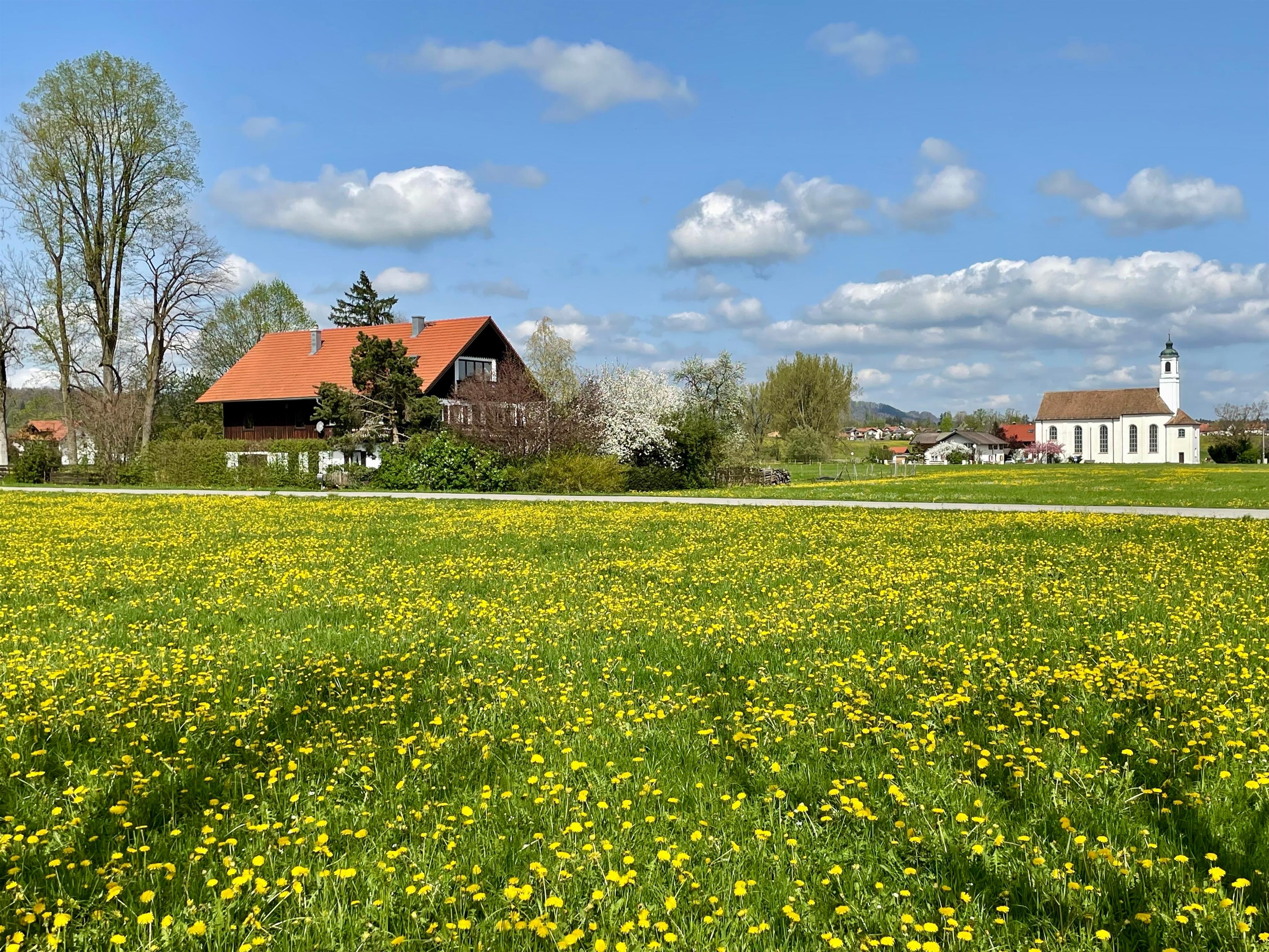 Die große Fensterfront mit Balkon bietet einen wunderbaren Ausblick auf die umliegenden Wiesen und die Wallfahrtskirche Maria Aich. Peißenberg ist ein idealer Ausgangspunkt zur Erkundung der Sehenswürdigkeiten im Pfaffenwinkel und Fünf-Seenland. Städtetouren in die Landeshauptstadt München sind durch die gute Zuganbindung
