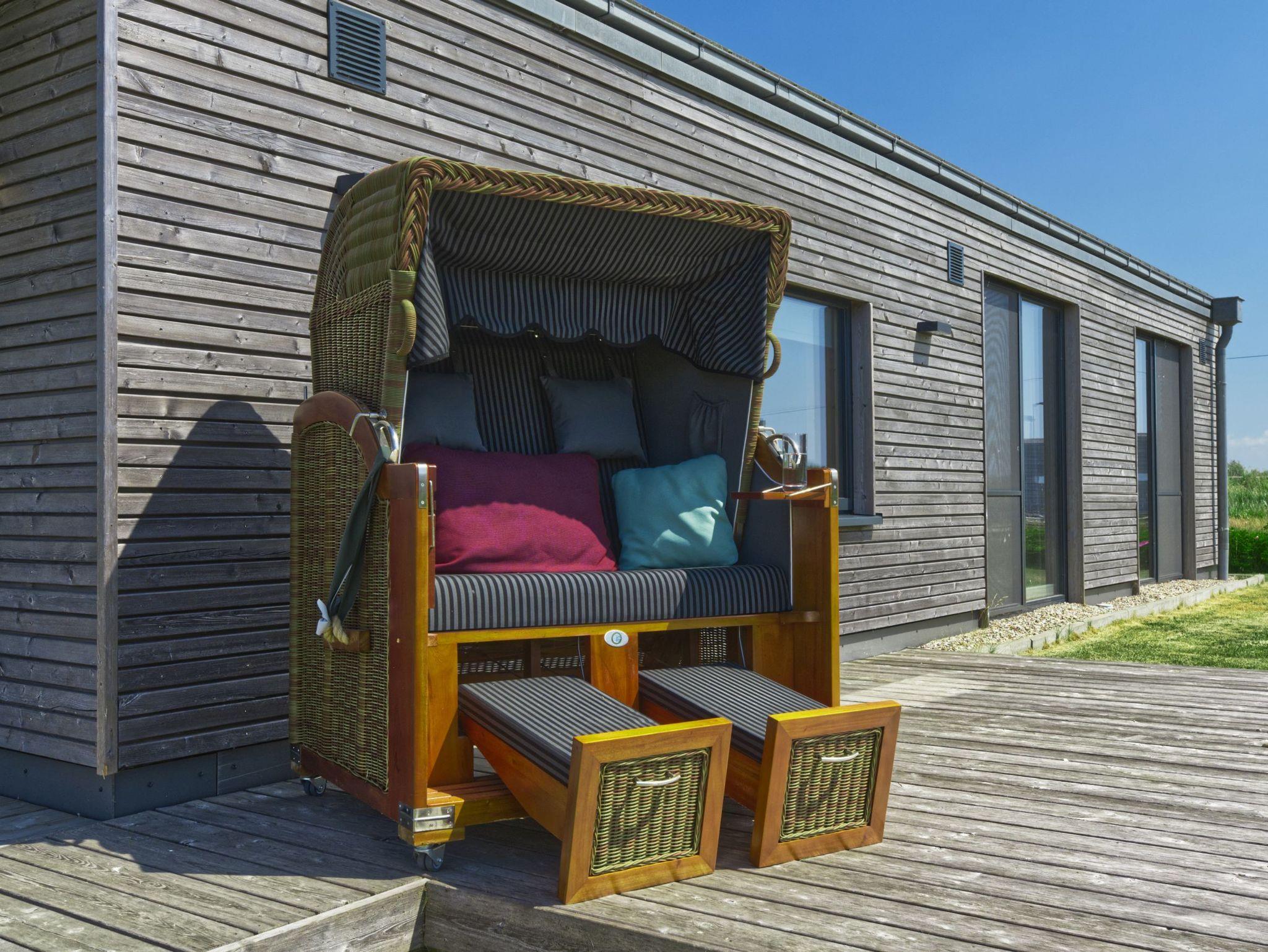 Ihre Mahlzeiten können Sie ganz in Ruhe auf einer der großen Terrassenflächen (teilweise überdacht) einnehmen. Ein Terrassentisch und 6 Stühle sind dafür vorhanden. Zwei Liegen laden auf der Sonnenterrasse zum ausgiebigen Sonnenbaden ein. Der Garten bietet viel Erholungs- und Spielfläche. Auch in den kühleren Monaten ergänzen sich Natur und Haus perfekt. Machen Sie es sich nach ausgiebigen Deichwanderungen in frischer Meeresluft einfach mit einem guten Buch in der Sauna oder auf dem Sofa gemütlich oder geben Sie sich dem hin, was hier am besten funktioniert: dem gepflegten Nichtstun!