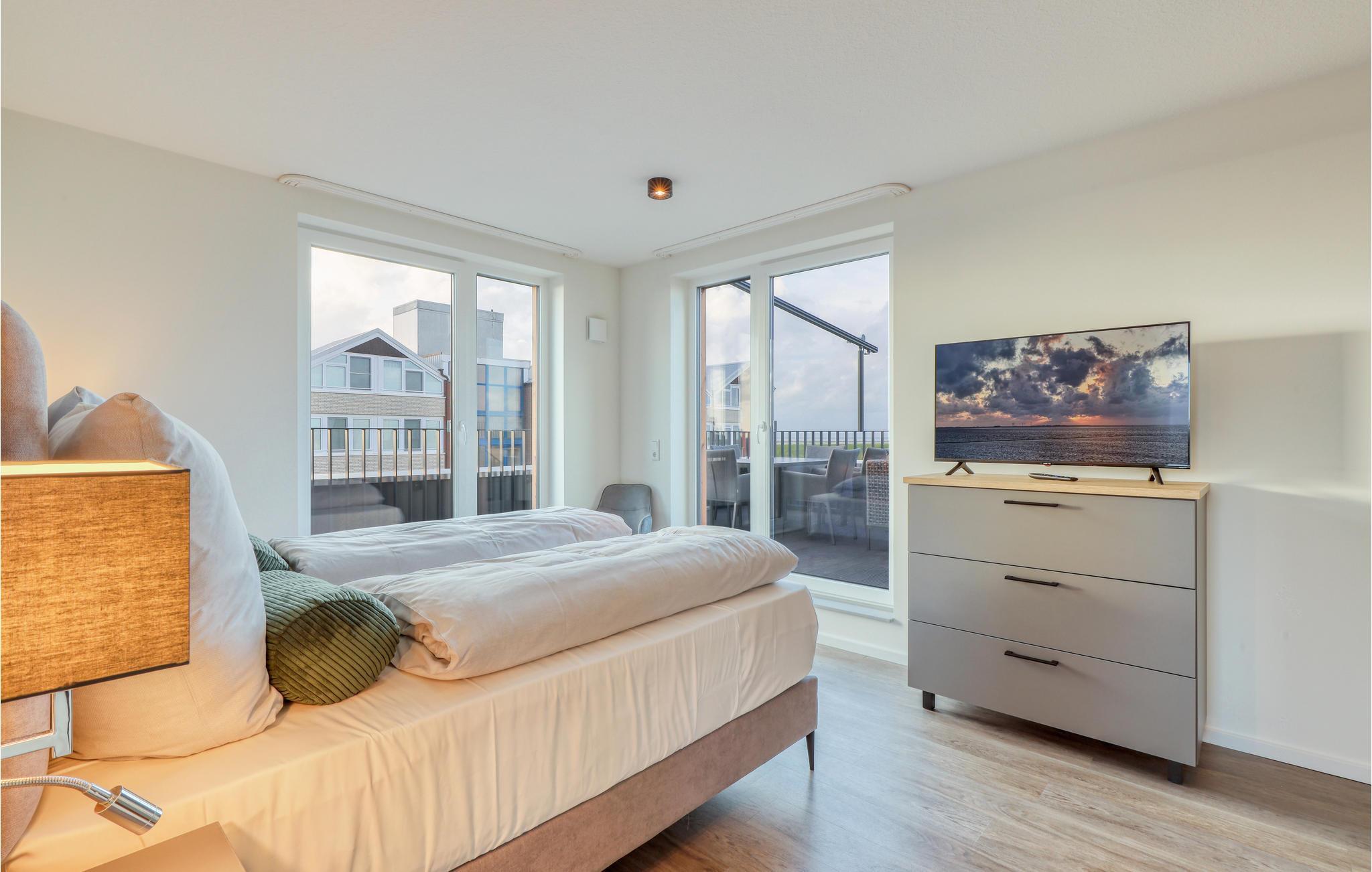 Velkommen til Nordstrand, som er en smuk halvø ved den slesvig-holstenske nordsøkyst i Vadehavet på UNESCOs verdensarvsliste. Her finder I dette moderne hus med flere ferielejligheder, der er smukt beliggende midt i den grønne natur. I bor lige bag diget ved Nordsøen, så der er lagt op til mange skønne oplevelser ved vandet. Denne moderne penthouse har et nydeligt, maritimt strejf og gode faciliteter, der gør det nemt at slappe af med det samme, I ankommer. Boligens indre får dejlige lysindfald gennem de store vinduespartier, der samtidig giver en vidunderlig udsigt til landskabet, som I kan nyde, så snart I slår øjnene op. Med sit fokus på bæredygtighed er huset det ideelle valg for jer, der værdsætter afslapning i harmoni med naturen. Start dagen med en lækker morgenmad i den hyggelige stue med åbent køkken eller på altanen, inden I tager på tur.