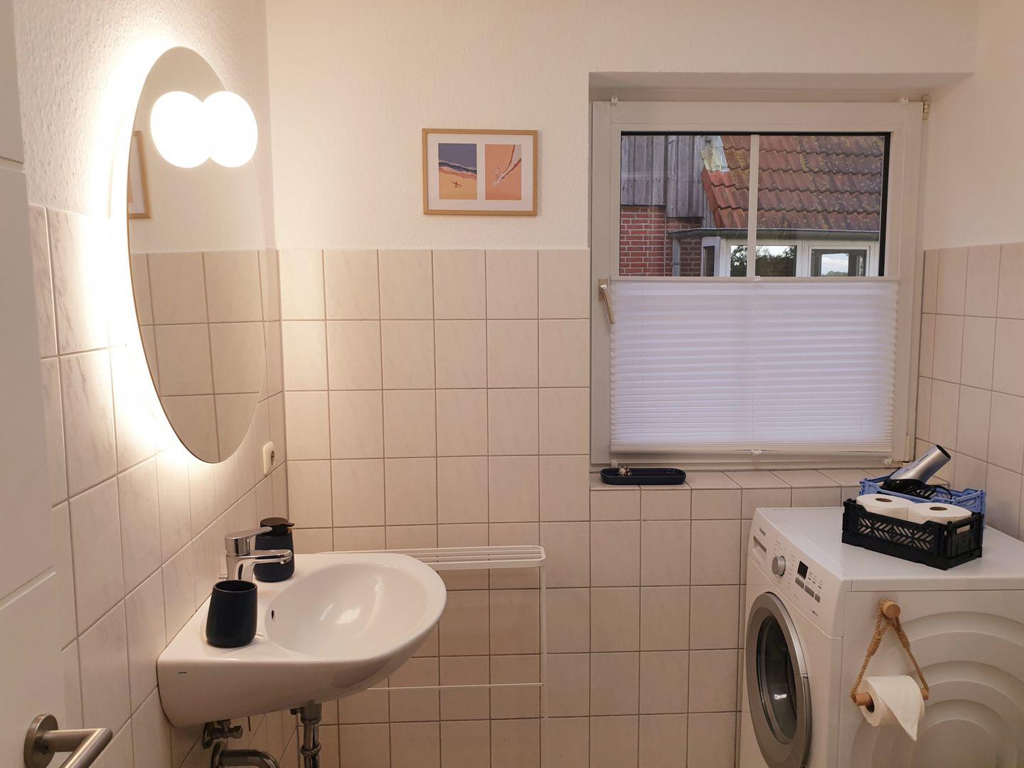 Die 56 m² große Ferienwohnung im Erdgeschoss bietet ein Schlafzimmer, ein modernes Bad und eine offene Küche zum Wohnbereich. Genießen Sie entspannte Stunden auf der überdachten Terrasse mit Gartenblick. Die Unterkunft verfügt über WLAN, Waschmaschine, Privatparkplatz, Fußbodenheizung und kinderfreundliche Ausstattung. Der Strand ist 4 km entfernt, Einkaufsmöglichkeiten erreichen Sie in 500 m.
