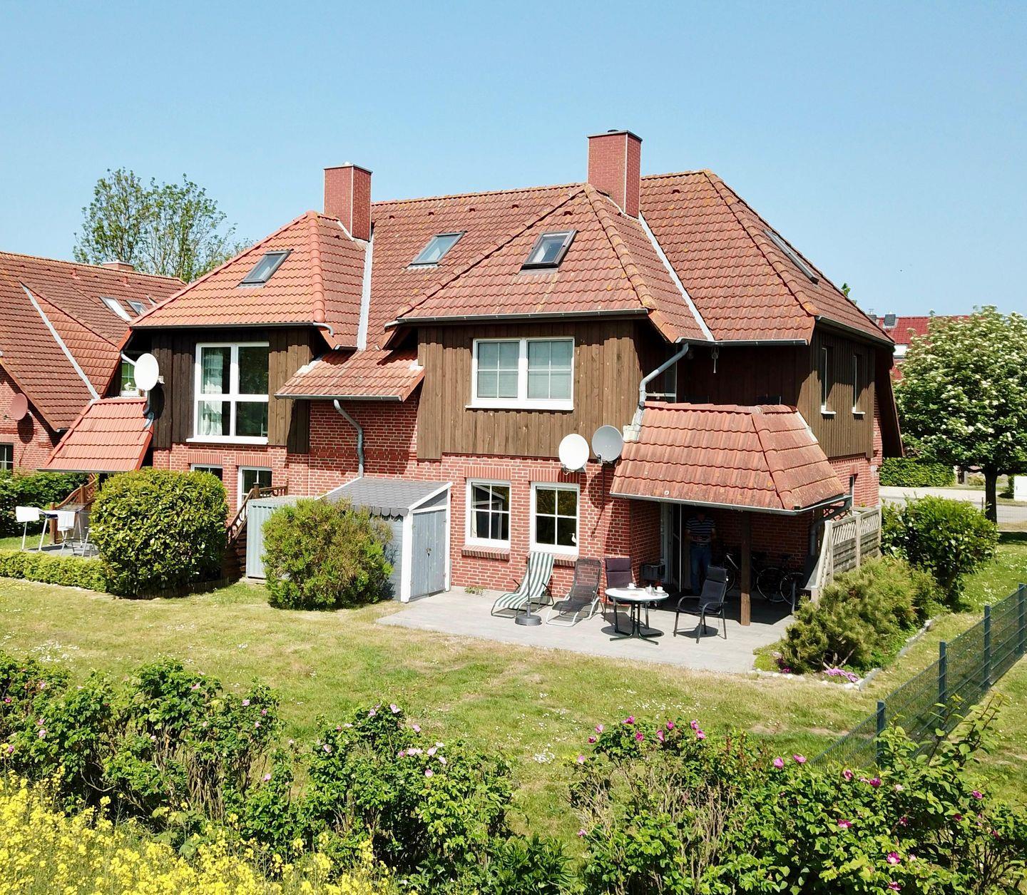 Die geschützte Terrasse in Südlage mit Gartenmöbeln, Liege und Holzkohlegrill lädt zum Verweilen ein. Genießen Sie den Ausblick. Ein Pkw-Stellplatz befindet sich direkt vor dem Hauseingang. Im Gartenhaus gibt es eine Unterstellmöglichkeit für Fahrräder oder Surfmaterial.