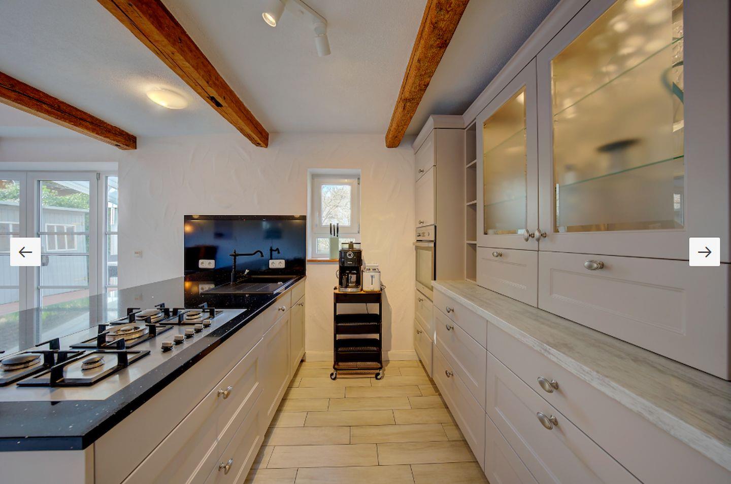 Mit den Sonos Boxen können Sie Ihren Lieblingssoundtrack genießen. In der offen gestalteten Küche finden Sie alles, was Sie für die Zubereitung Ihres Lieblingsgerichts brauchen – von Gasherd, Mikrowelle bis hin zur Kaffeemaschine ist alles vorhanden.
