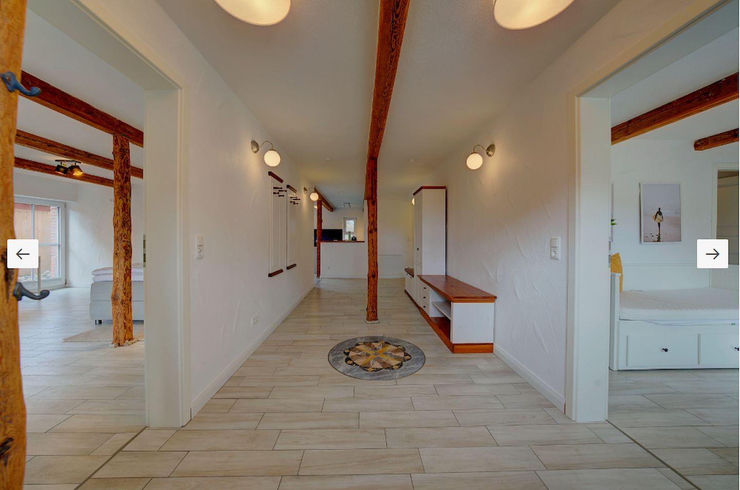 Das Idyllische Ferienhaus in Petersdorf bietet auf 150 m² Platz für bis zu sechs Personen. Es verfügt über eine moderne, offene Küche, Badezimmer, zwei Schlafzimmer sowie ein großzügiges Wohnzimmer mit WLAN und TV und einer weiteren Schlafmöglichkeit. Die große Terrasse mit Garten, Gartenmöbeln und Grill lädt zum Entspannen ein. Einkaufsmöglichkeiten sind in der Nähe, der Strand ist etwa drei Kilometer entfernt.
