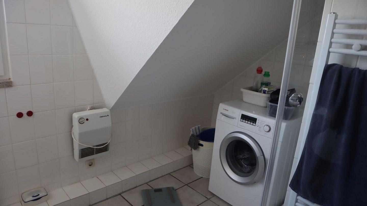 Elternschlafzimmer mit Doppelbett, Kleiderschrank, Kinderzimmer mit 1 Bett, Duschbad mit Waschmaschine und elektrischem Handtuchhalter.