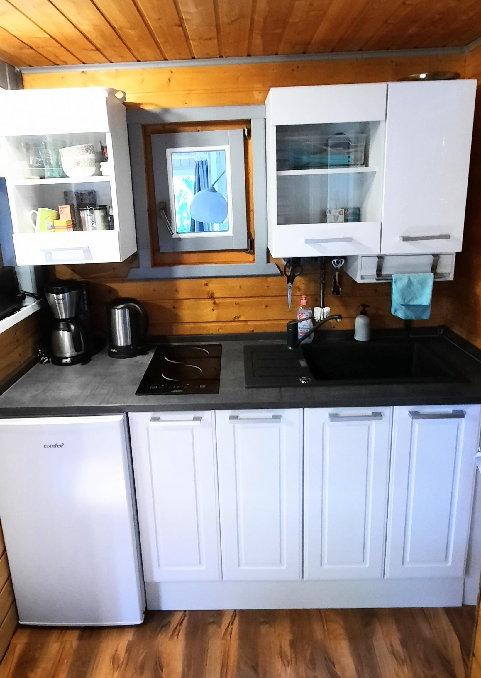 Zum Frühstücken und Kochen, steht alles in unserer großzügigen Kochnische, mit Mikrowelle bereit.