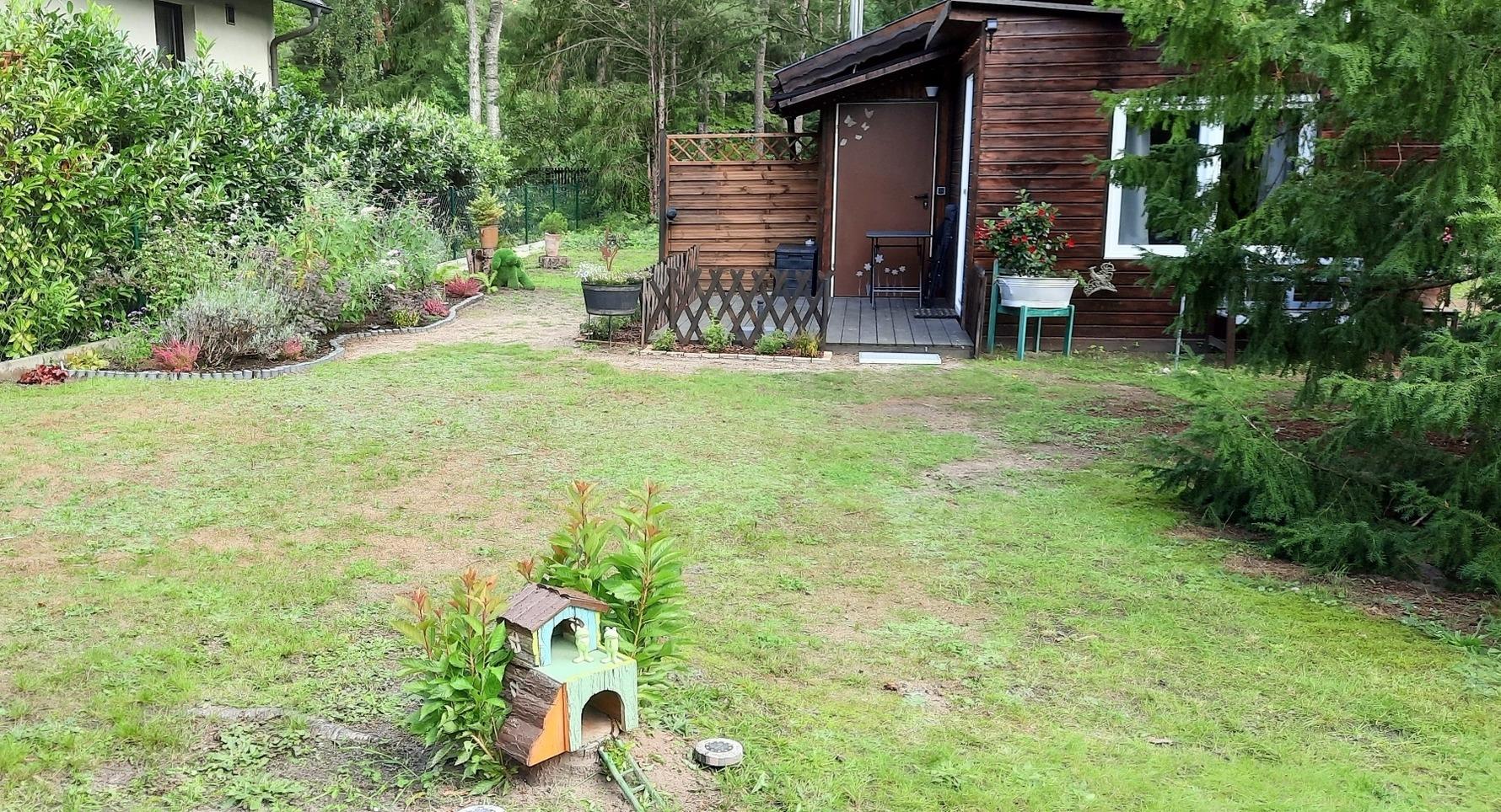 Unser Bungalow befindet sich auf unserem großen Grundstück, in schöner, ruhiger Lage, in Petershagen, in direkter Waldnähe.