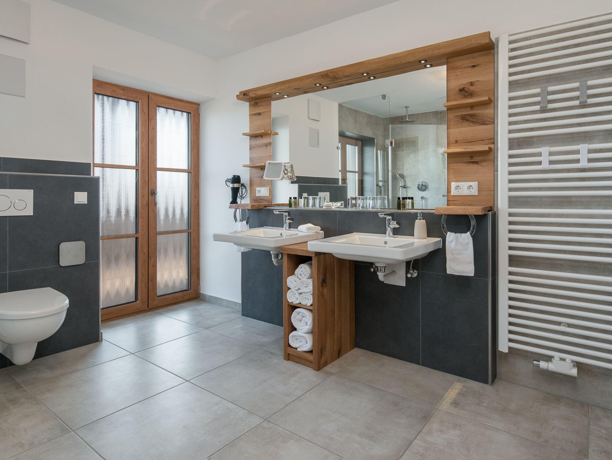 Ferienwohnung im 1. Stock ( Aufzug) mit moderner, exlusiver Eichenholzeinrichtung und großem Balkon (24 qm).