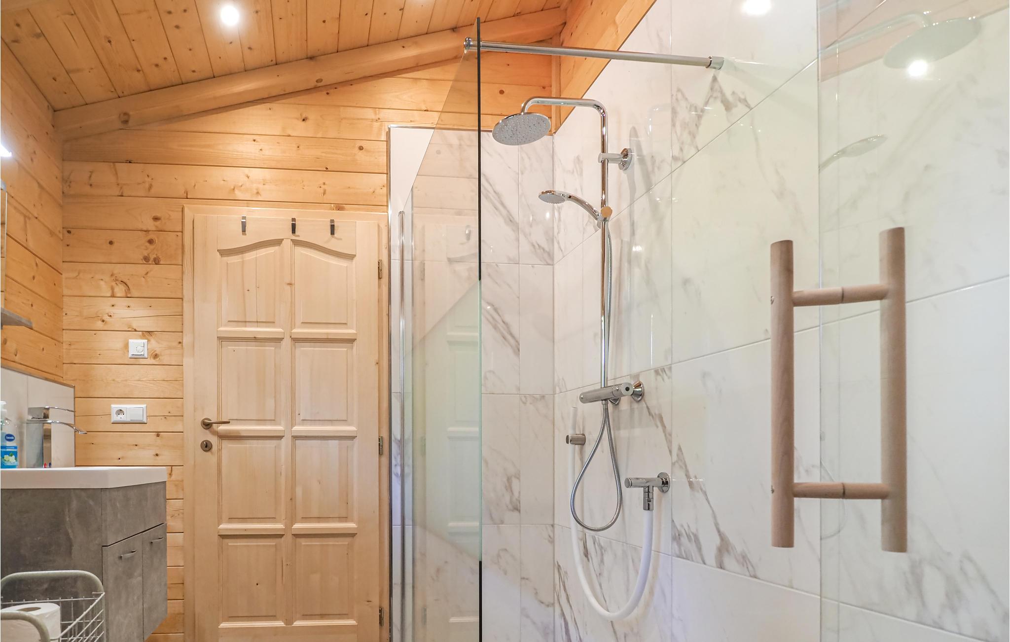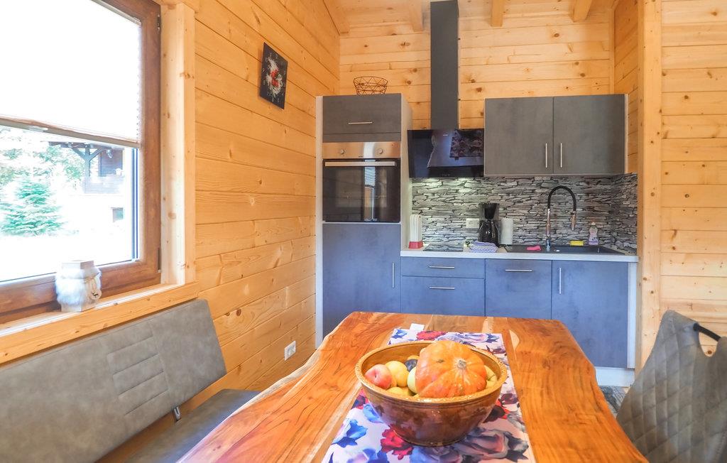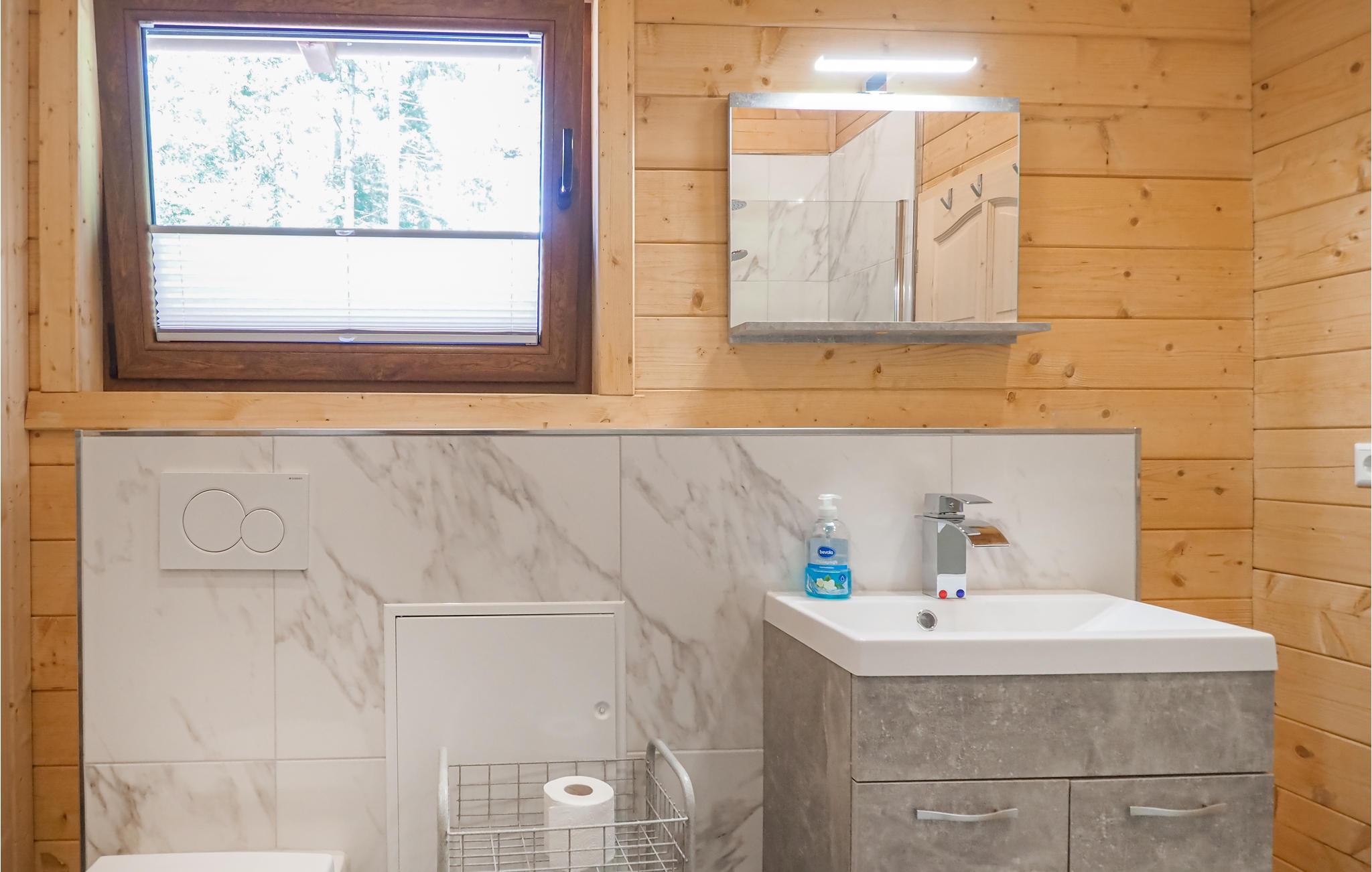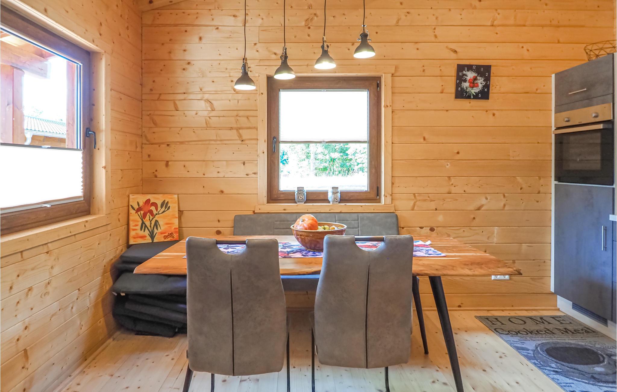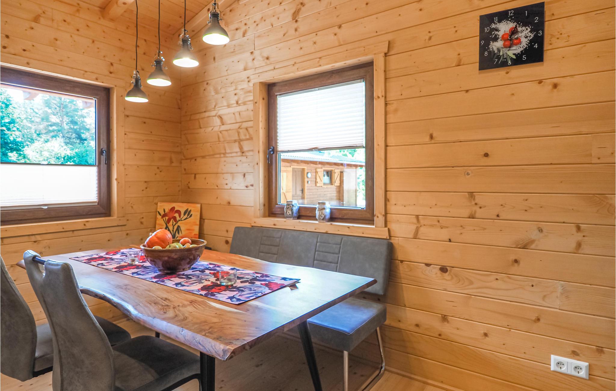 Det attraktive træhus venter på jer i en fantastisk beliggenhed omgivet af den vidunderlige natur i regionen Gräfensteiner Land. De moderne møbler og komfortable møbler parret med træet på vægge, gulve og lofter giver det dens særlige charme. Nyd en vidunderlig udsigt over det fri, mens I spiser sammen og glæd jer til hyggelige filmaftener i sofaen. Efter en aktiv dag i naturen tilbyder saunaen beroligende afslapning.