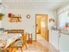 Stueetage: (Indgang , gang, Stue(Fjernsyn(kabel), sofahjørne), spisestue(spisebord), åbent køkken(radio, elkedel, brødrister, komfur(elektrisk), kaffemaskine(kaffetragt), mikrobølgeovn, køleskab(+ fryser)), soveværelse(køjeseng), badeværelse(bruser, håndvask, toilet)) varme(elektrisk, central), terrasse(privat, 10 m2), have(deles med ejer, 100 m2), havemøbler, grill, parkering, liggestole, Parasol