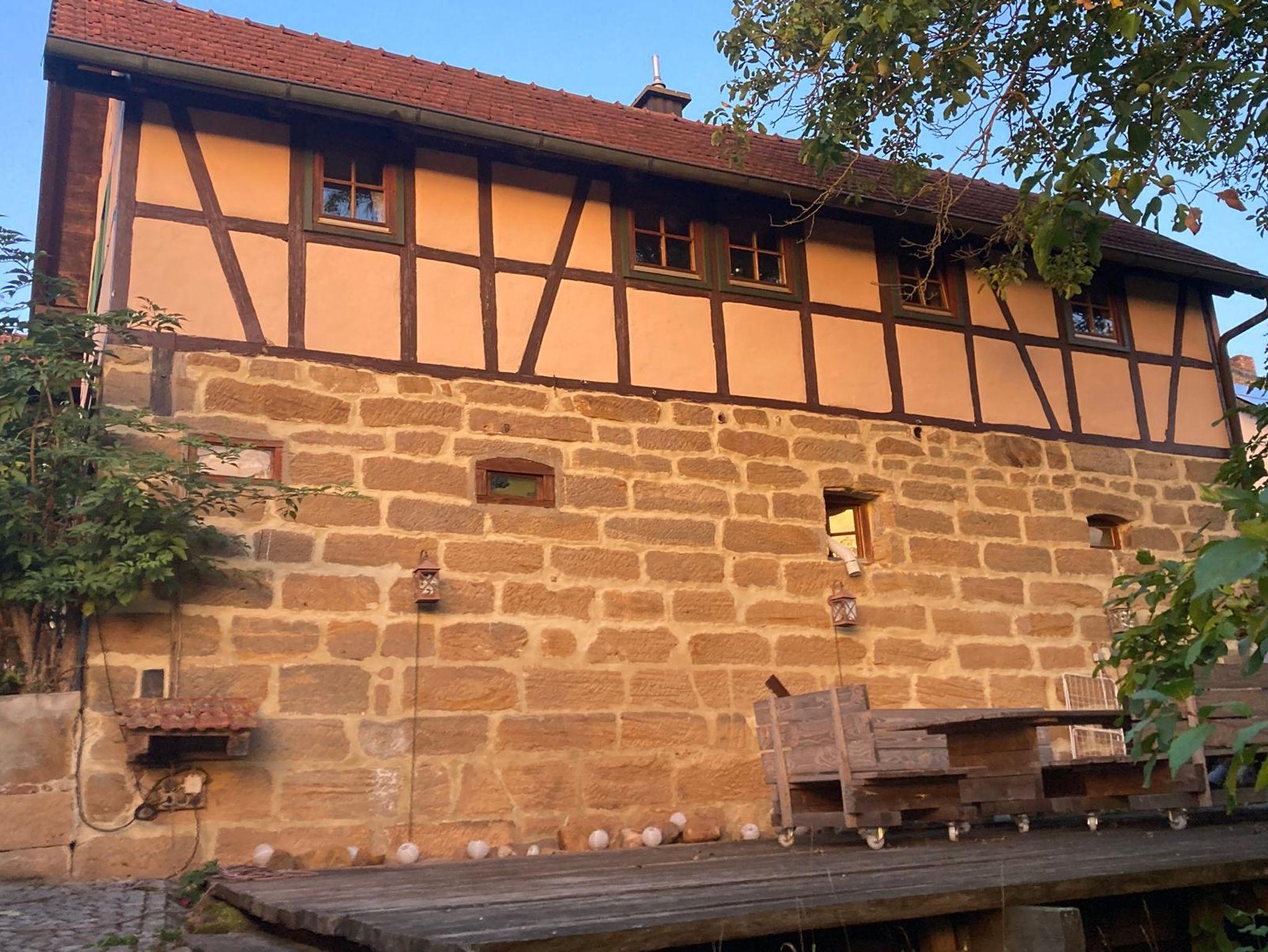 Der alte Dreiseithof gehört zum historischen Kern des kleinen Ortes Rabelsdorf, der sich wunderschön in eine Senke unterhalb von Burg Altenstein inmitten einer idyllischen, abwechslungsreichen Landschaft schmiegt. Der Hang ist als historisches Obstanbaugebiet weithin bekannt. Zur Zeit der Kirschenblüte strahlen und duften der ganze Berg und die unzähligen Obstbäume in und um Rabelsdorf (auch auf unserer Streuobstwiese).