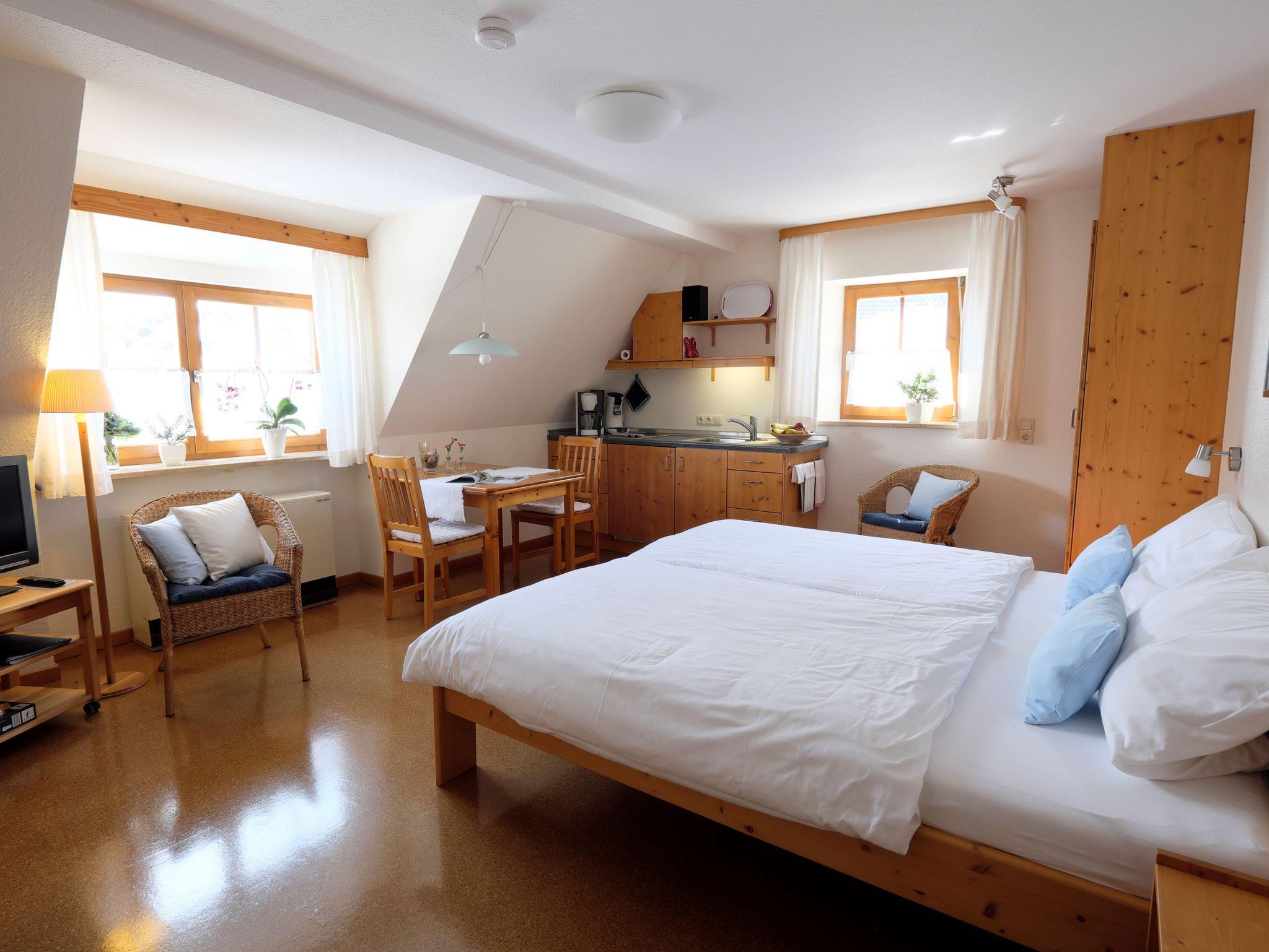 Unsere Ferienwohnung**** (klassifiziert nach den Kriterien des Deutschen Tourismusverbands) und unser Doppelzimmer sind liebevoll und sehr gut ausgestattet und bieten Ihnen Raum, einen entspannenden und erholsamen Urlaub zu verbringen.