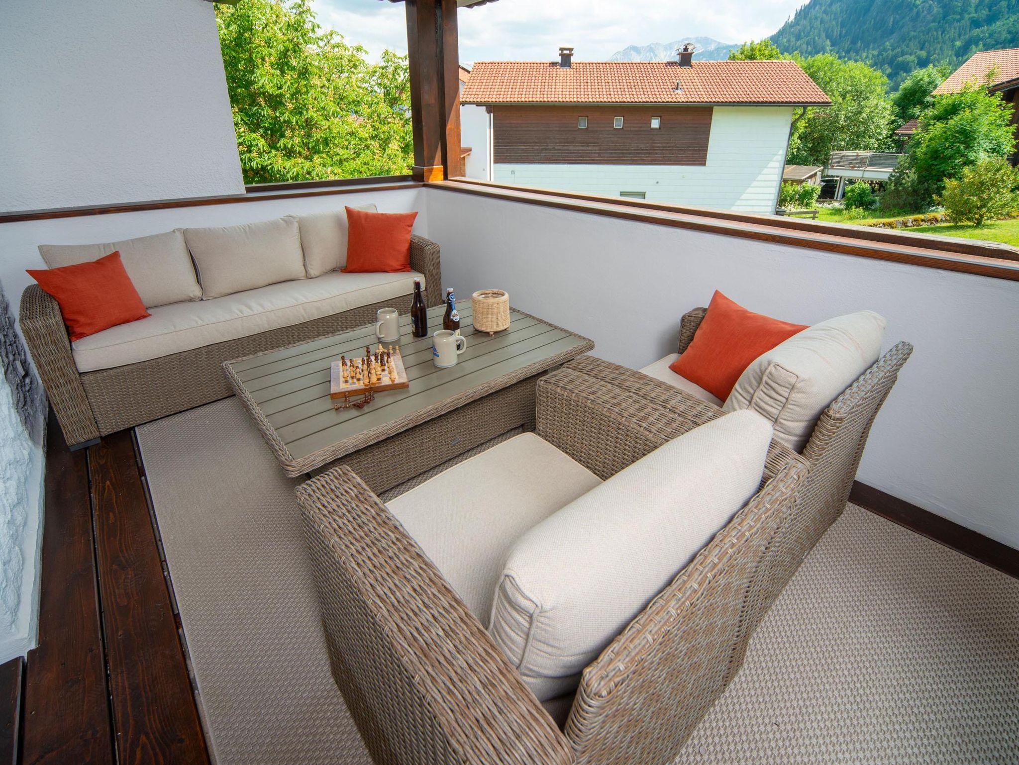 Ferienwohnung Riesendoggy Allgäu Feeling pur 3 Balkone für den besten Blick Die große, helle Ferienwohnung Riesendoogy begeistern mit ihren 3 großen Balkonen, von denen Sie einen atemberaubenden Blick haben. Der ca. 20 m² große Südbalkon/Loggia lädt mit seinem Essplatz und der Relax-Lounge zum verweilen ein.