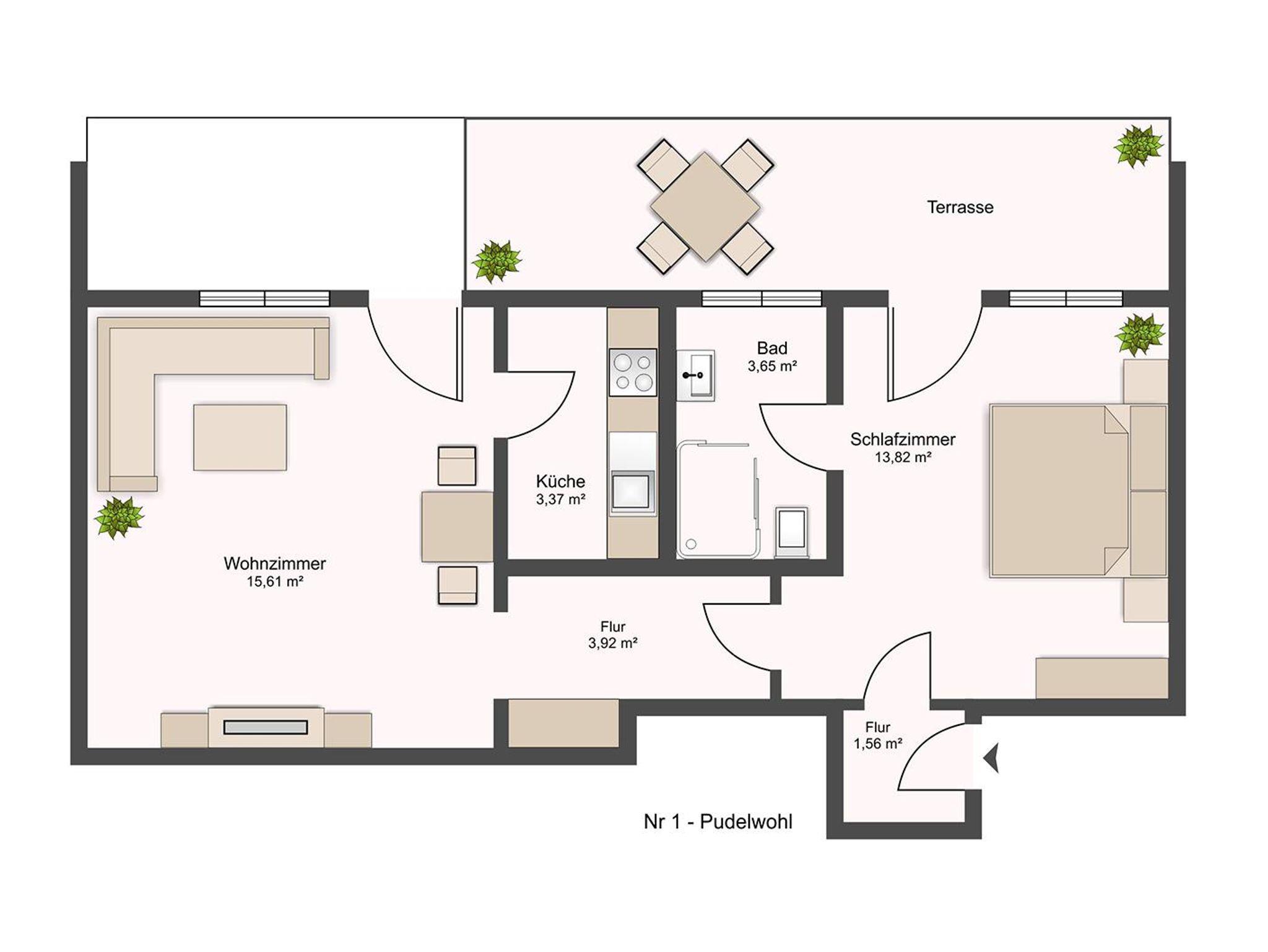 Ferienwohnung Pudelwohl Auszeit vom Alltag Gönnen Sie sich eine Auszeit vom Alltag in unserer gemütlichen Ferienwohnung, die keine Wünsche offen lässt. Genießen Sie den Ausblick ins Grüne, sowie auf die Westterrasse und den Komfort in Ihrem Urlaubszuhause.