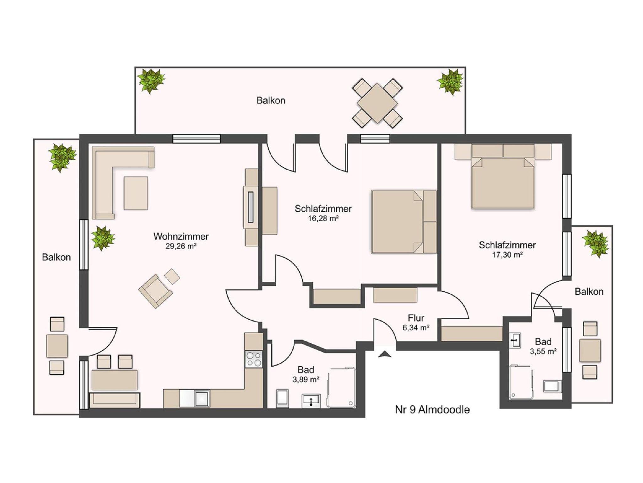 • 2 Schlafzimmer, jeweils mit Balkon
