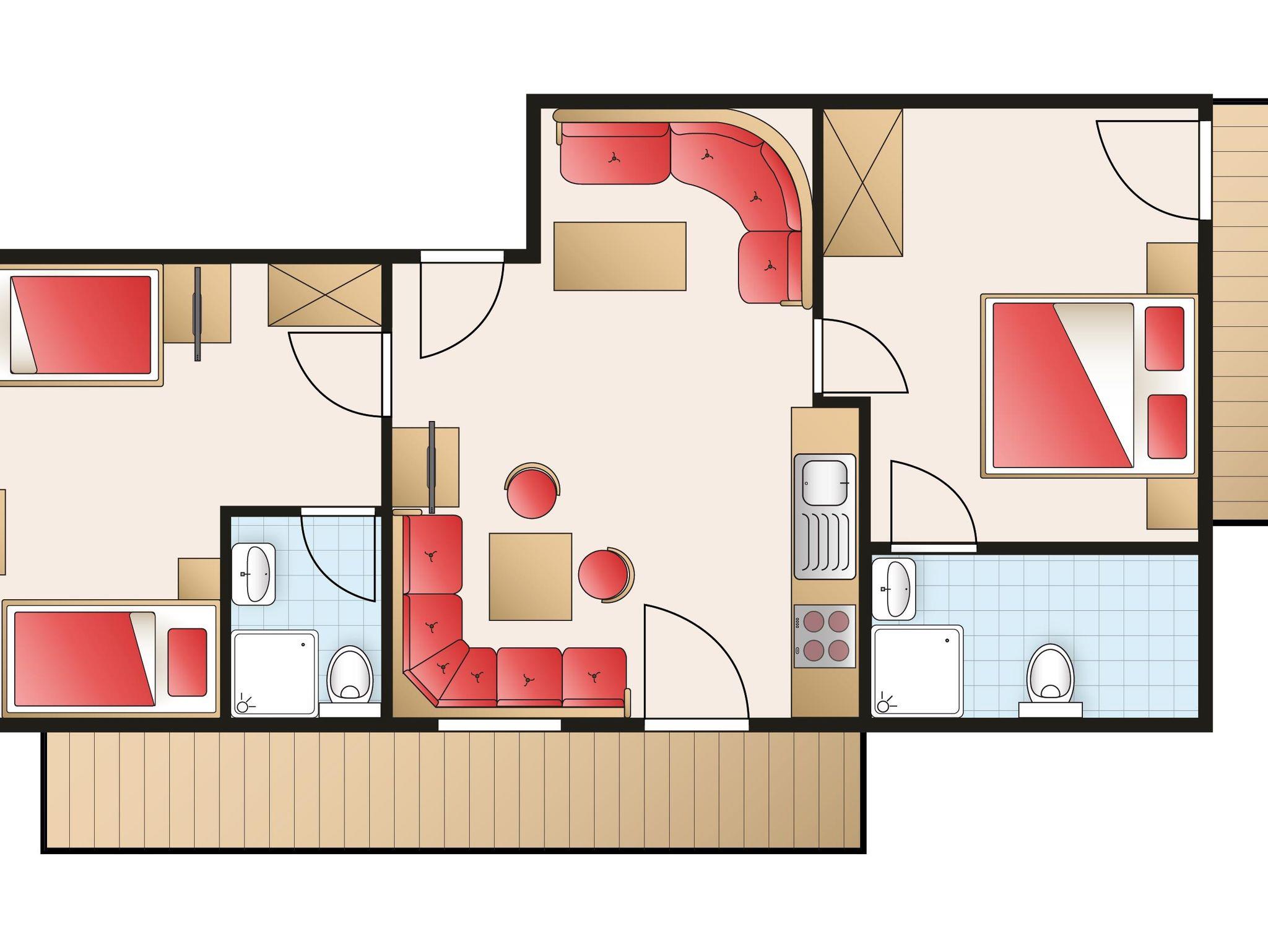 2 separate Schlafzimmer jeweils mit Dusche/WC, teils Balkon und SAT-TV;