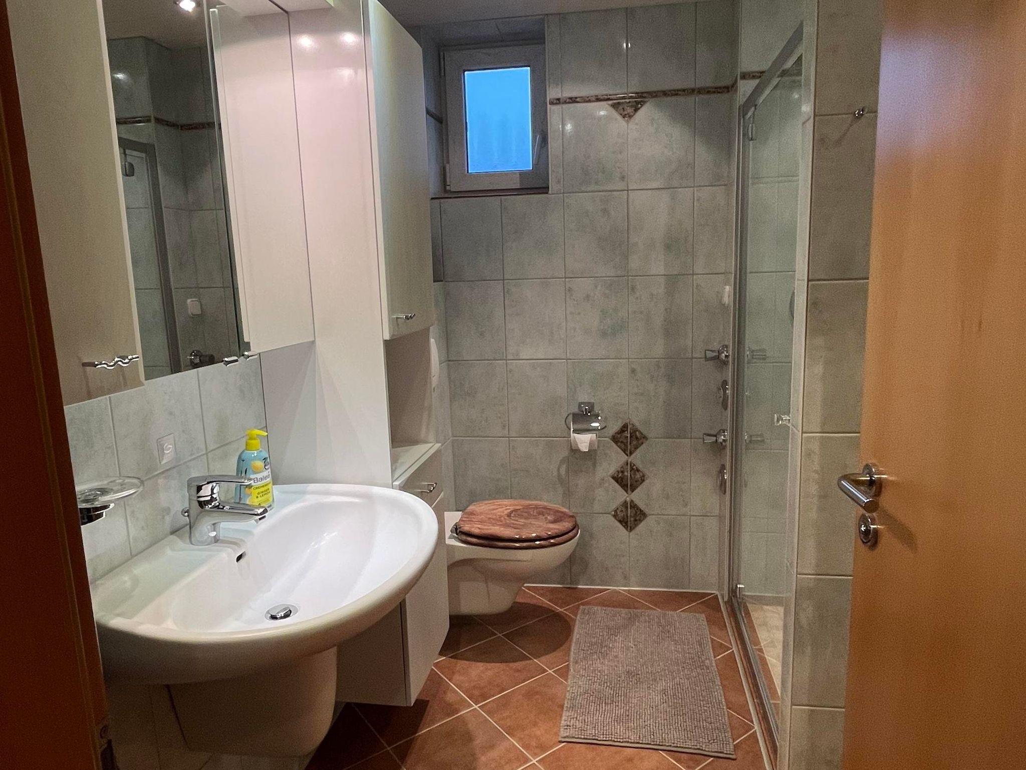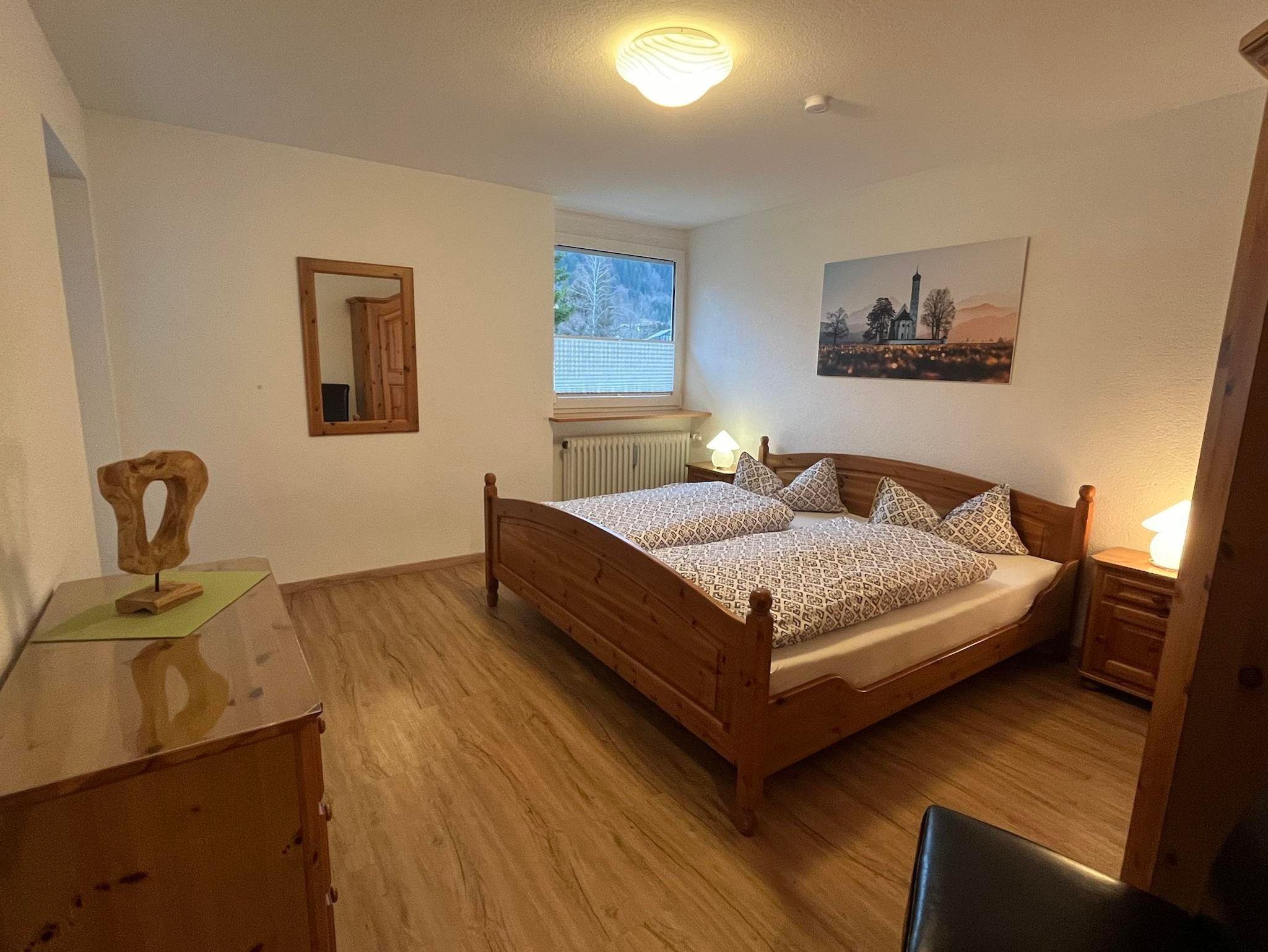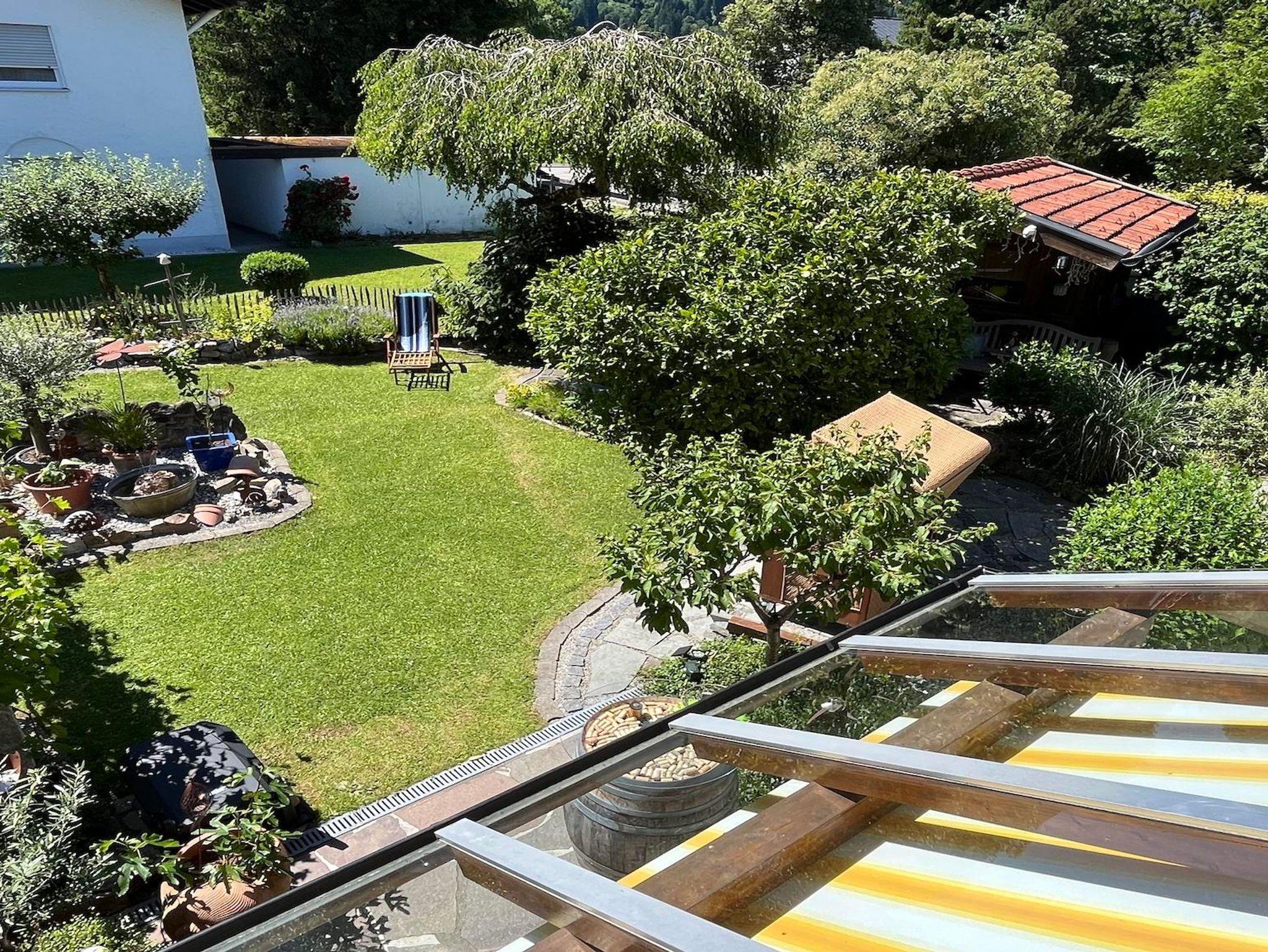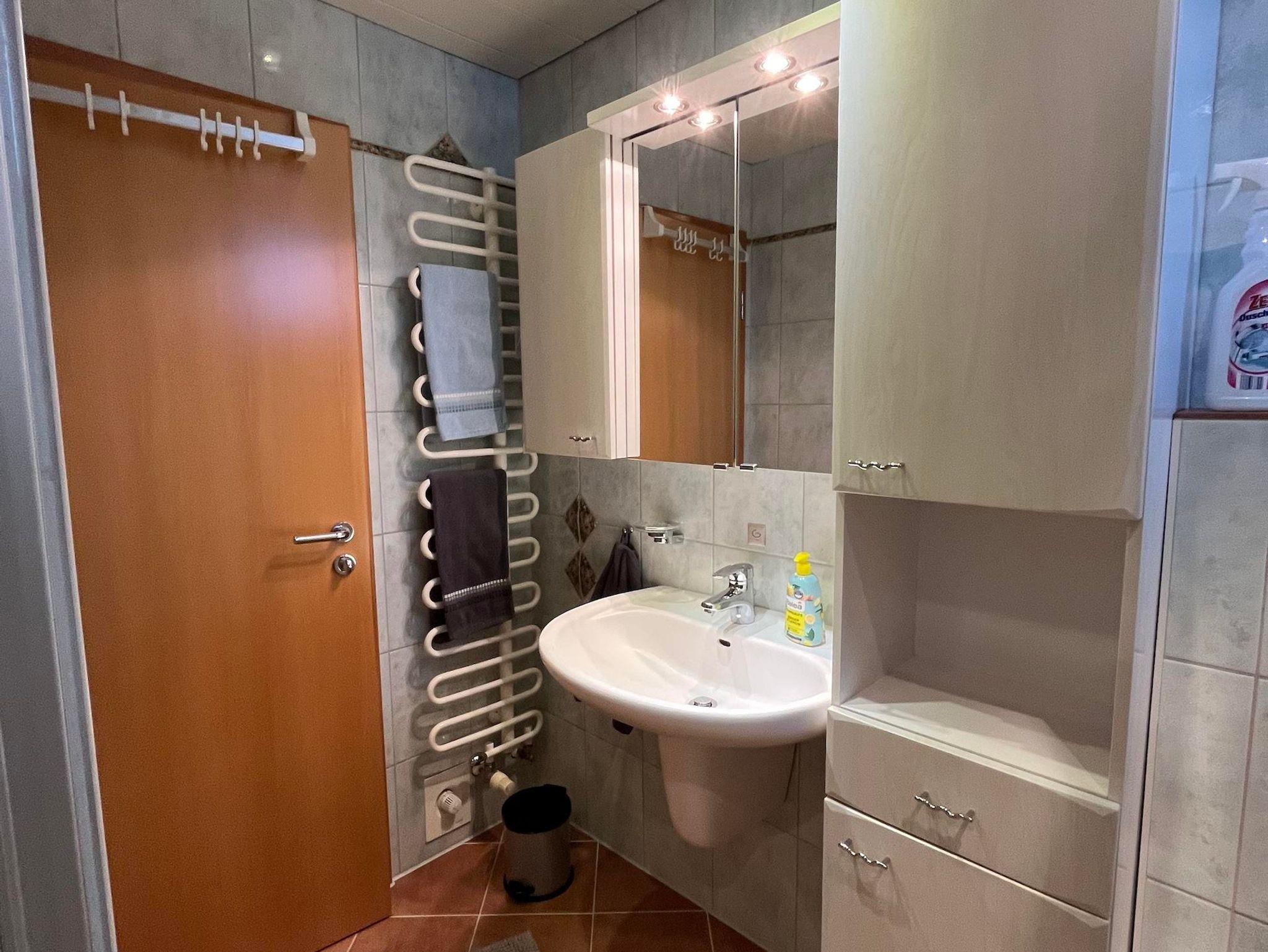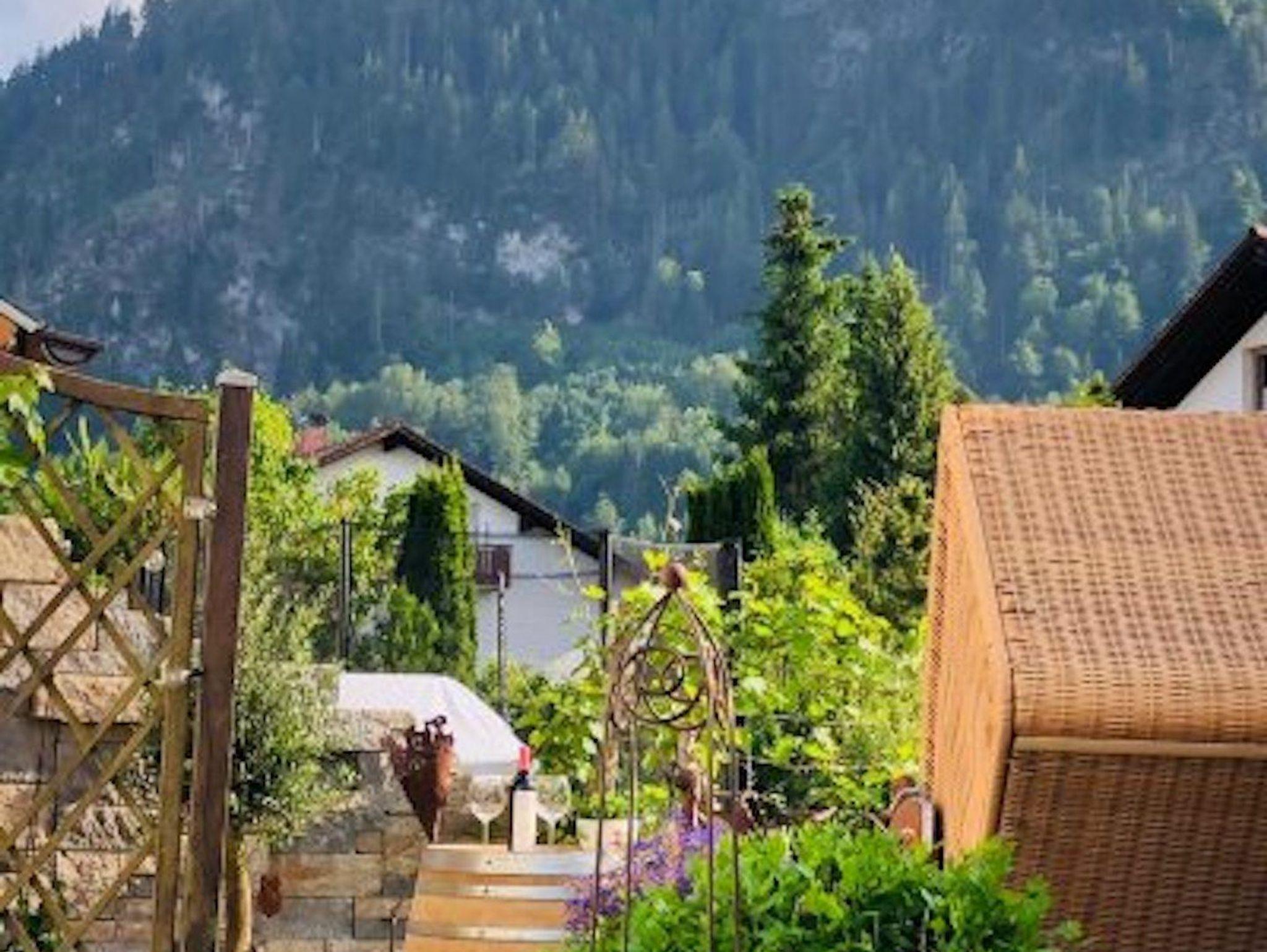 Im 1 OG befindet sich eine 55 qm große Whg. mit separatem Schlafzimmer, Wohnzimmer, Küche, Bad mit Dusche/WC, einem überdachten Balkon (Loggia) mit Sonnenmarkise und Bergblick für gemütliche Stunden.